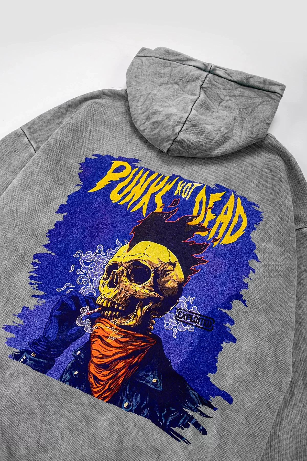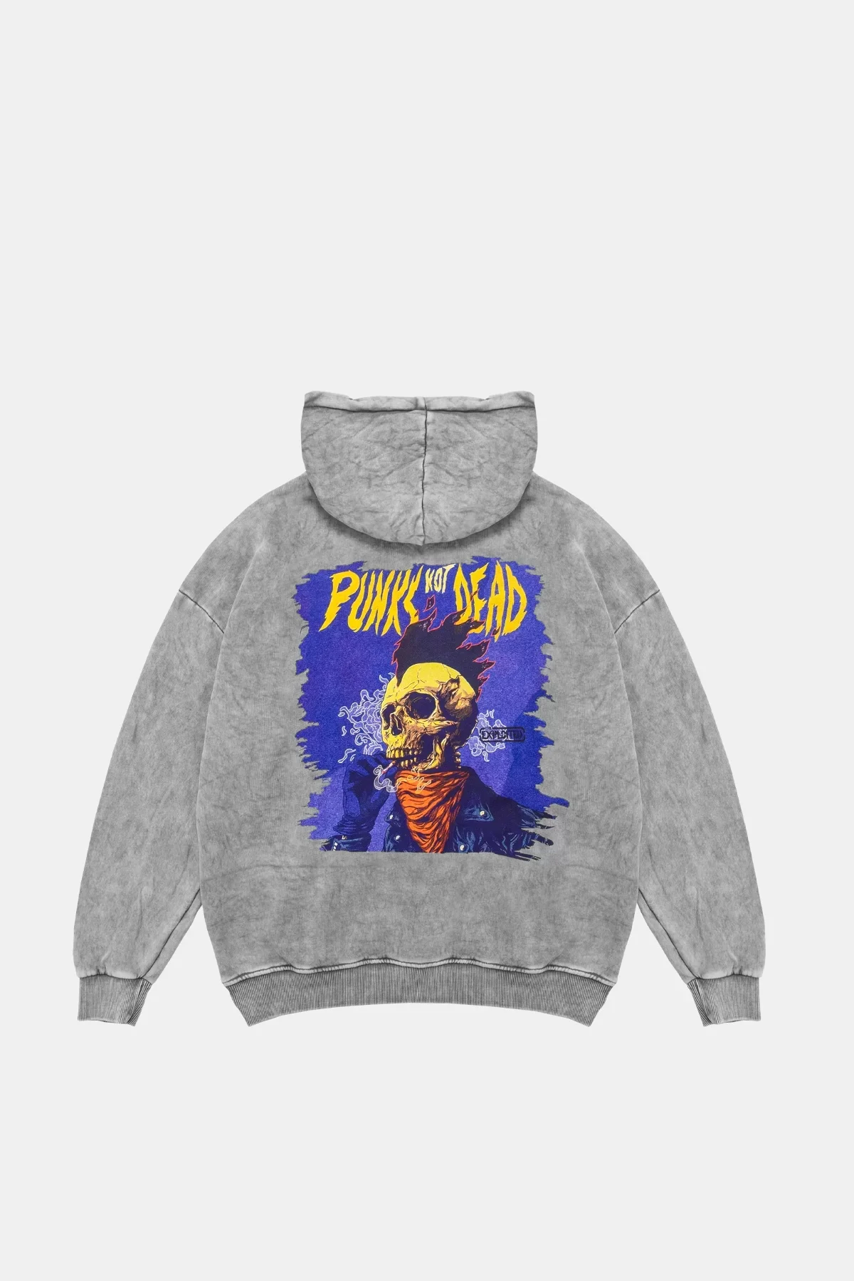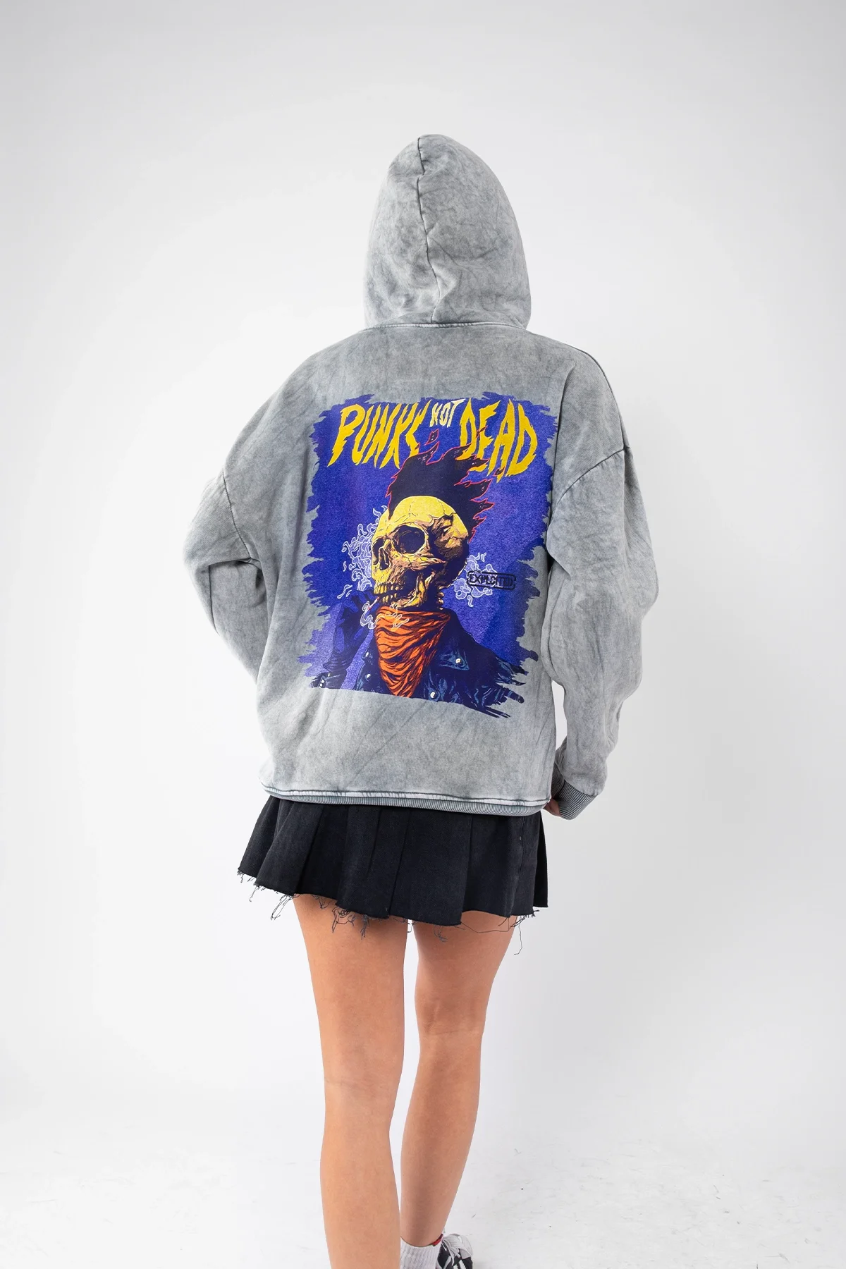 YIKAMALI BEYAZ PUNKS NOT DEAD BASKILI OVERSİZE UNİSEX HOODİE
