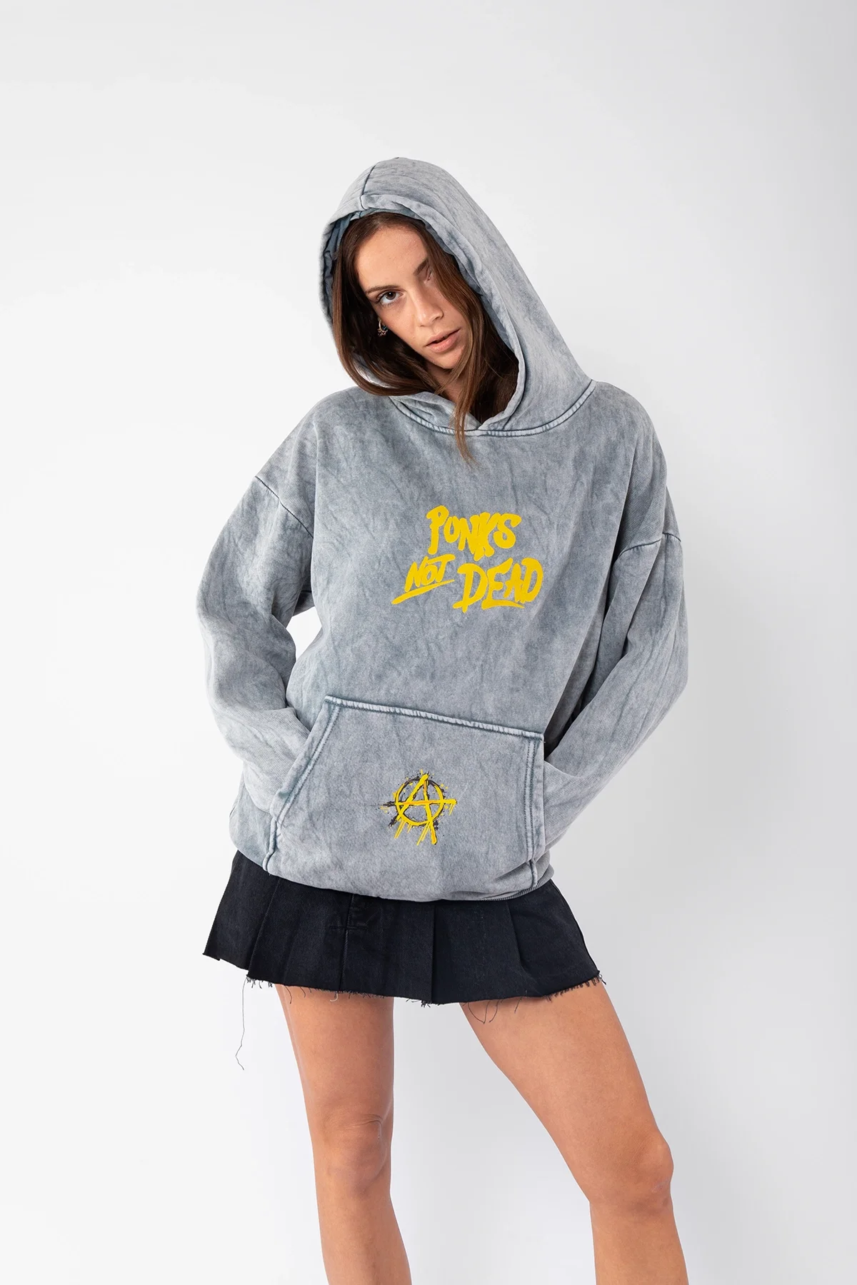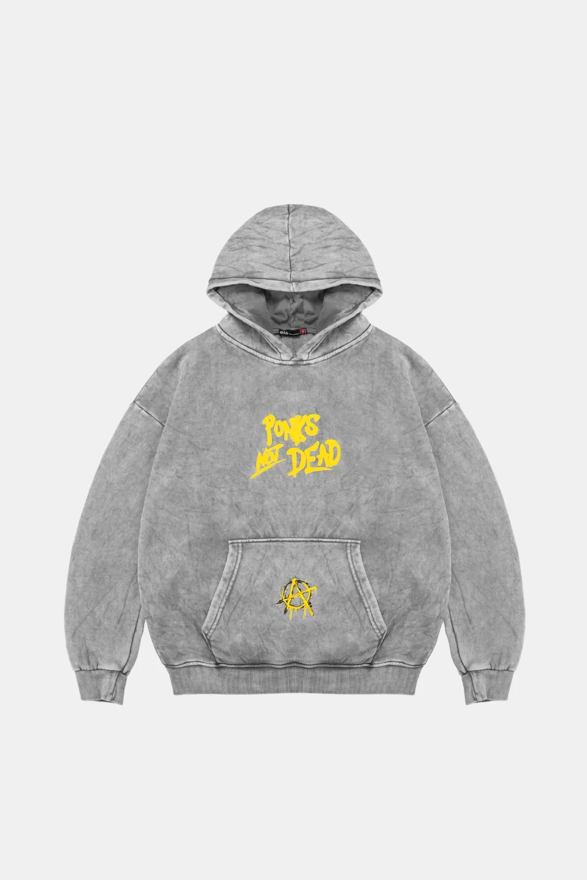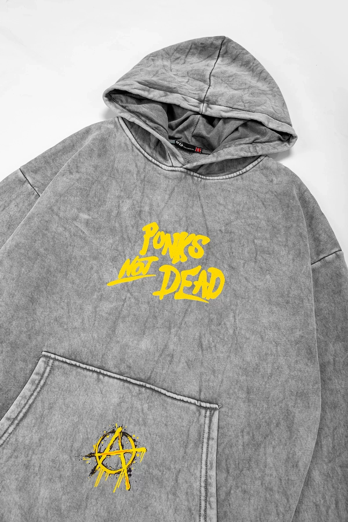 YIKAMALI BEYAZ PUNKS NOT DEAD BASKILI OVERSİZE UNİSEX HOODİE