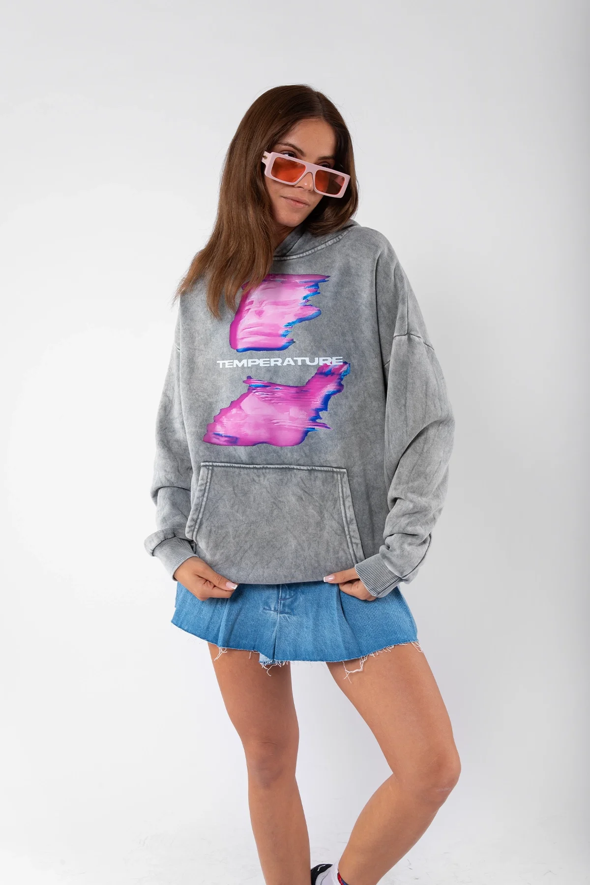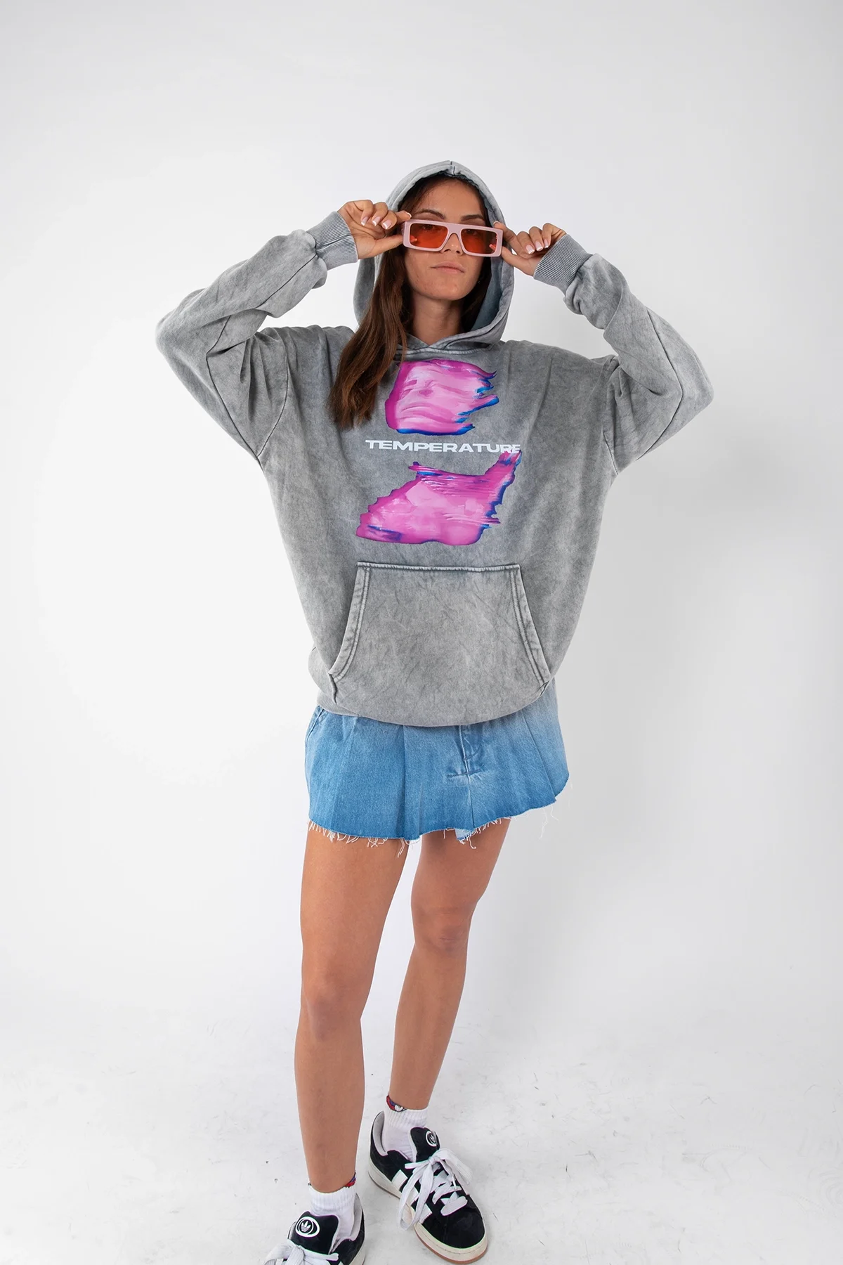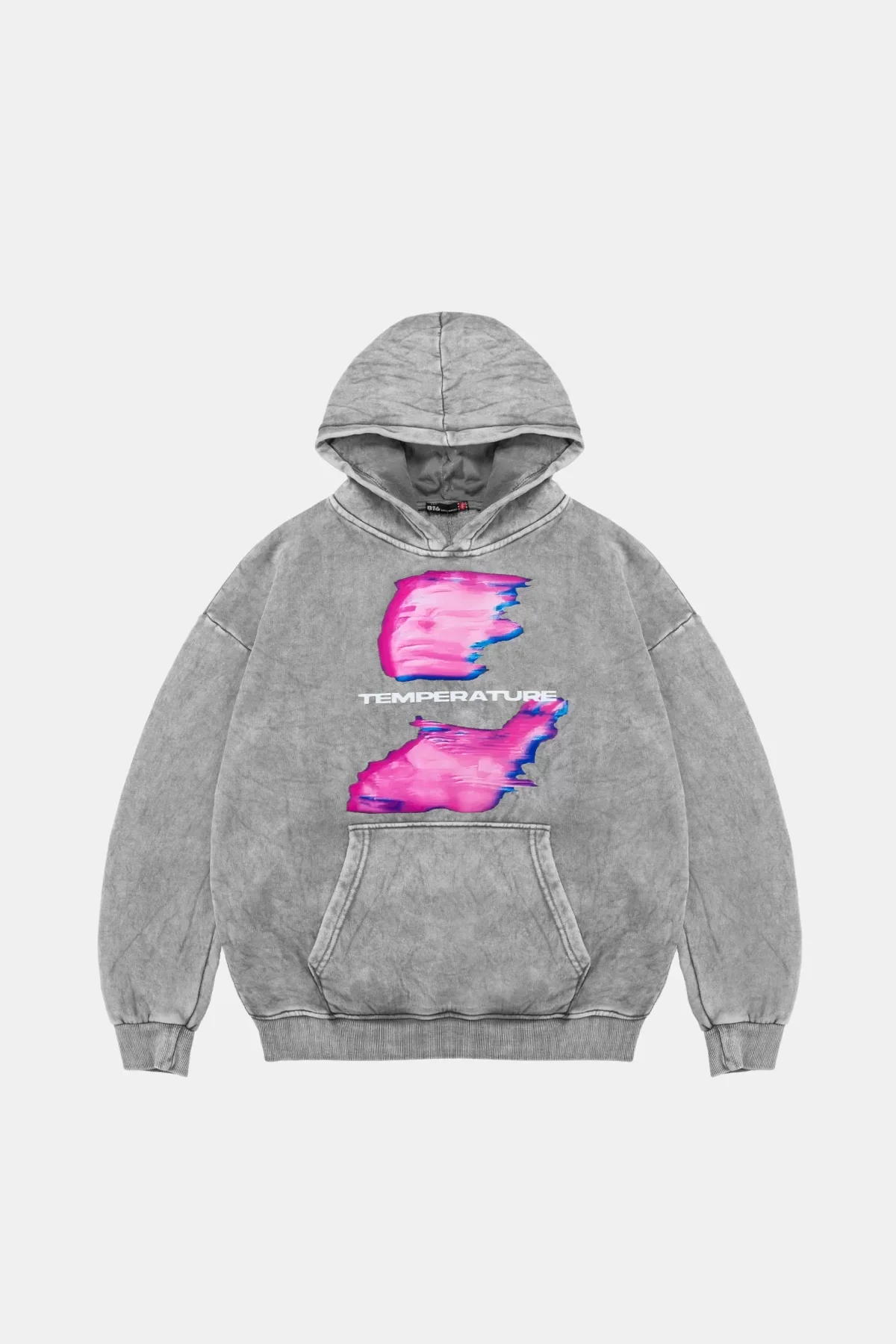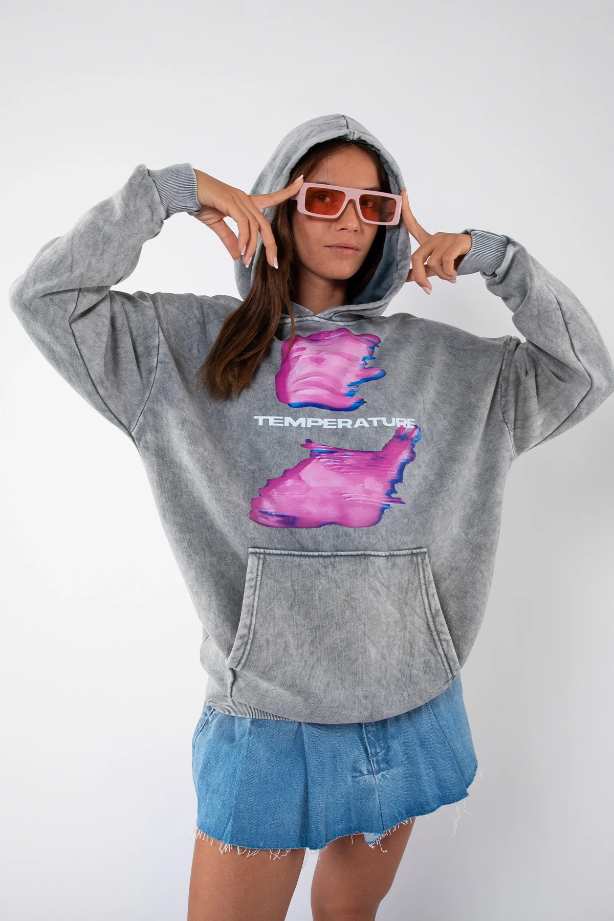 YIKAMALI BEYAZ TEMPERATURE BASKILI OVERSİZE UNİSEX HOODİE
