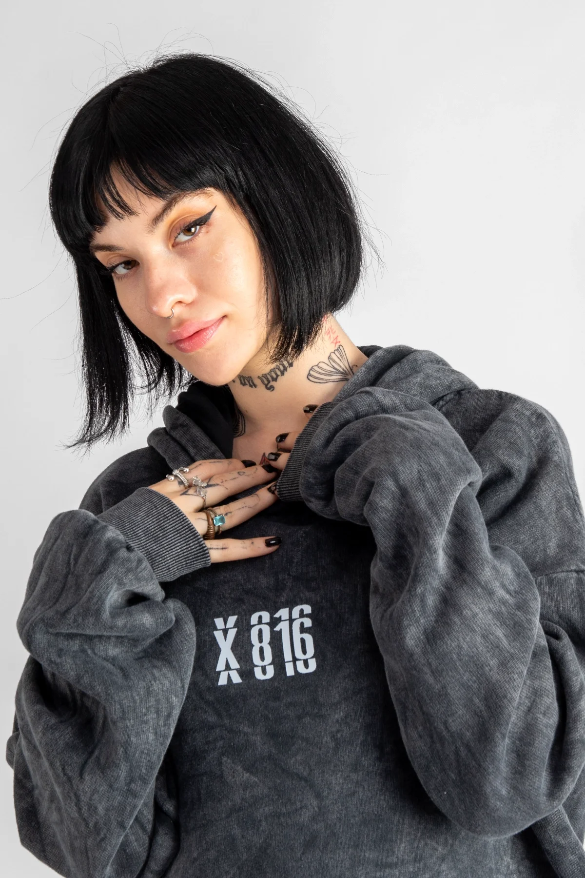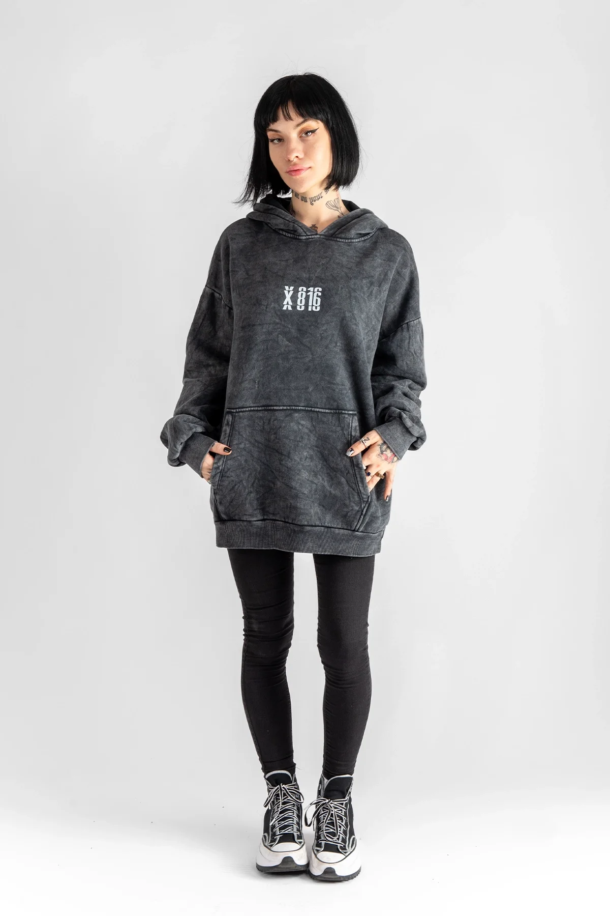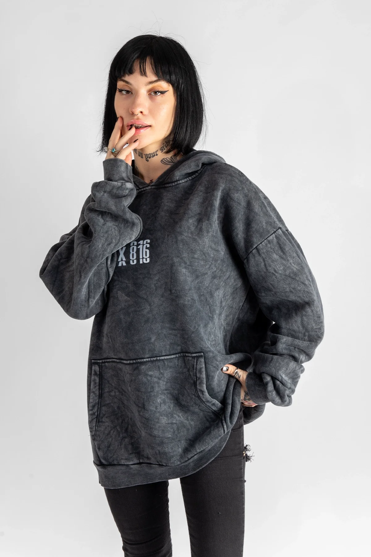 YIKAMALI X 816 SIRT BASKILI OVERSİZE UNİSEX FÜME HOODİE