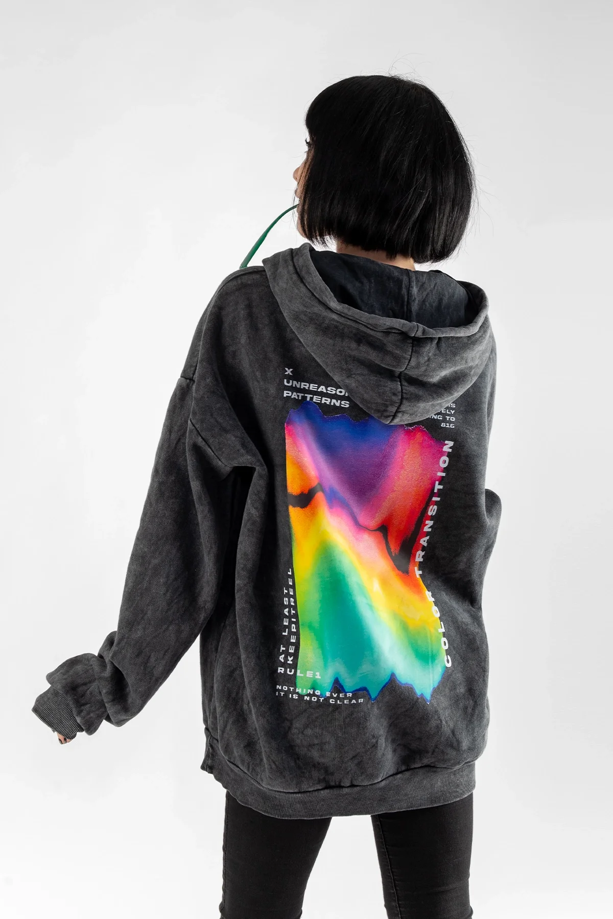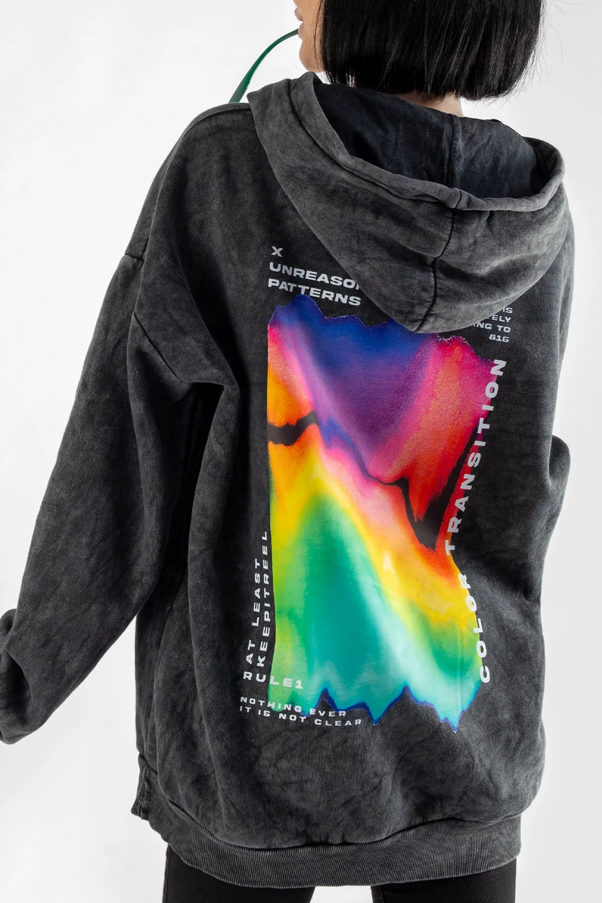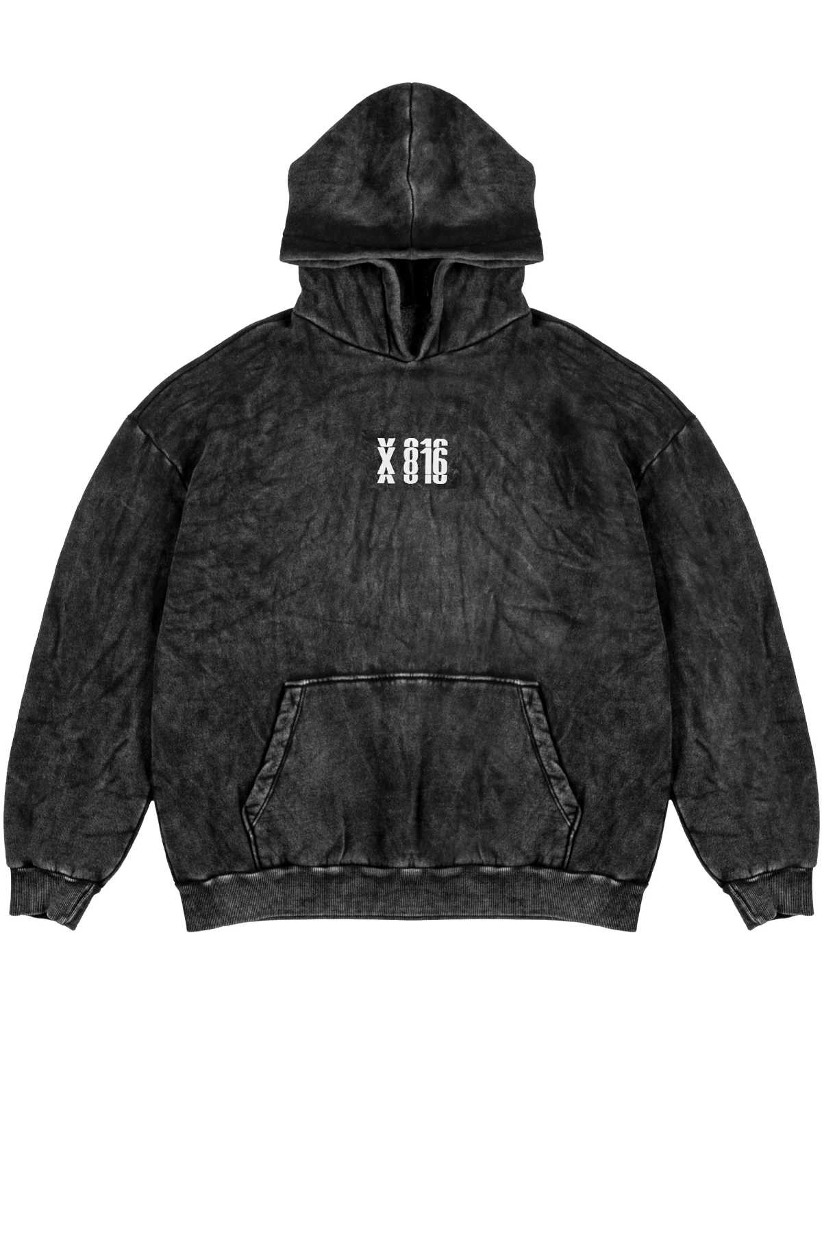 YIKAMALI X 816 SIRT BASKILI OVERSİZE UNİSEX FÜME HOODİE