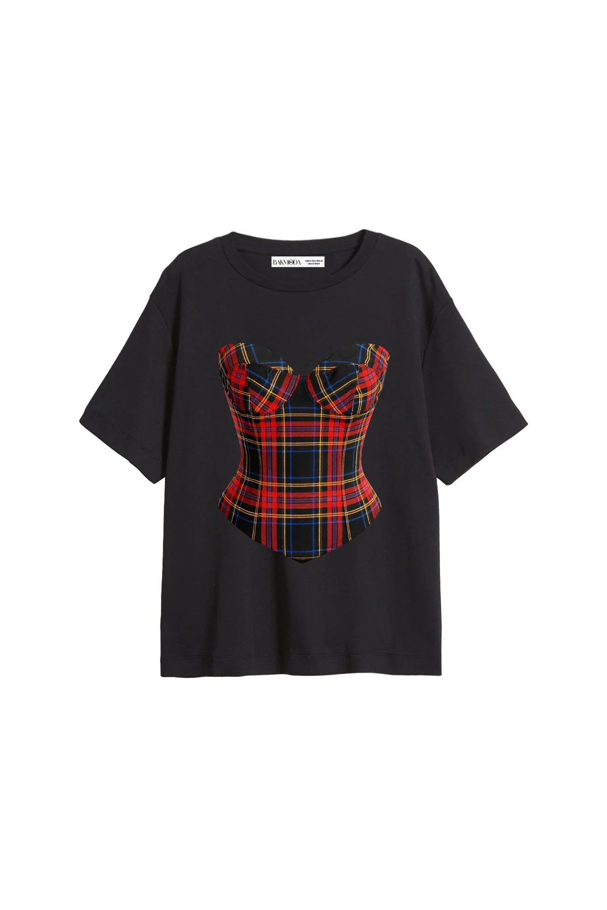 Ekose Baskılı Relaxed Fit Siyah Kadın Tshirt, Bak Moda'nın kendine özgü tasarımı ile stilinizi tamamlayacak mükemmel bir seçenektir.