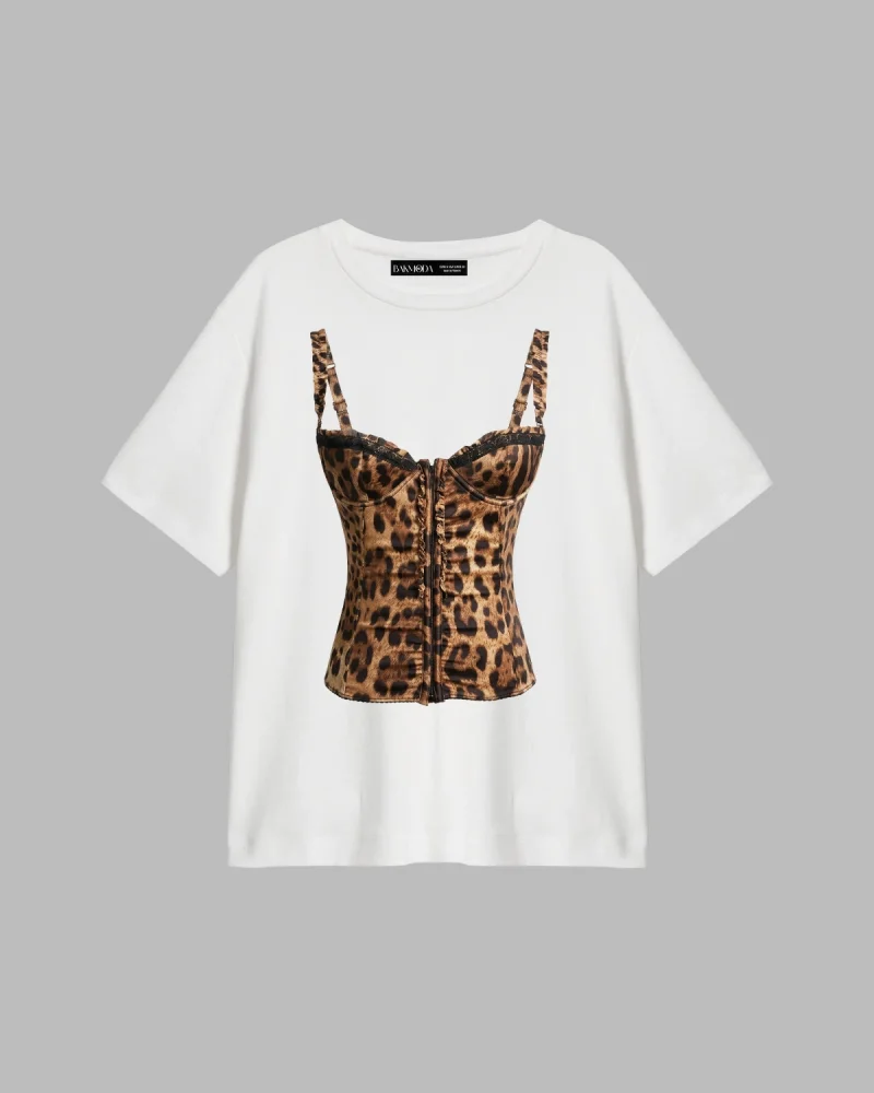 Leo Top Baskılı Relaxed Fit Beyaz Kadın Tshirt