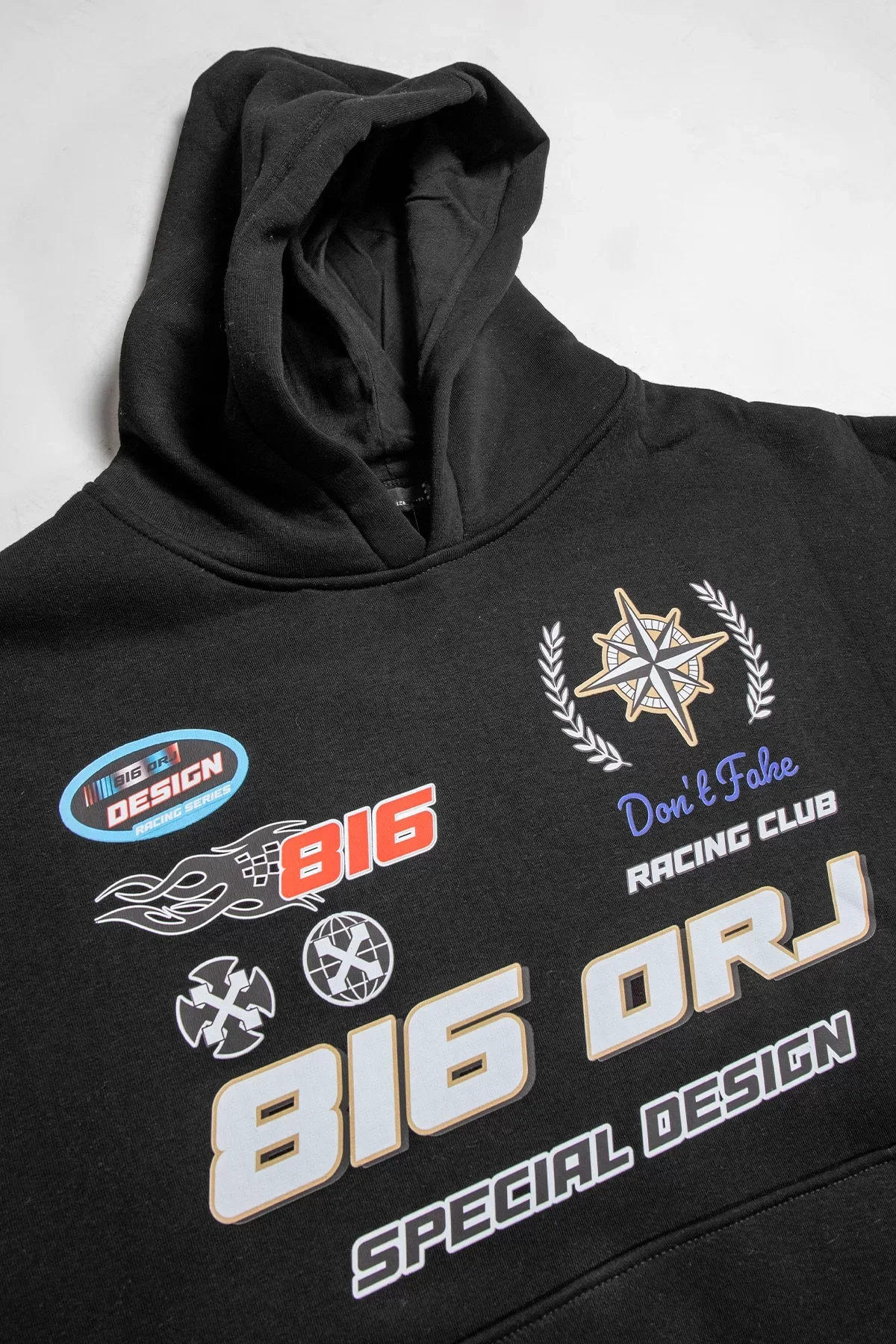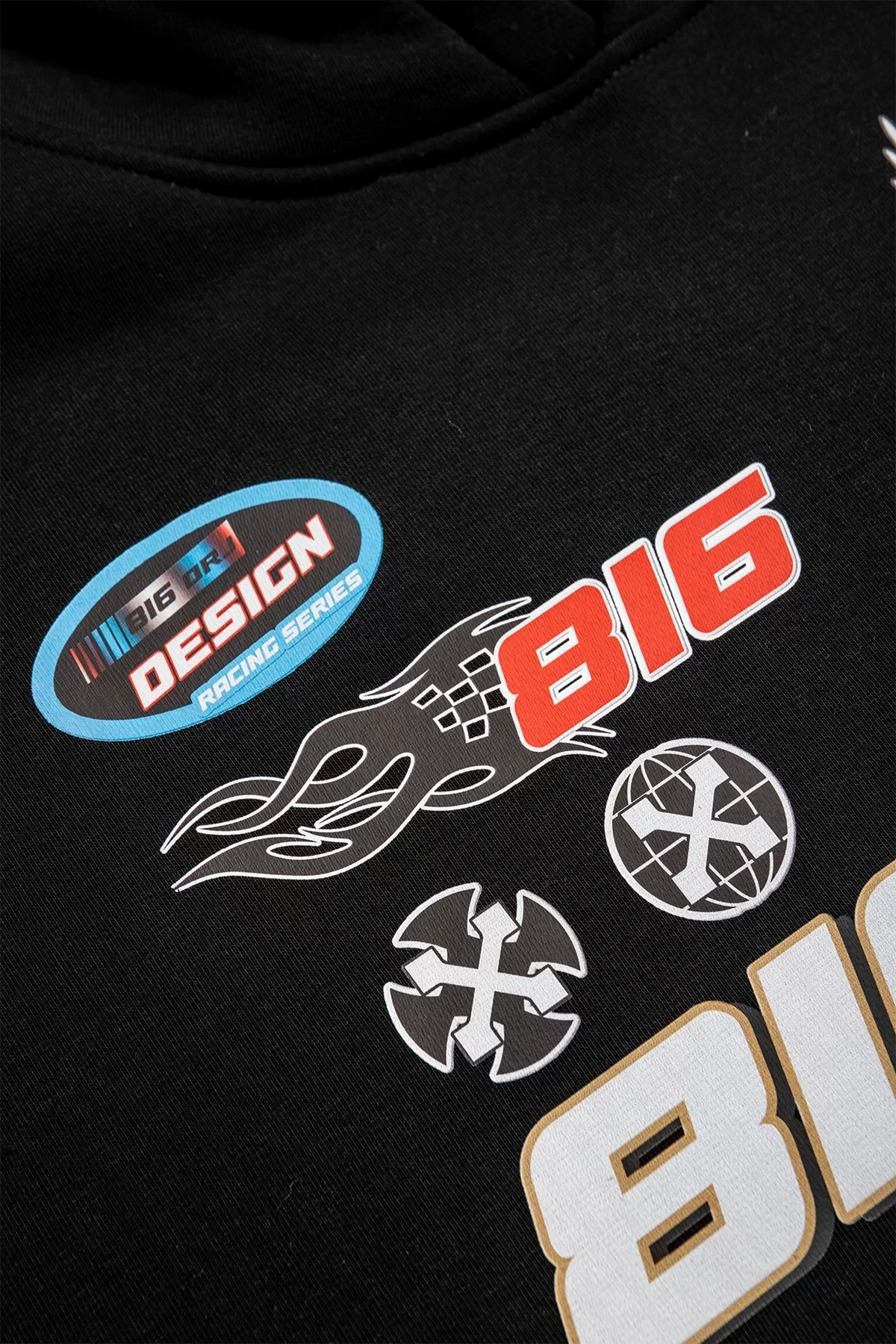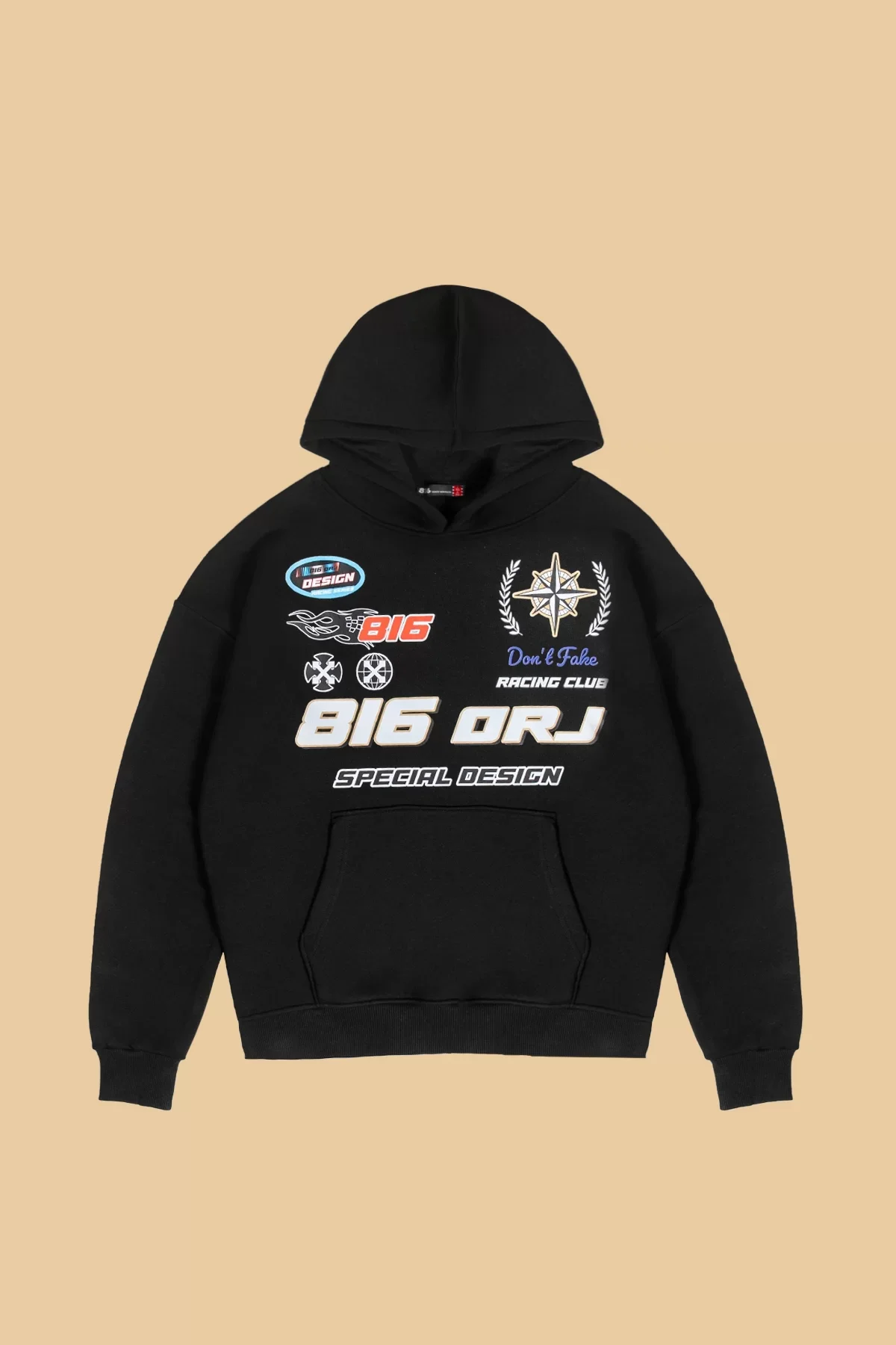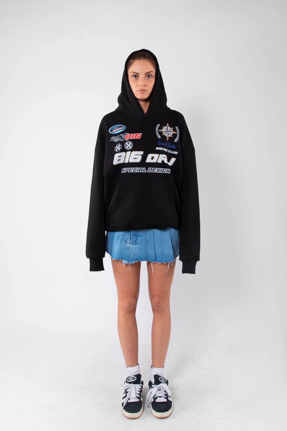 816 RACİNG BASKILI OVERSİZE UNİSEX SİYAH HOODİE