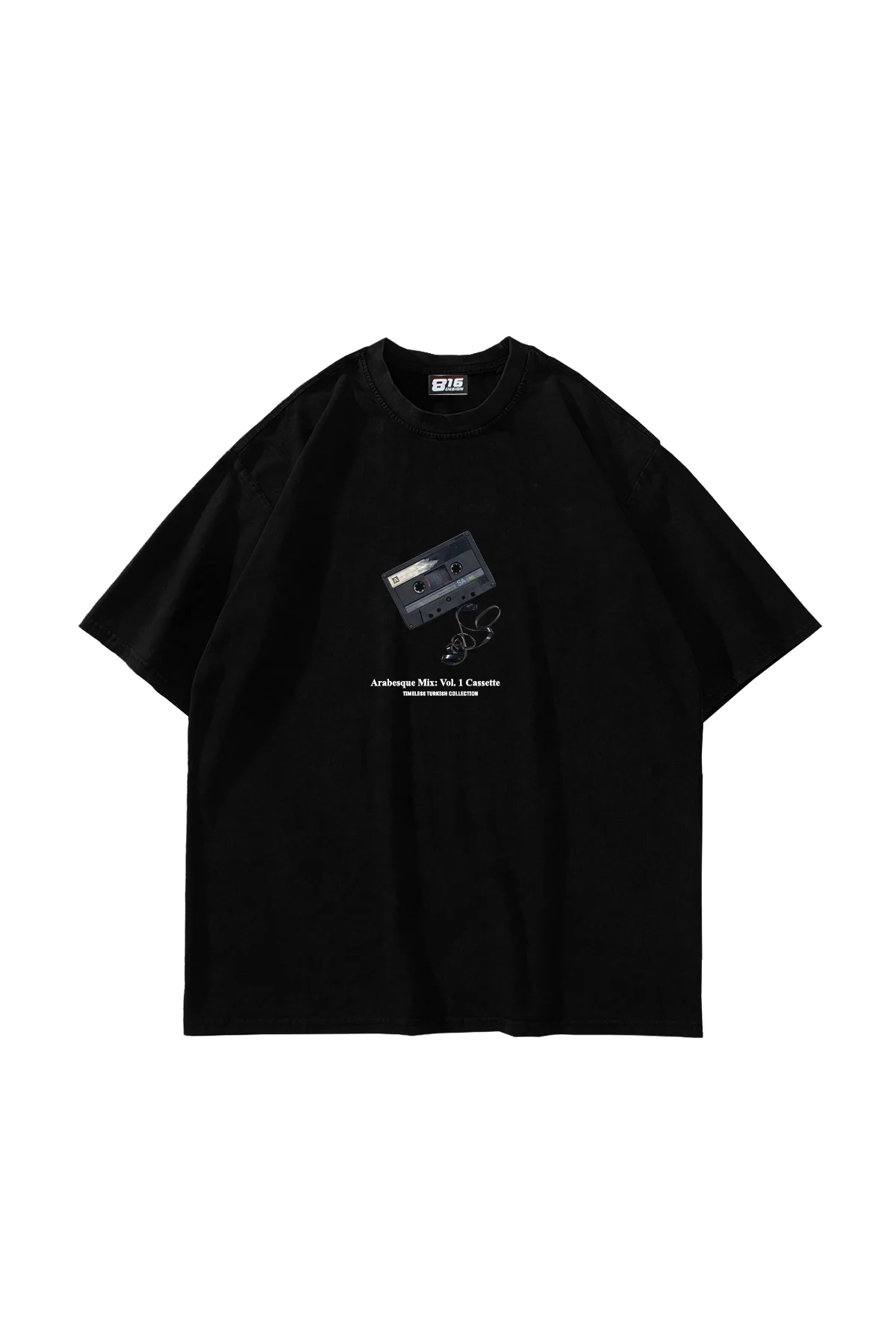 Arabesque Cassette Baskılı Oversize Unisex Siyah Tshirt, Bak Moda güvencesiyle Giyim > Tshirt kategorisinde sizlerle buluşuyor.