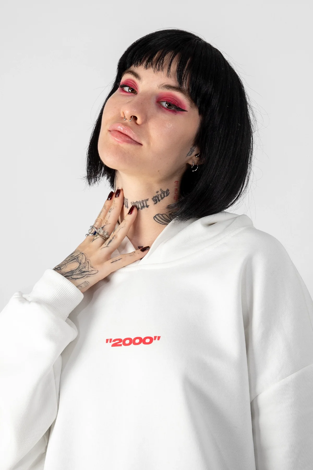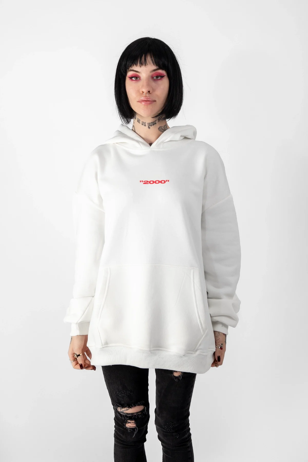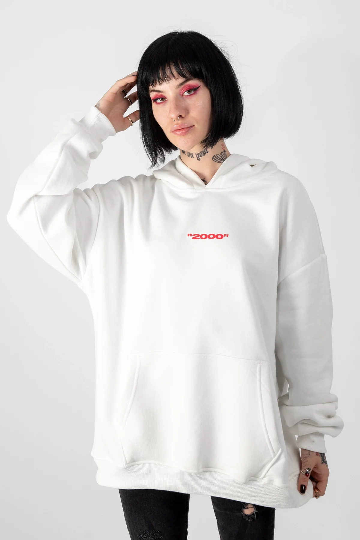 S16 Baskılı Oversize Unisex Beyaz Hoodie