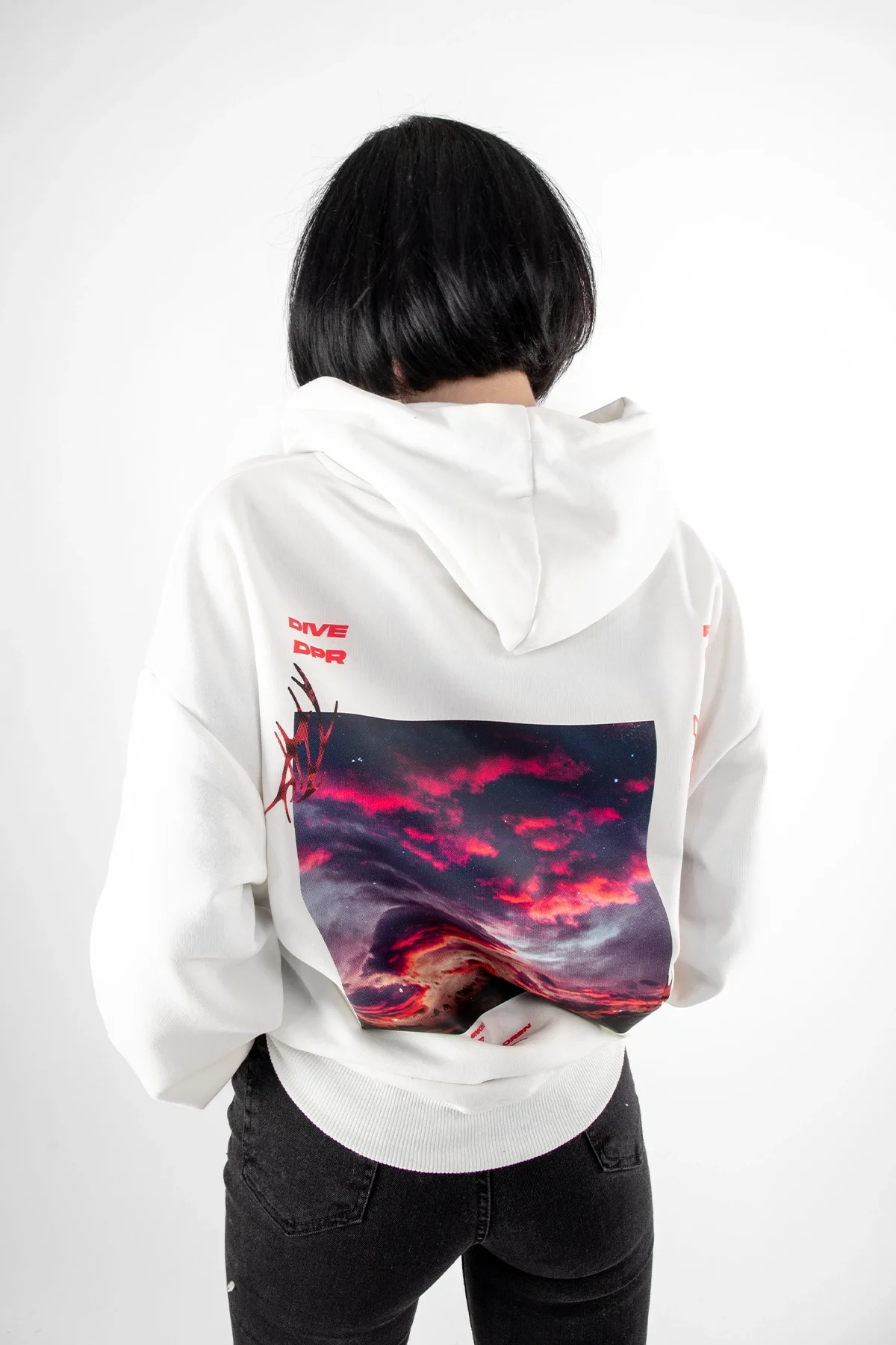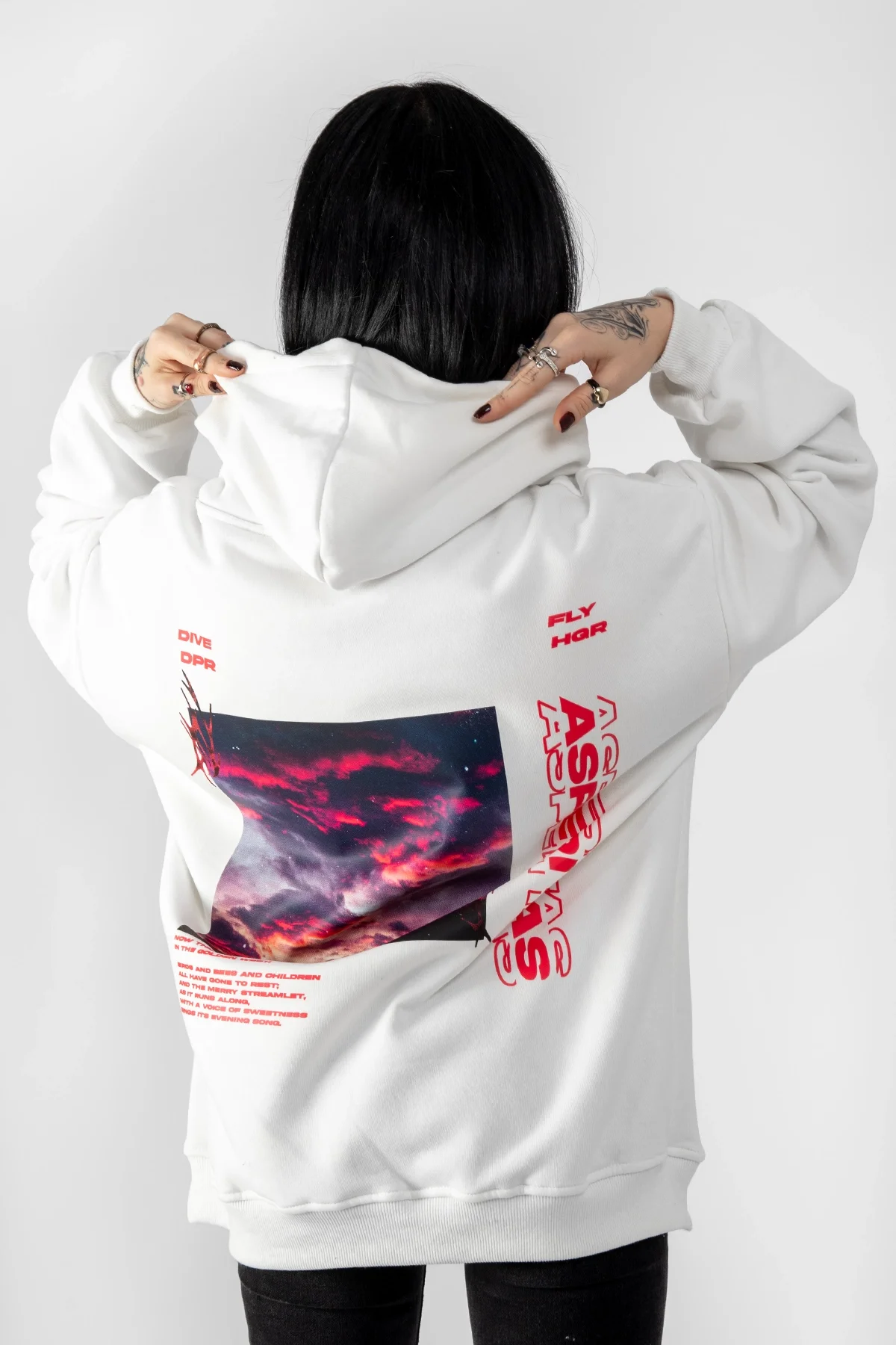 ASPERİTAS SIRT BASKILI OVERSİZE UNİSEX BEYAZ HOODİE