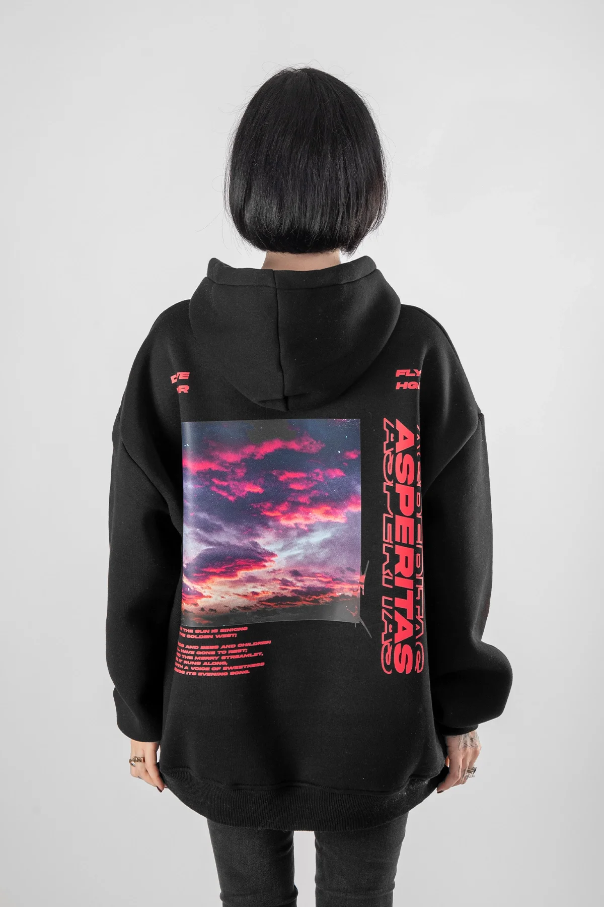 ASPERİTAS SIRT BASKILI OVERSİZE UNİSEX SİYAH HOODİE