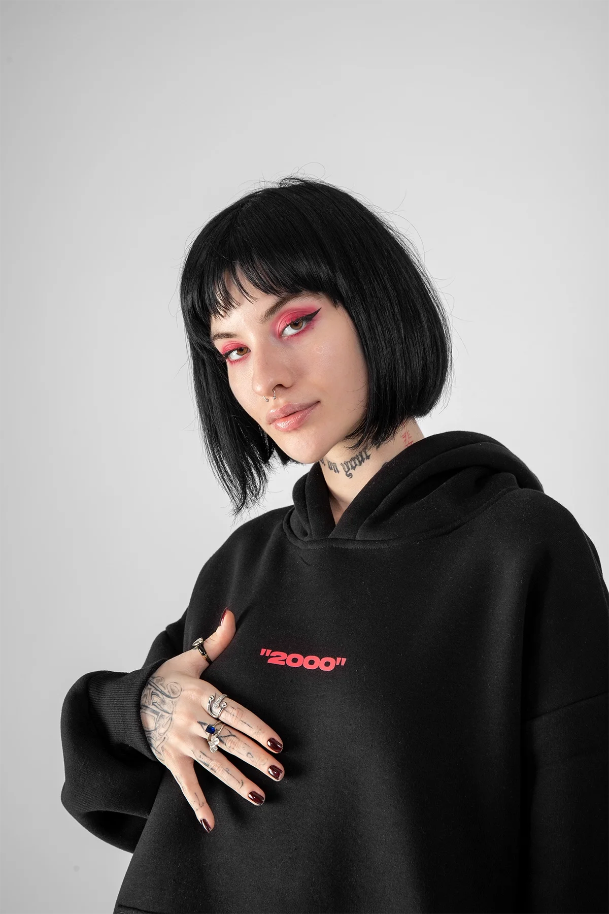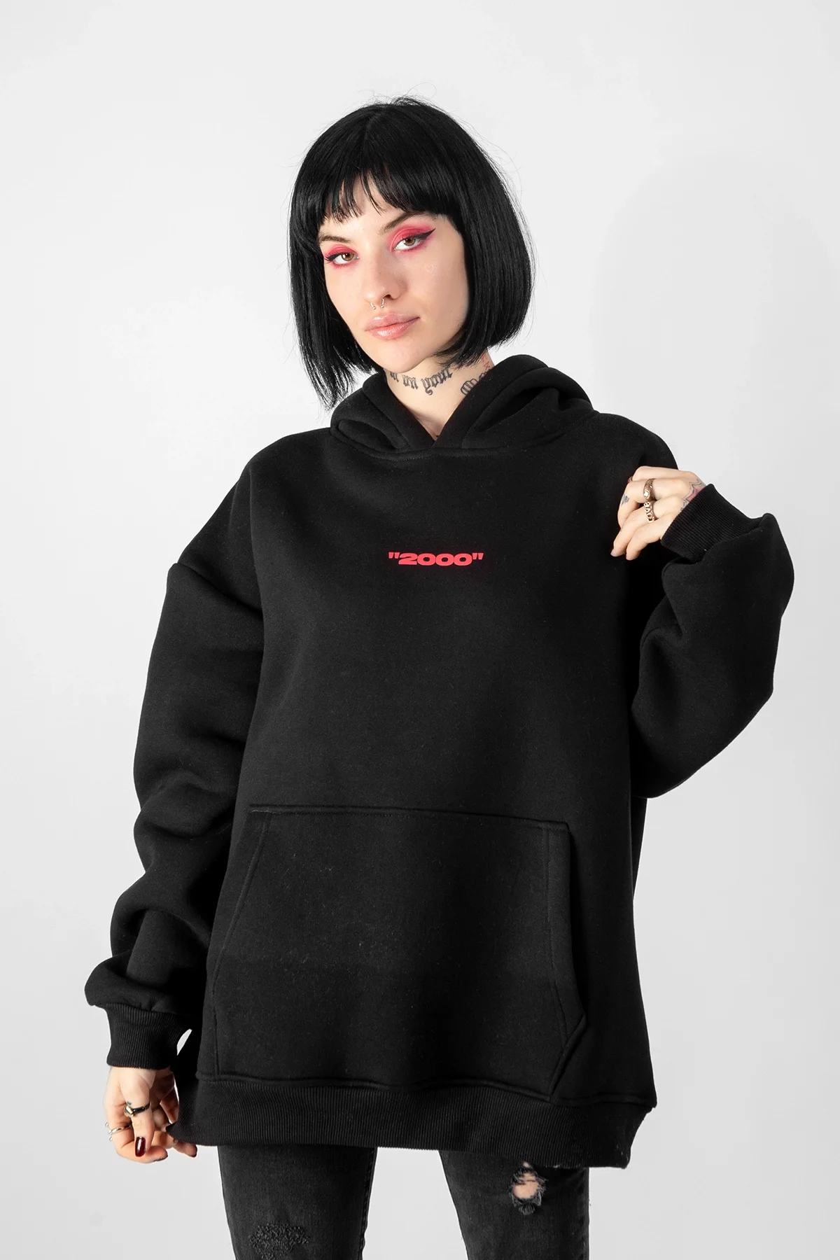 S16 Baskılı Oversize Unisex Siyah Hoodie