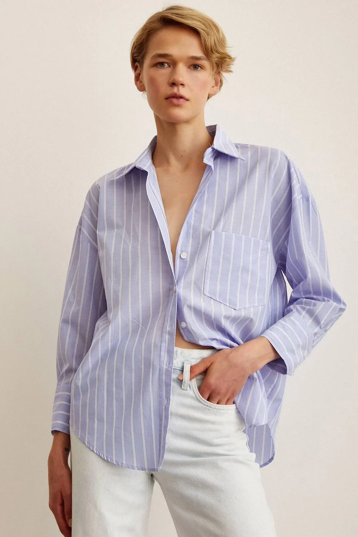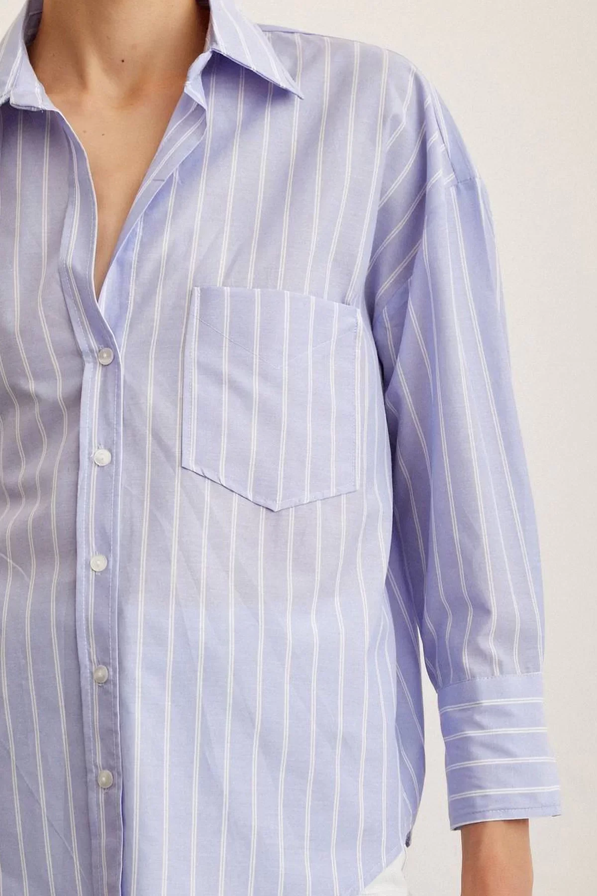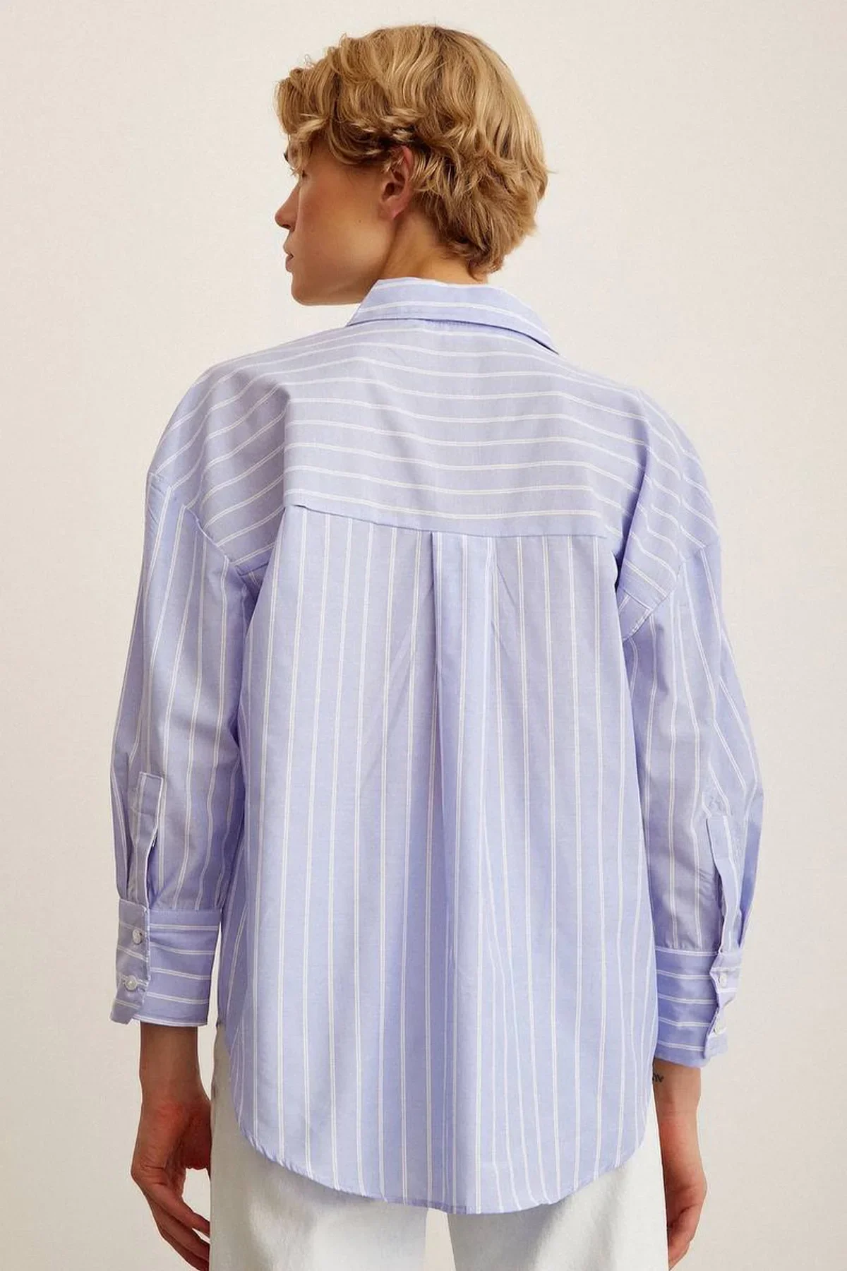 Gardırobunuzun vazgeçilmez parçası olmaya aday bu oversize gömlek, modern çizgileri ve rahat kalıbıyla stilinize şıklık katıyor. Hafif yapılı kumaşı sayesinde dört mevsim kullanıma uygun olan bu mavi gömlek, hem spor hem de klasik kombinlerle kolayca uyum sağlar.