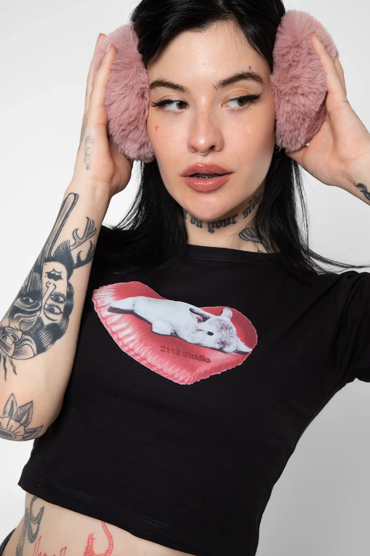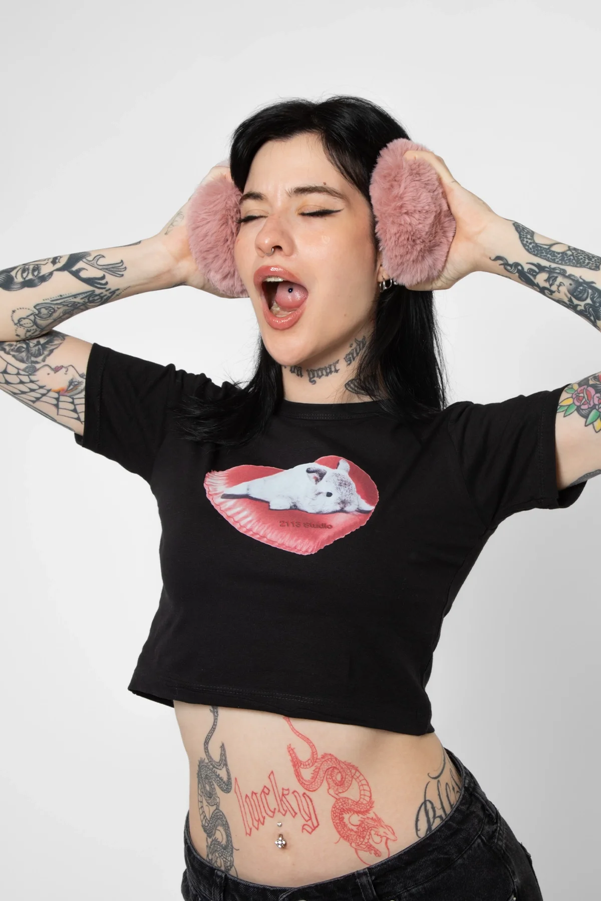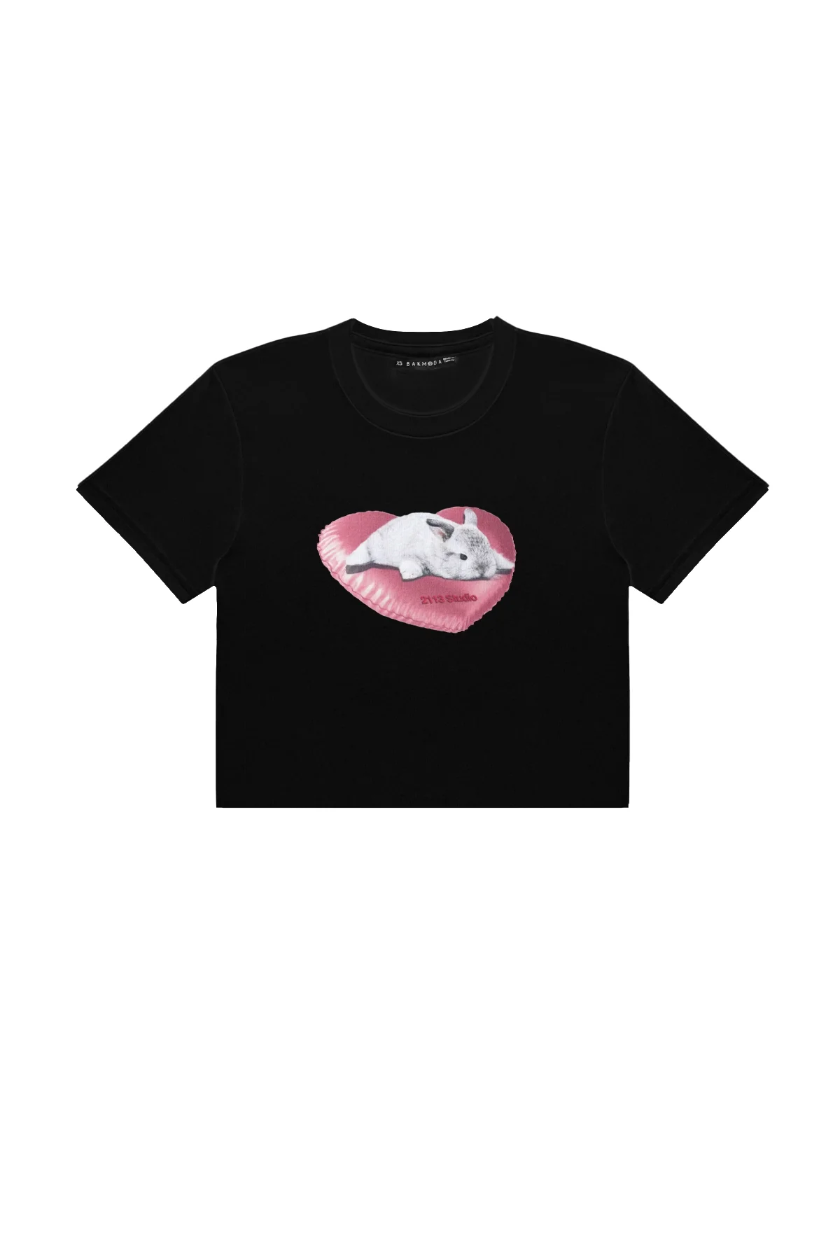 Bunny baskılı siyah crop top ile kendinizi özgür ve şık hissedin, Bak Moda'nın kalitesi ile tarzınızı ön plana çıkarın!