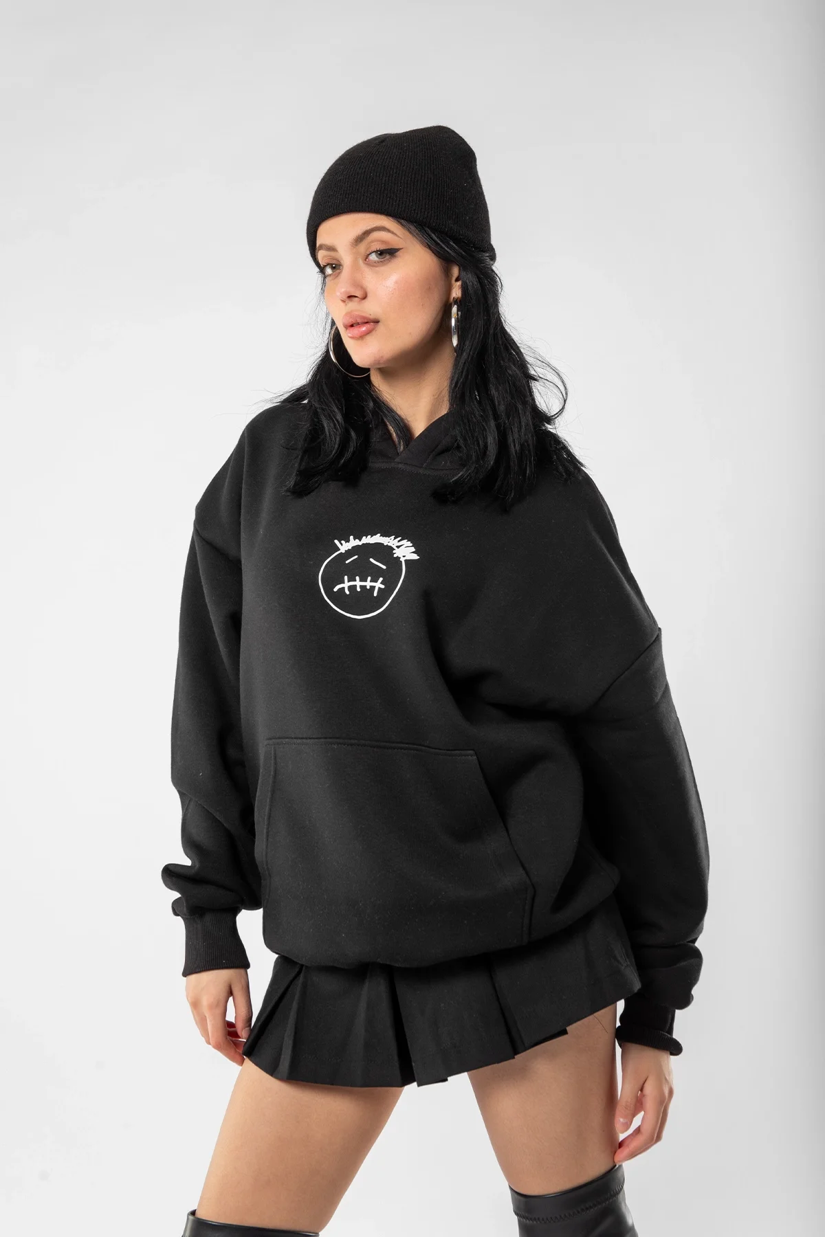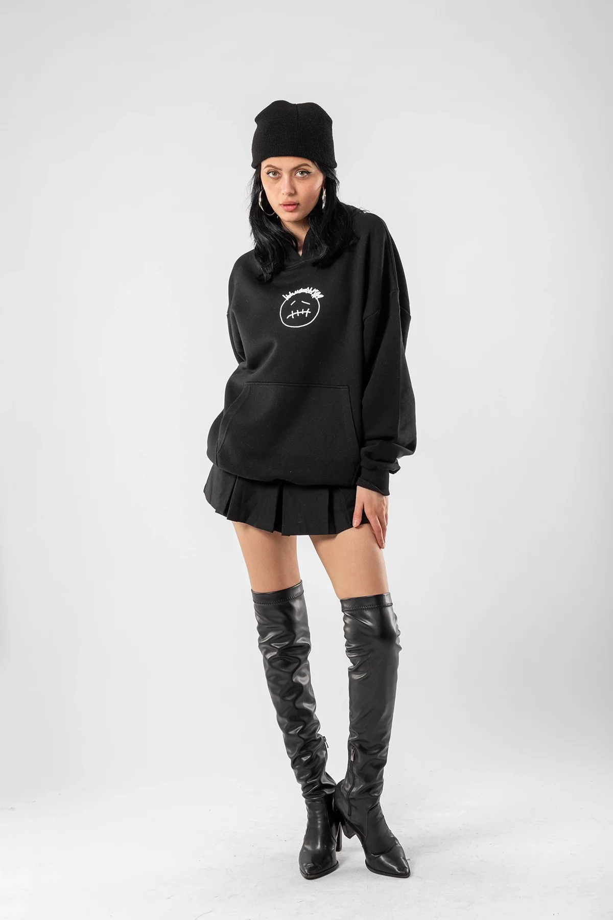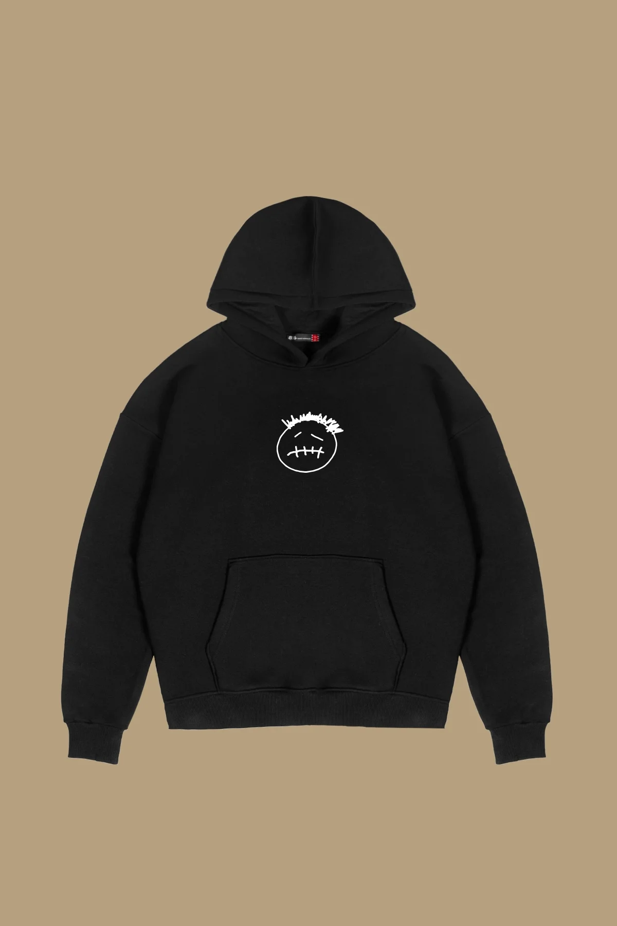 S16 Baskılı Oversize Unisex Siyah Hoodie