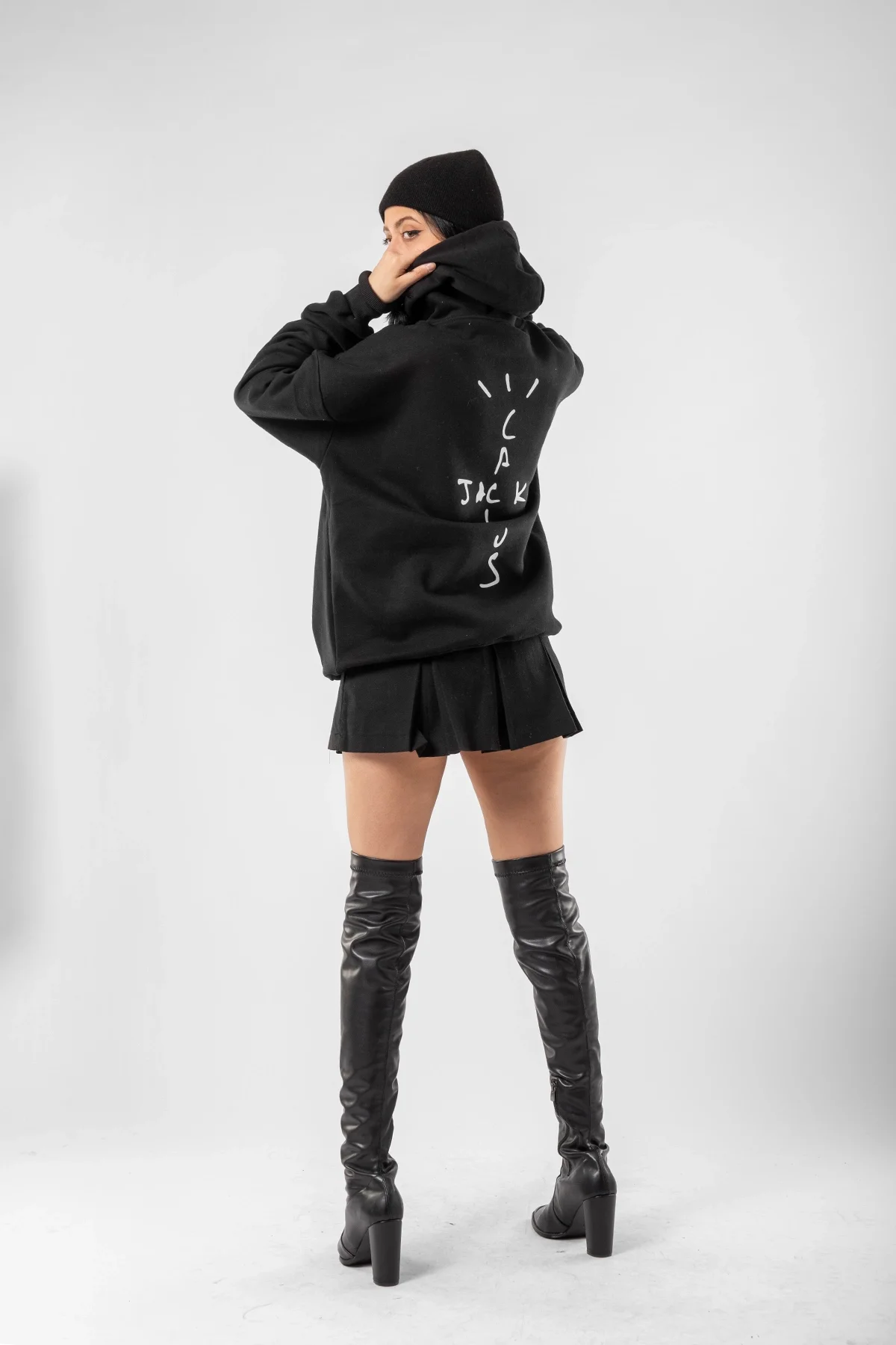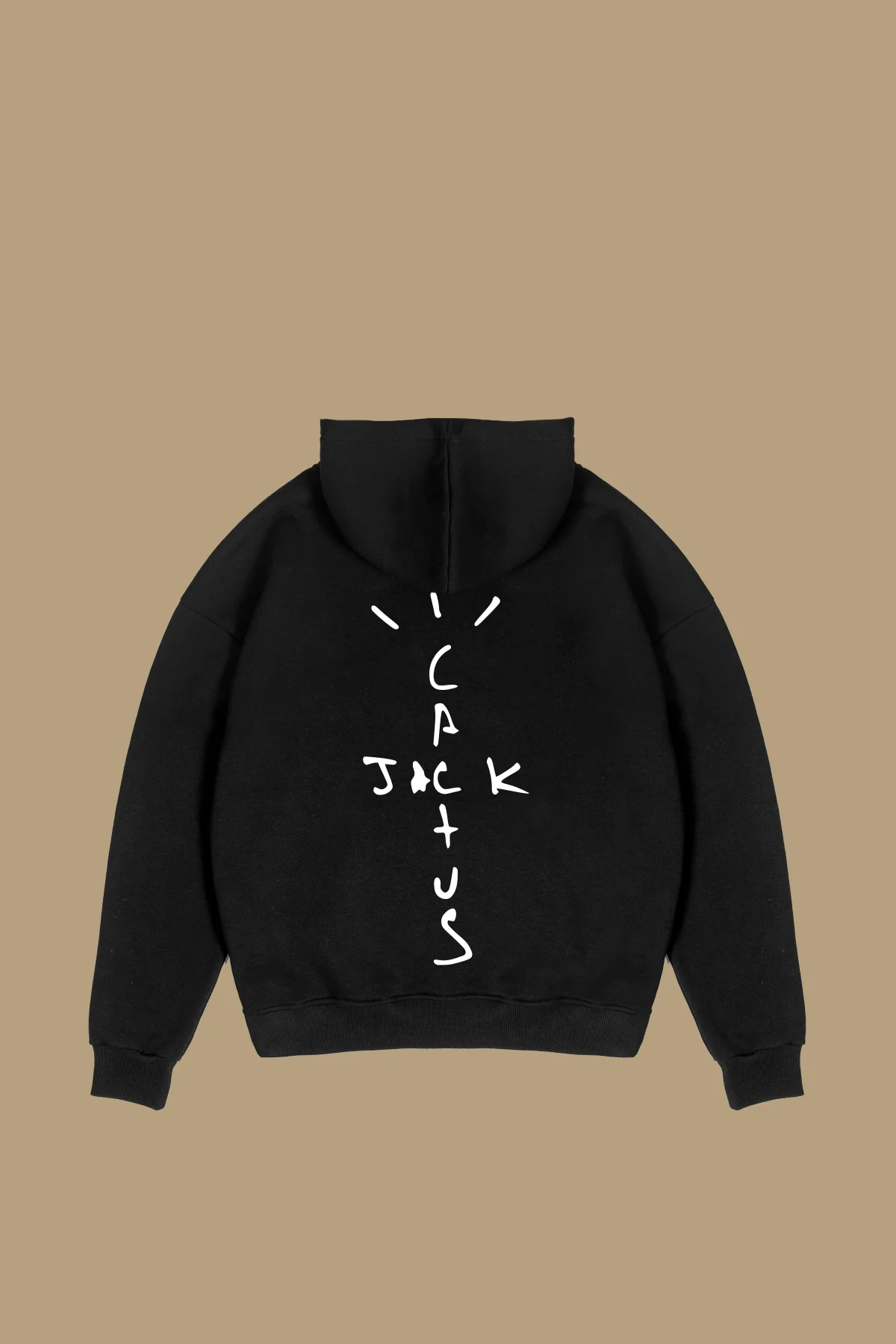 CACTUS JACK SIRT BASKILI OVERSİZE UNİSEX SİYAH HOODİE