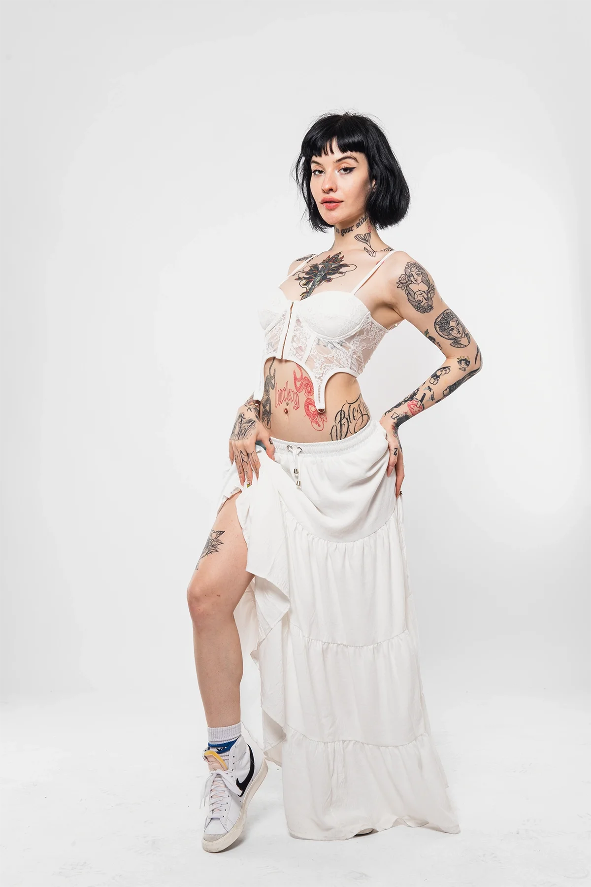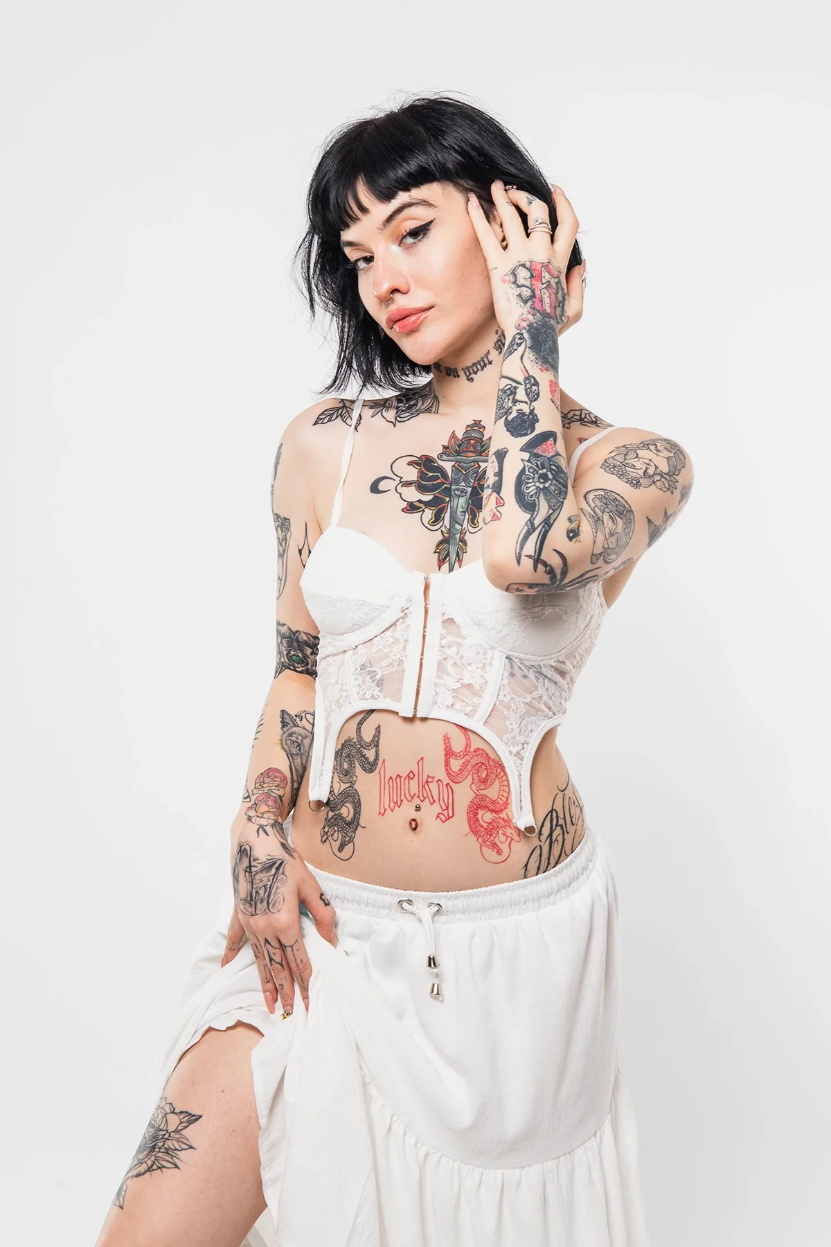 Zarafetin ve şıklığın buluştuğu bu Dantel Detaylı Agraflı Askılı Beyaz Korse, vücut hatlarını vurgulayan yapısı ve göz alıcı detaylarıyla dikkat çeker. İnce işçilikle hazırlanmış dantel süslemeleri, korseye feminen ve romantik bir hava katarken; ön kısmındaki klasik agraf kapama detayı pratik kullanım sağlar ve korseye şık bir görünüm kazandırır.