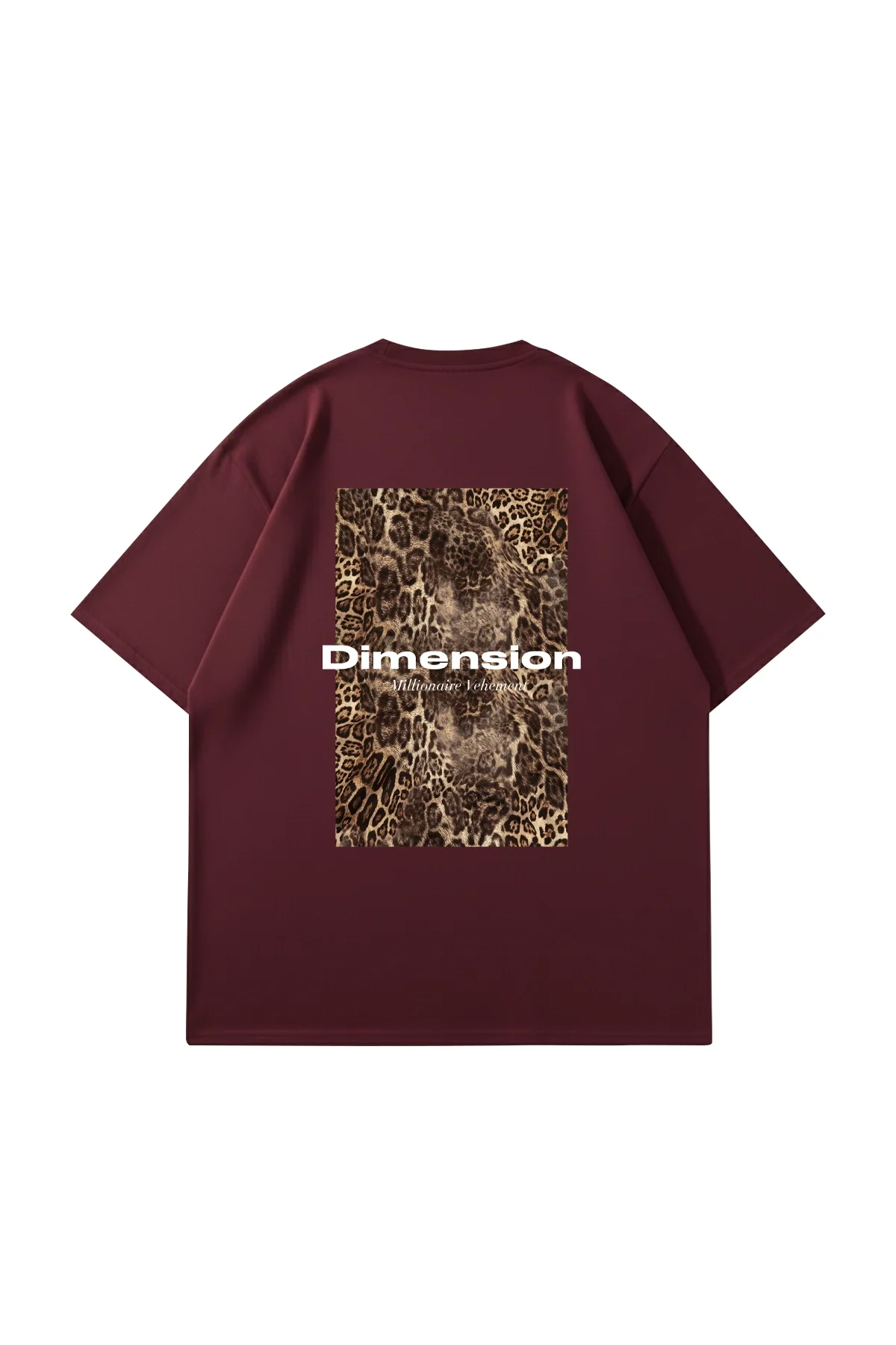 Dİmension Baskılı Leopar Desenli 24/1 Oversize Unisex Bordo T-Shirt – Ürün Açıklaması