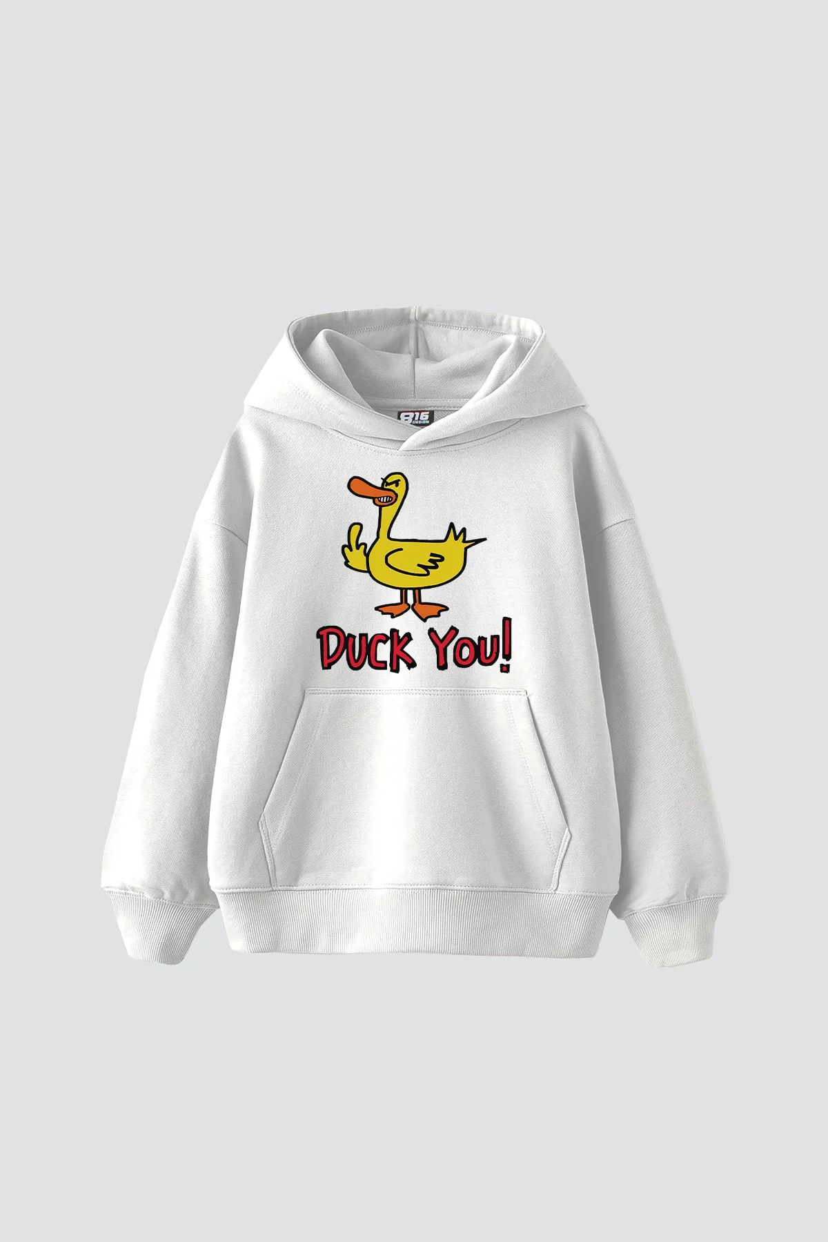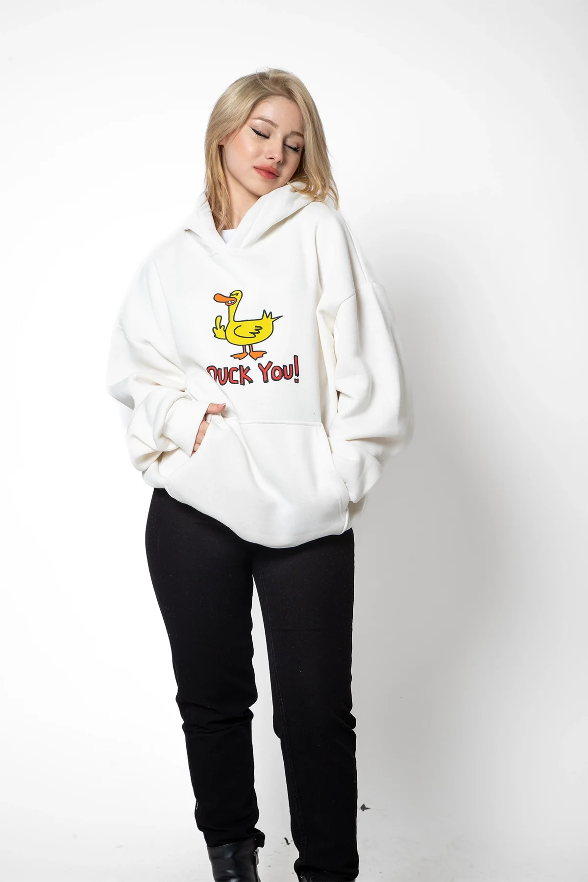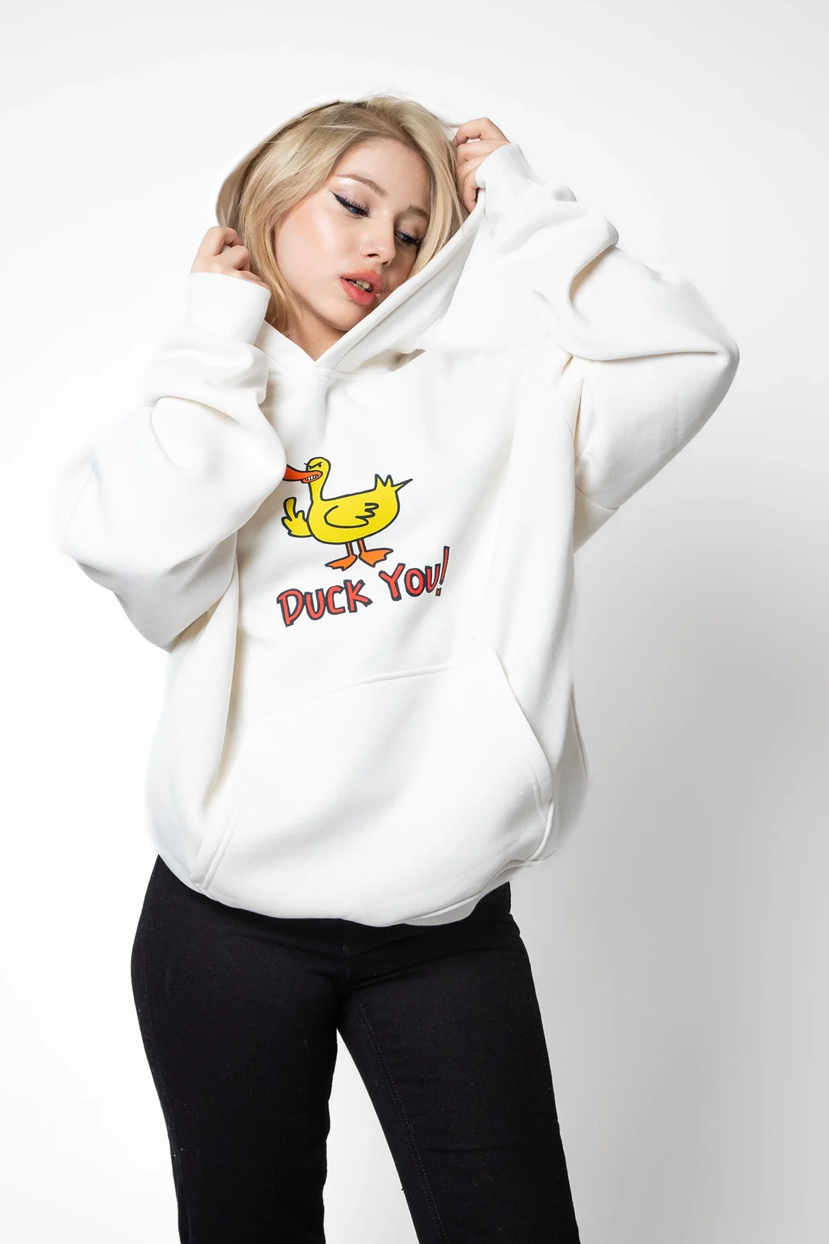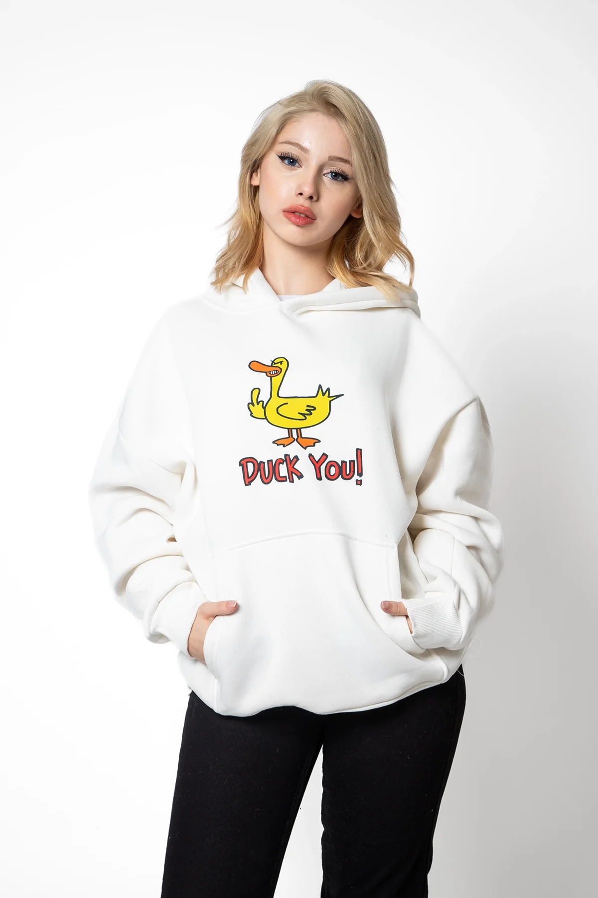 DUCK YOU BASKILI OVERSİZE UNİSEX PREMİUM BEYAZ HOODİE