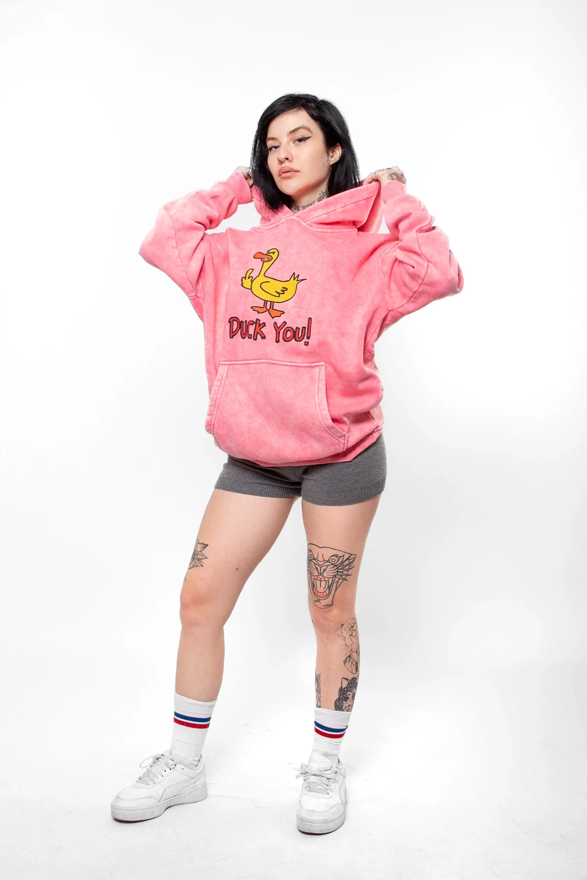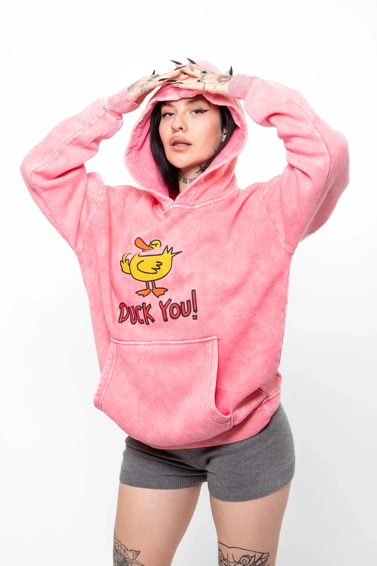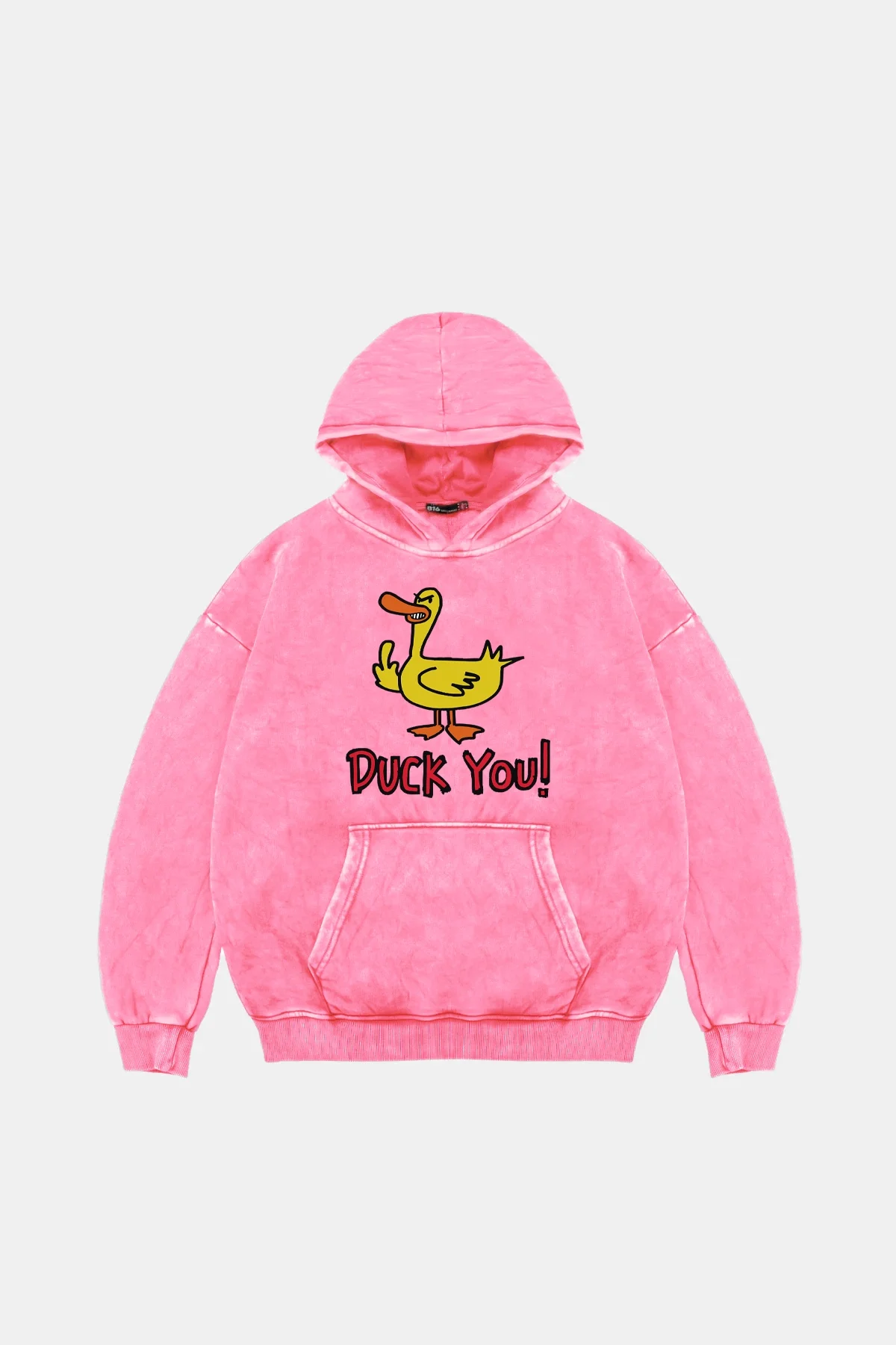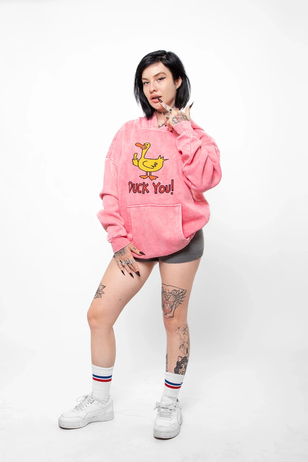 DUCK YOU BASKILI OVERSİZE UNİSEX PREMİUM YIKAMALI PEMBE HOODİE