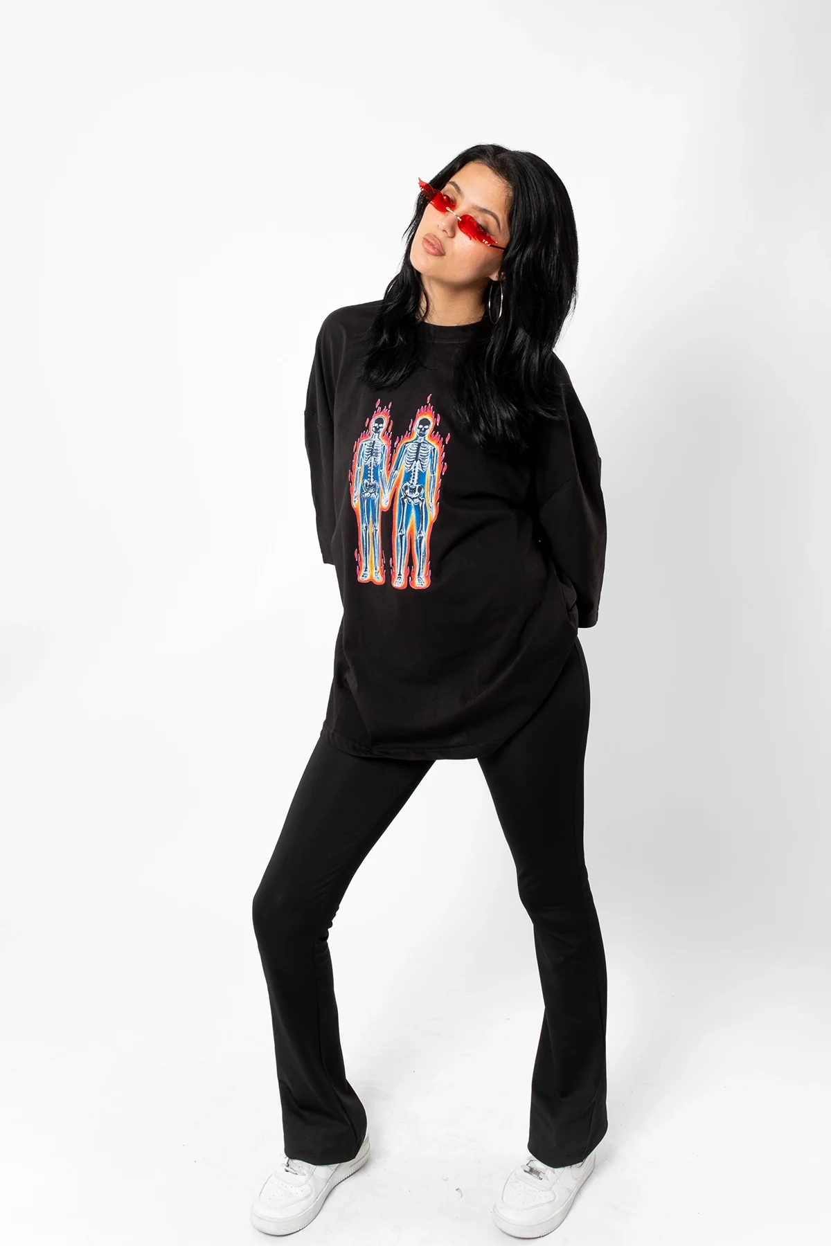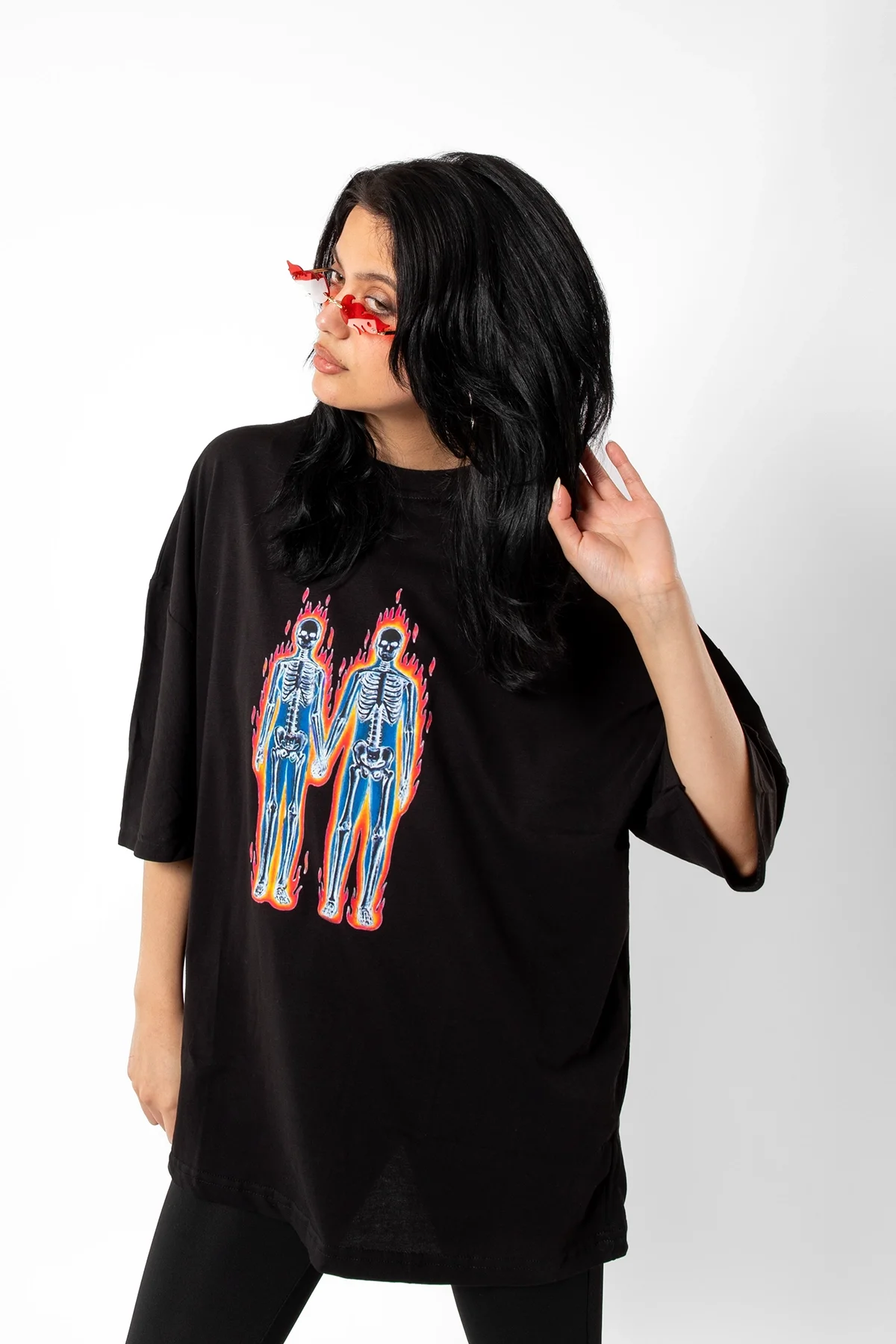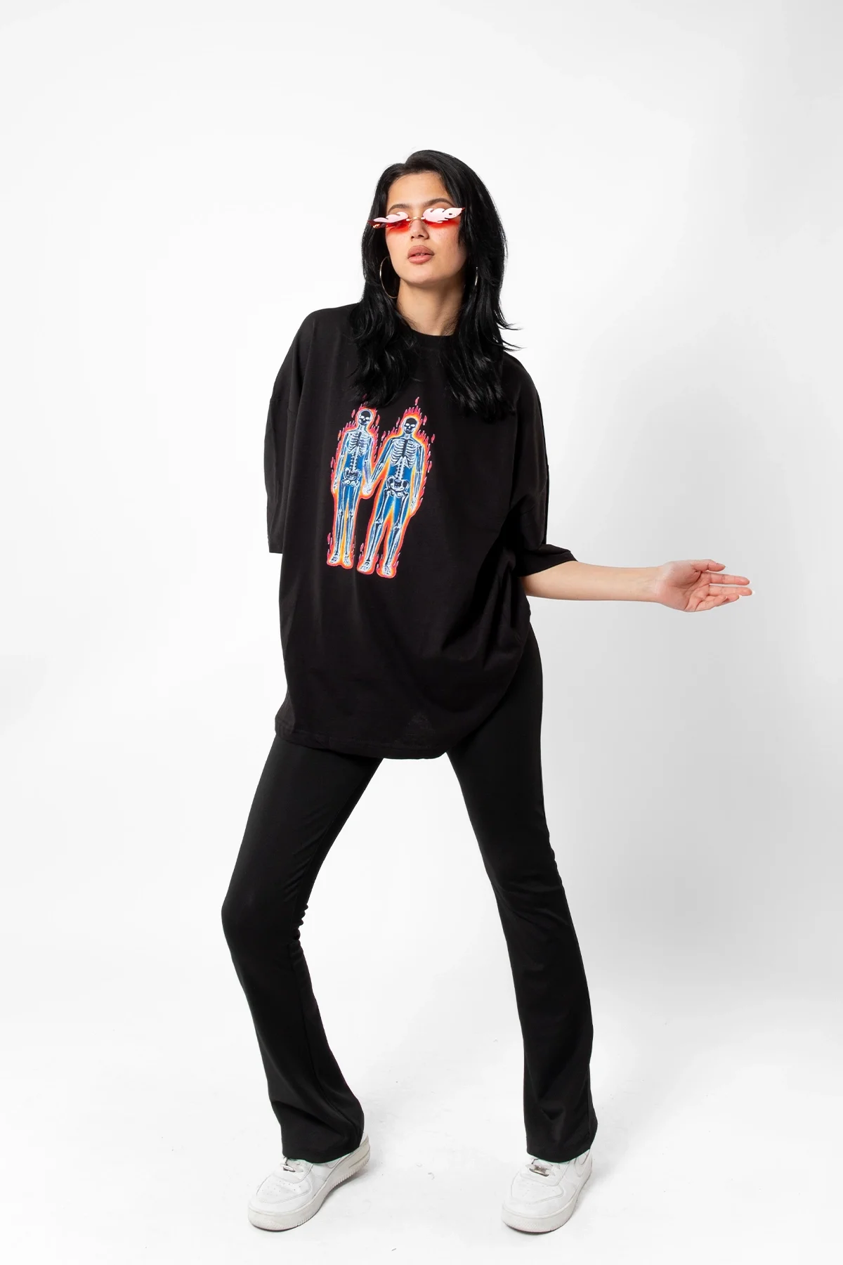 ELECTRİCAL LOVE BASKILI SİYAH OVERSİZE UNİSEX TSHİRT