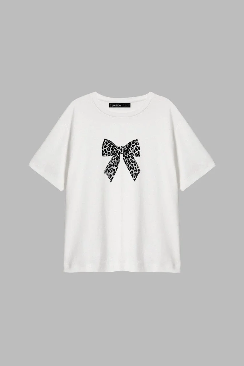 FİYONK "V2" BASKILI RELAXED FİT BEYAZ KADIN TSHİRT