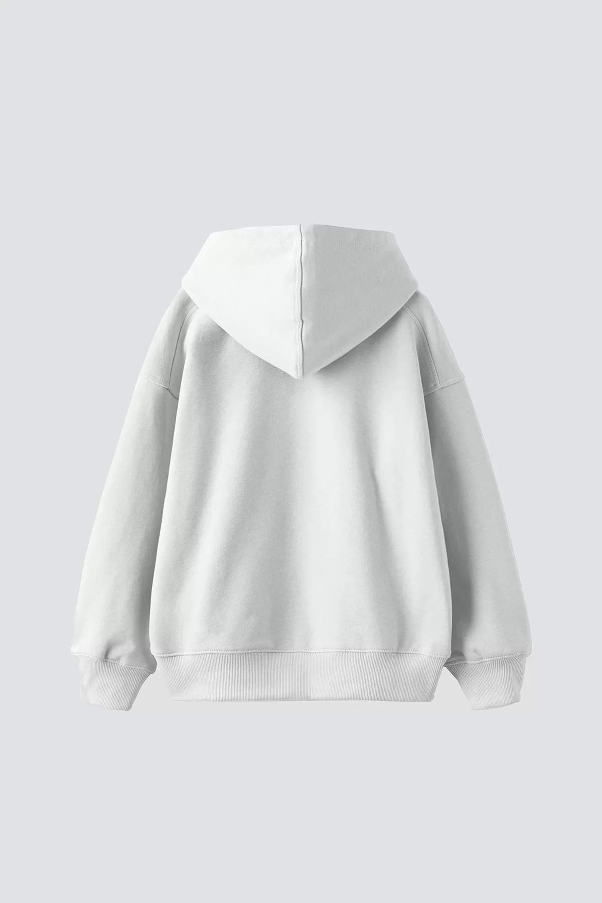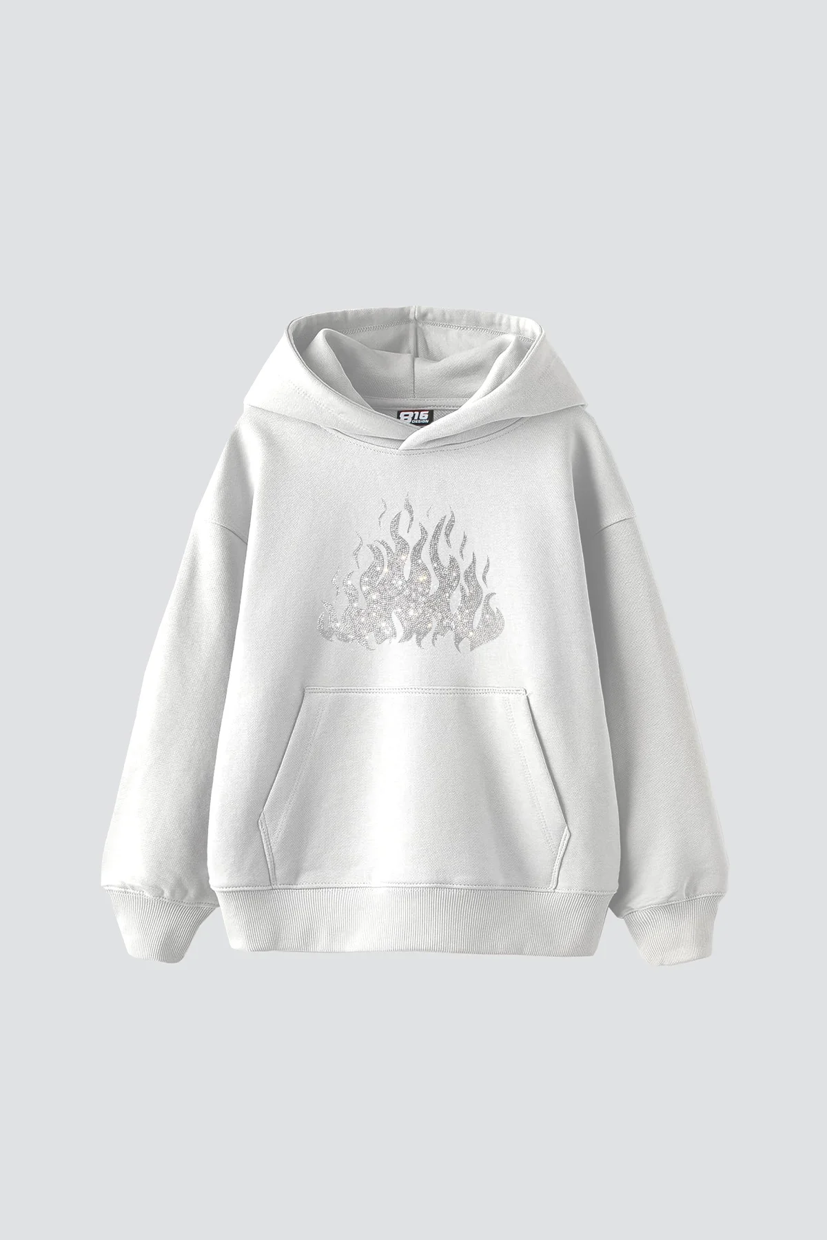 FLAME TAŞ BASKILI OVERSİZE UNİSEX BEYAZ HOODİE