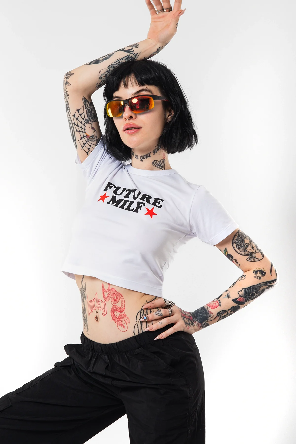 FUTURE MİLF BASKILI BEYAZ CROP TOP
