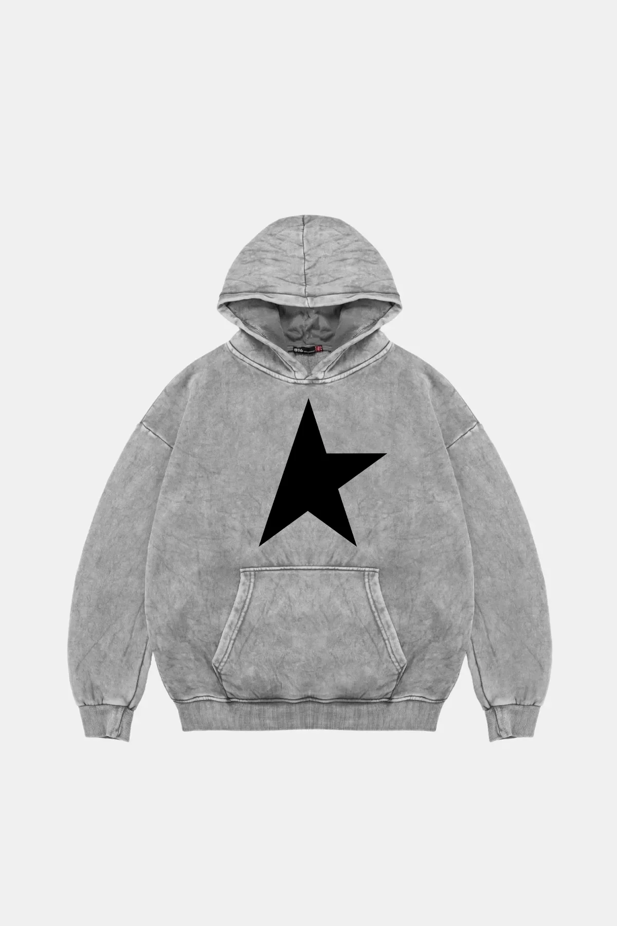Half Star Baskılı Oversize Kadın Yıkamalı Beyaz Hoodie
