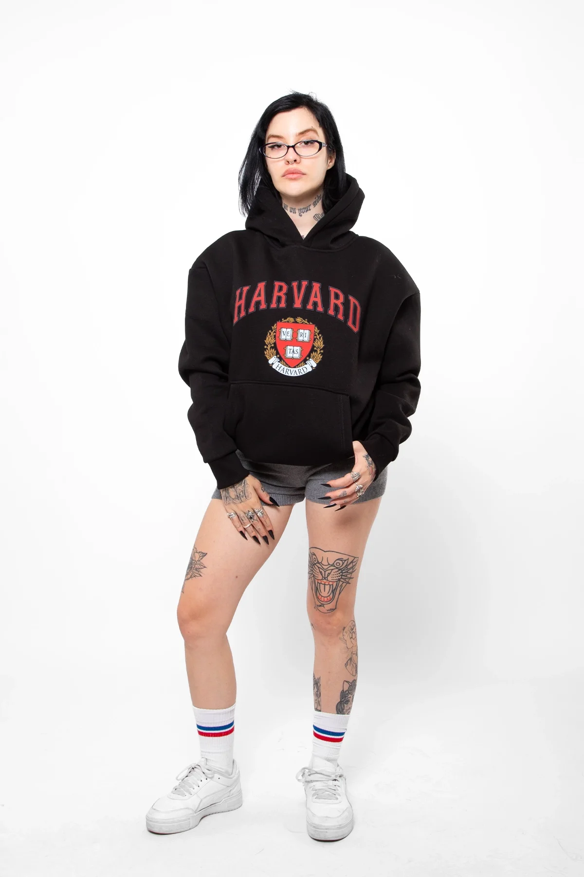 Stilini sade ama çarpıcı bir dokunuşla tamamla.Harvard Baskılı Hoodie, oversize kesimi ve zamansız Siyah rengiyle hem konforu hem tarzı bir araya getiriyor. Göğüs kısmındaki yazısı ve baskı detayıyla enerjik ve özgün bir görünüm sunar.