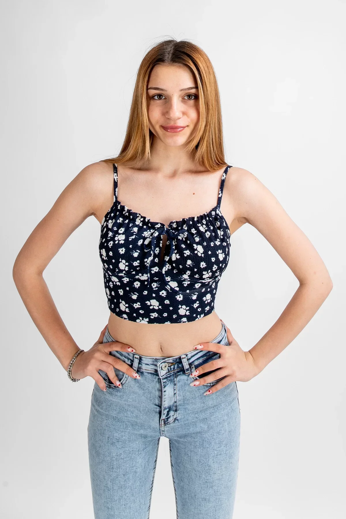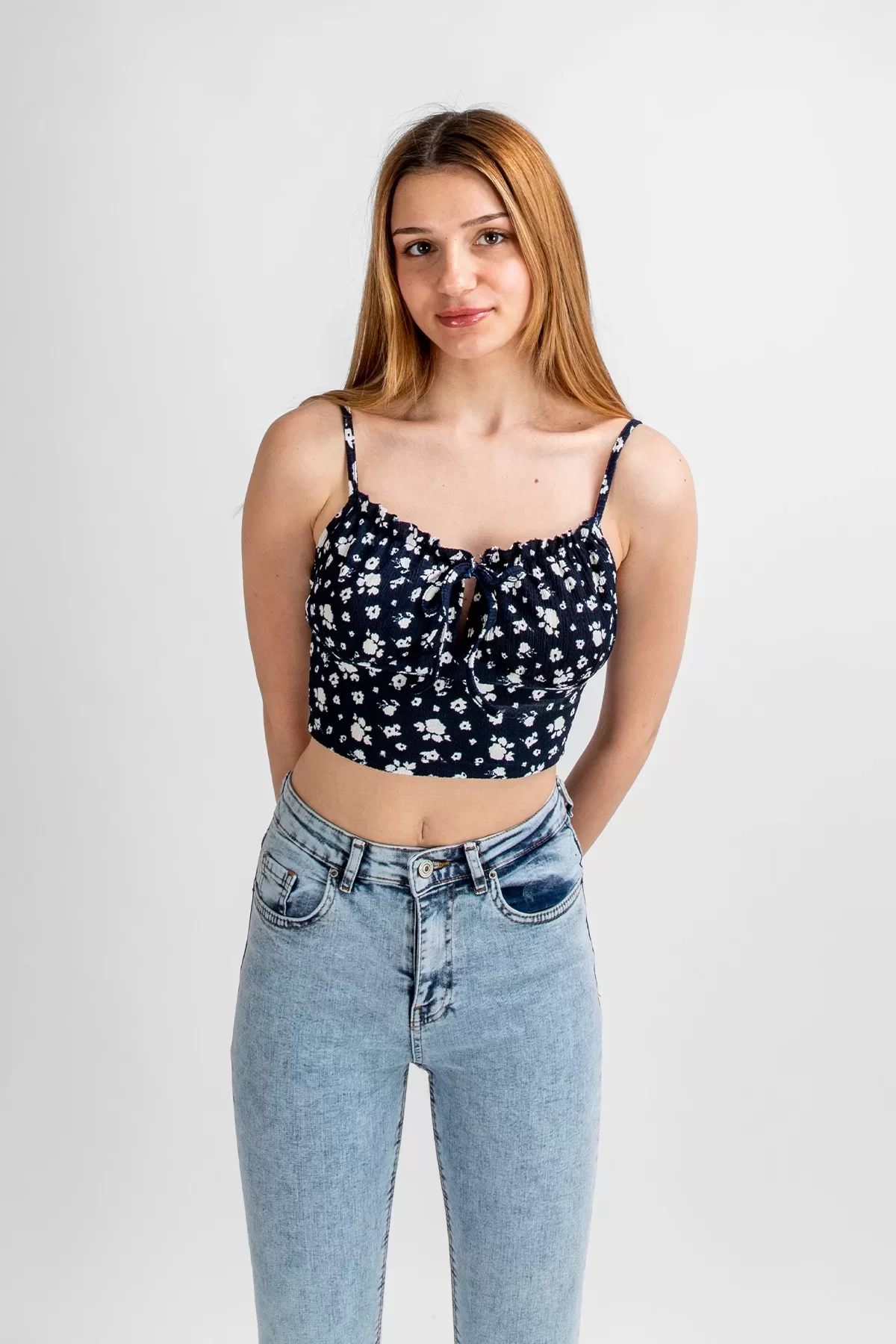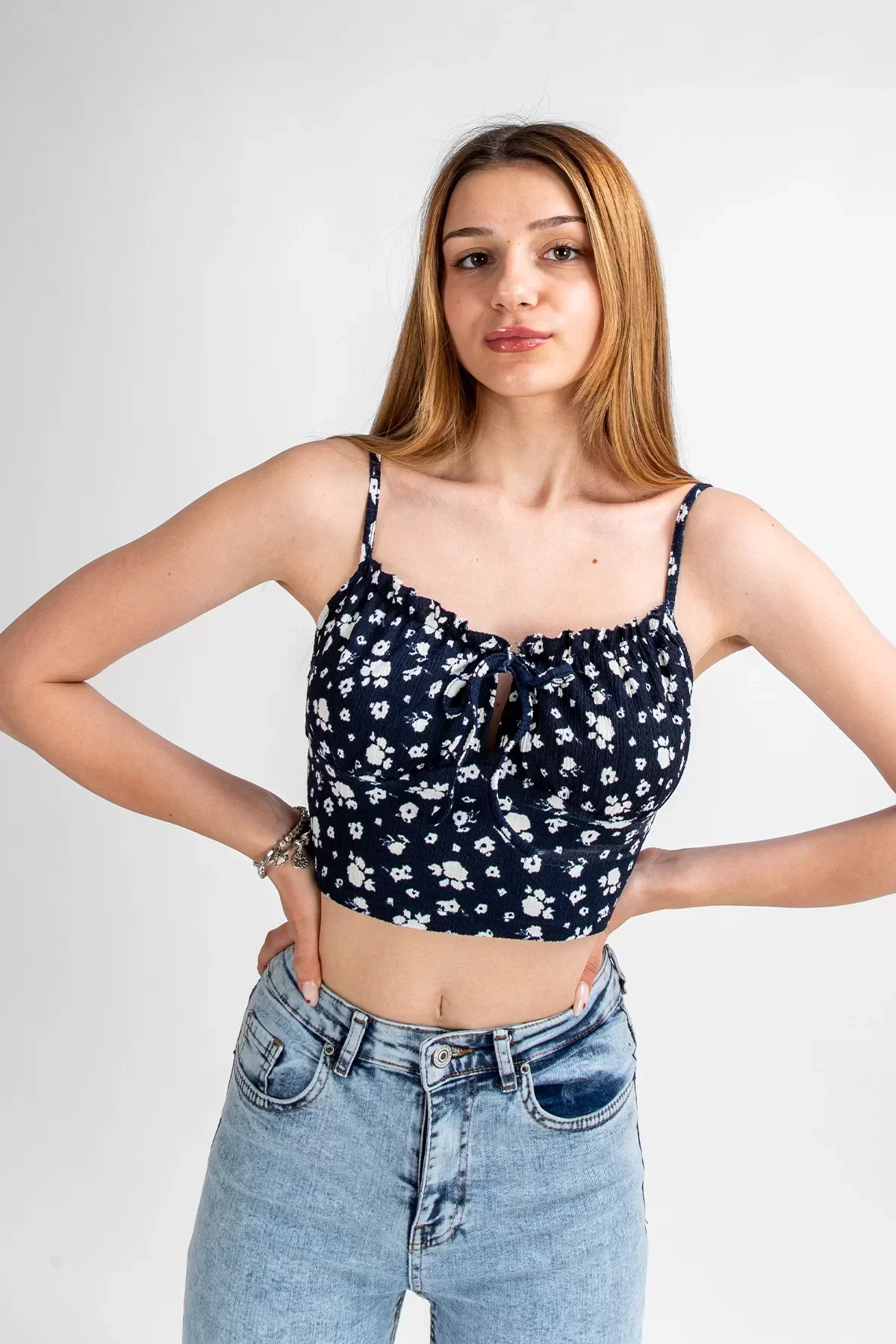 Zarif görünüm ve yazın enerjisini bir araya getiren İnce Askılı Çiçek Desenli Lacivert Bluz, günlük şıklığınız için ideal bir tercihtir. İnce askı detayı ve dökümlü yapısı sayesinde sıcak havalarda maksimum rahatlık sağlar. Canlı çiçek desenleri, lacivert zemin üzerinde dikkat çekici bir kontrast oluşturarak feminen bir hava katar.