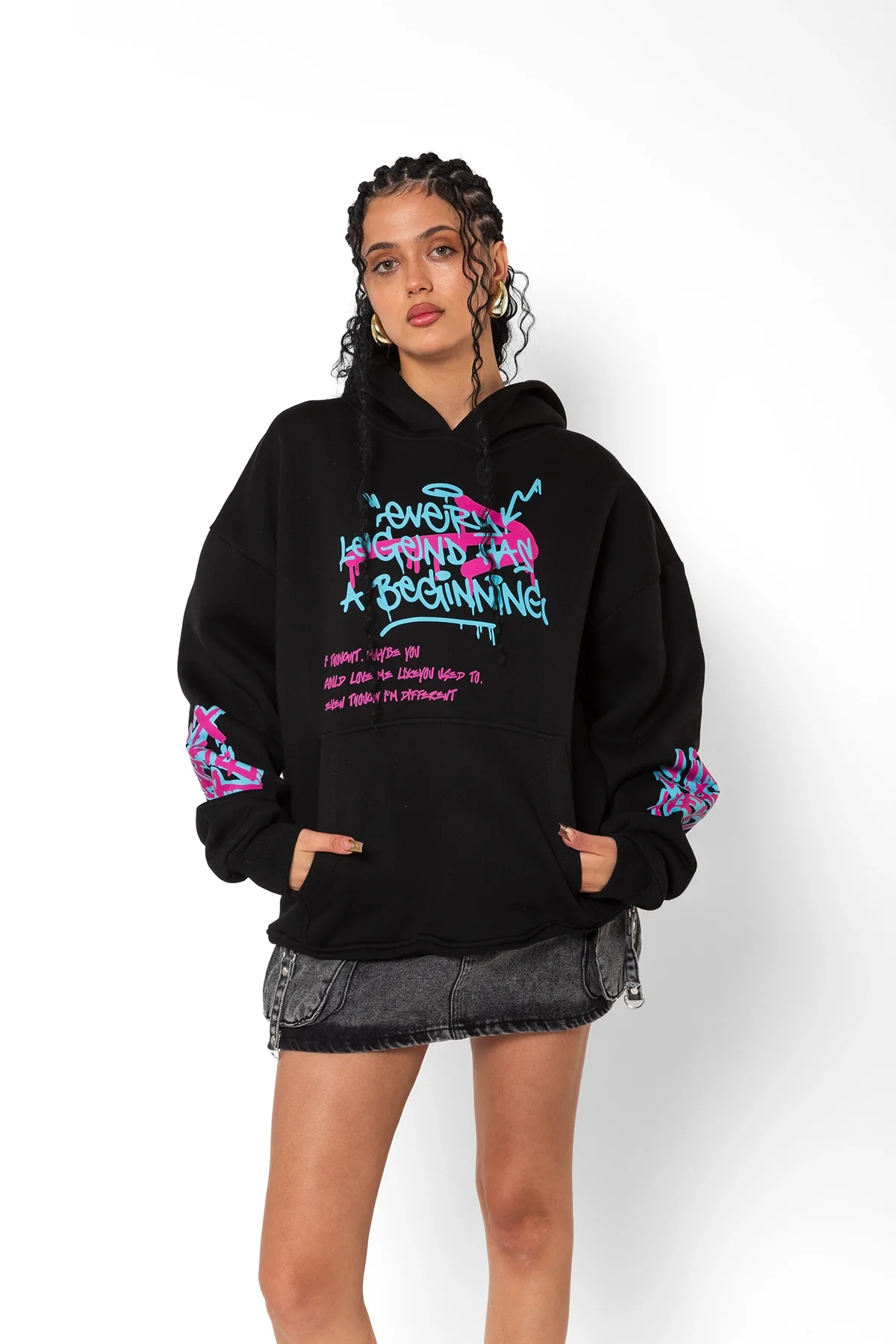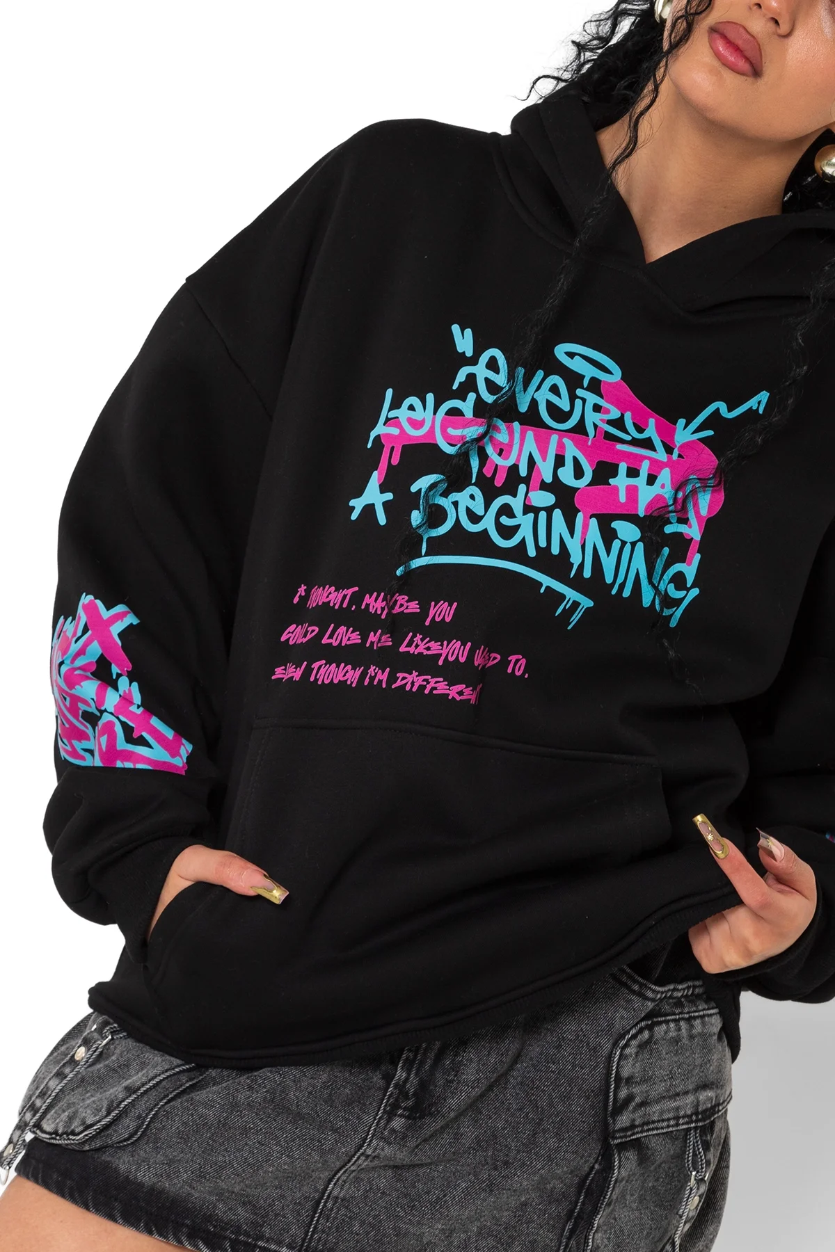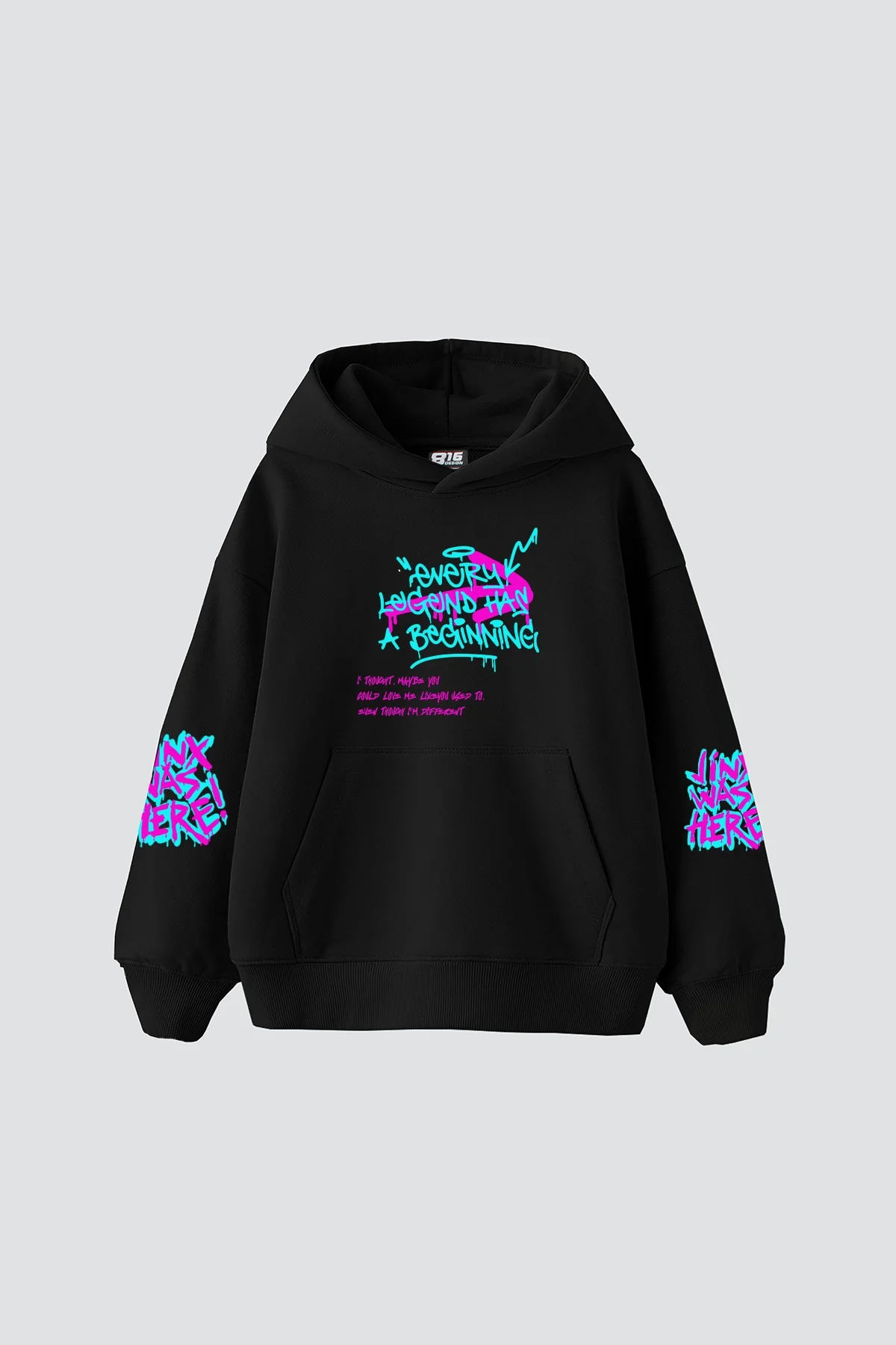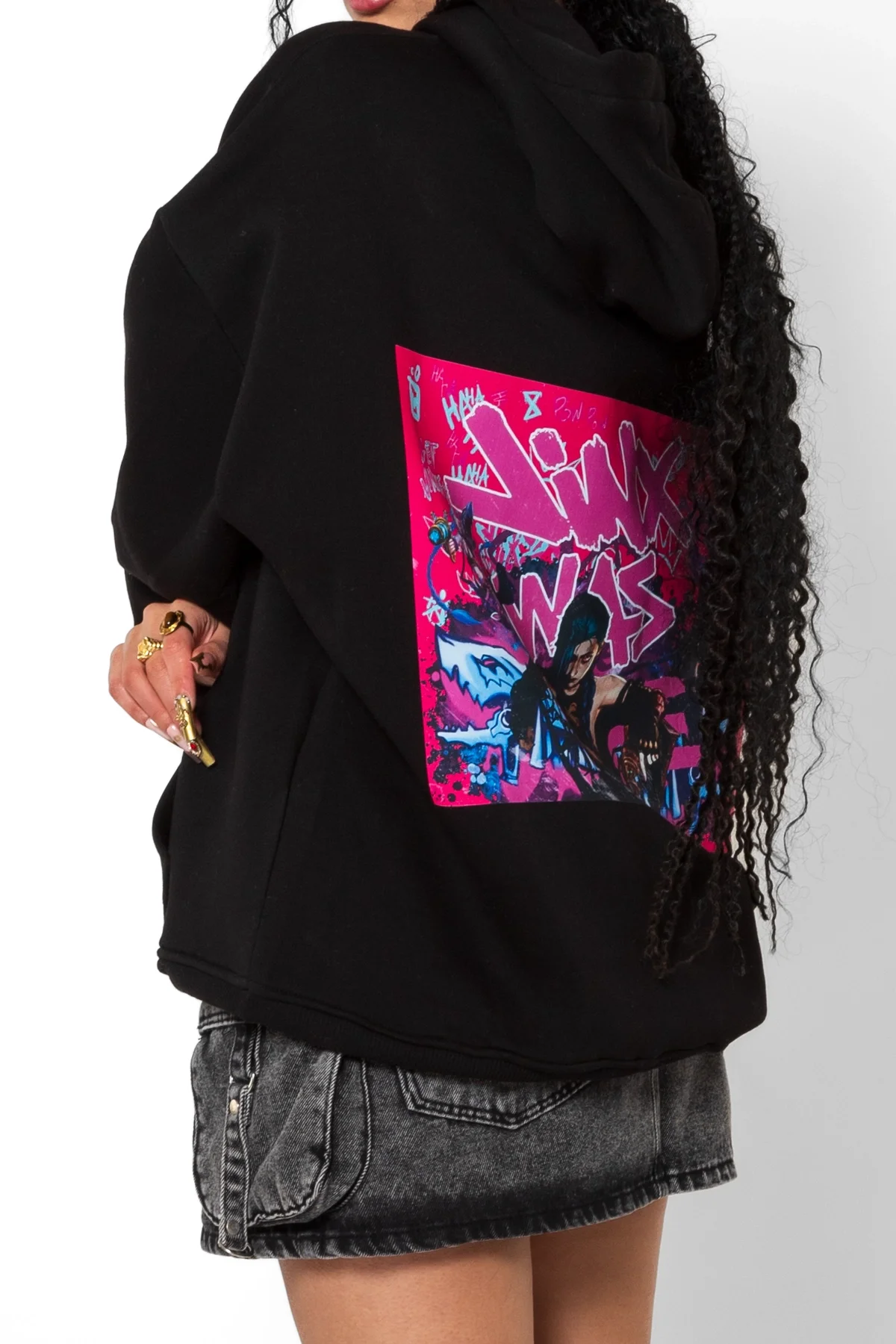 JİNX ARCANE BASKILI OVERSİZE UNİSEX SİYAH HOODİE