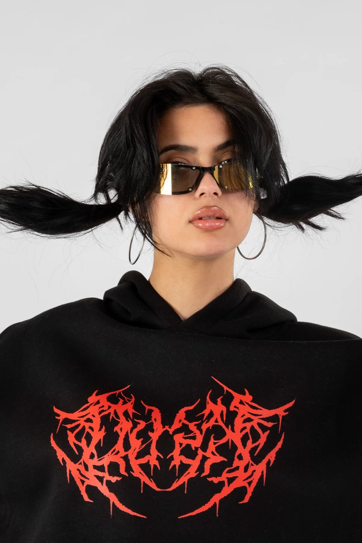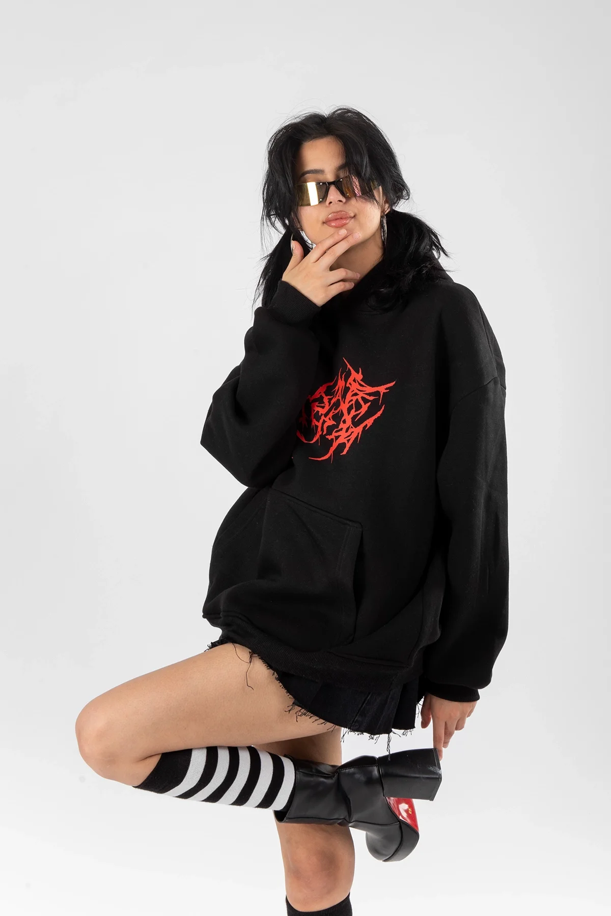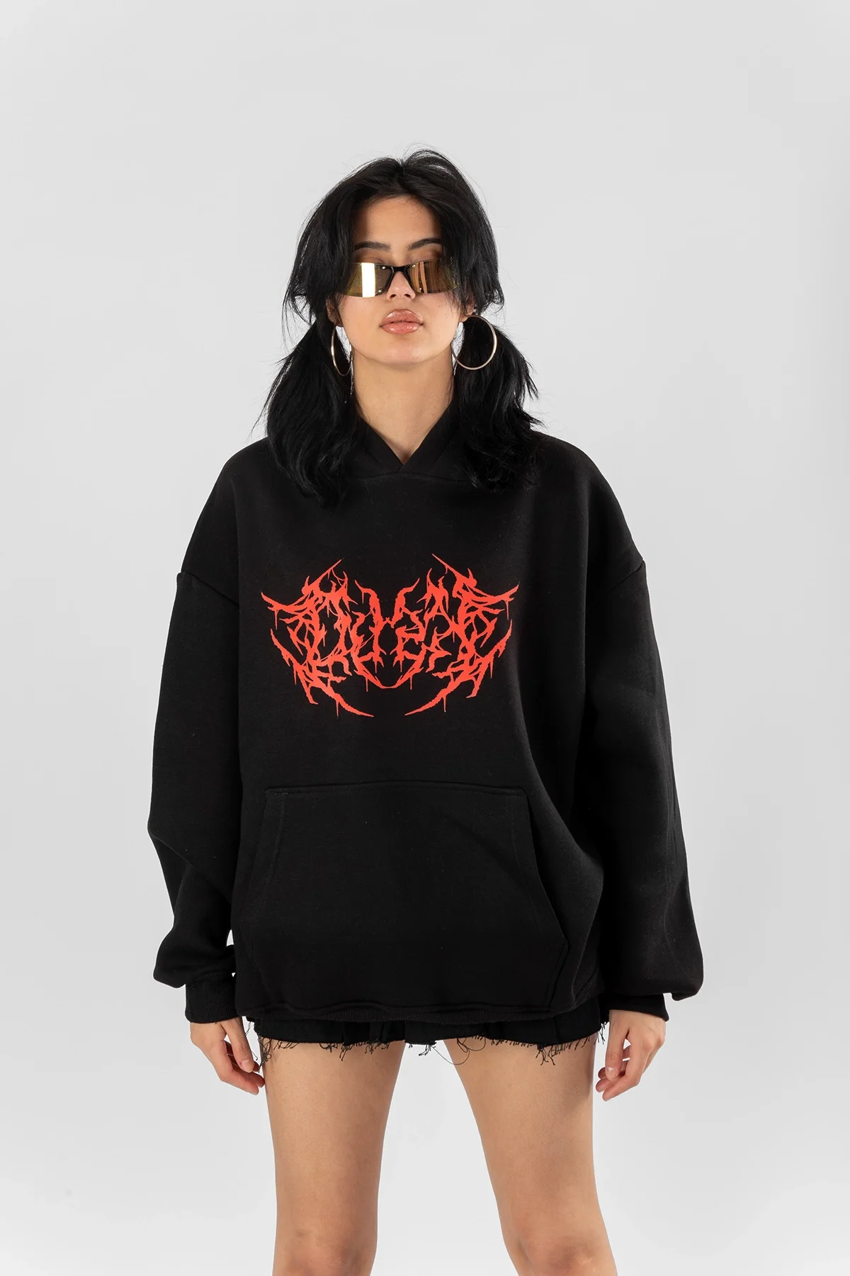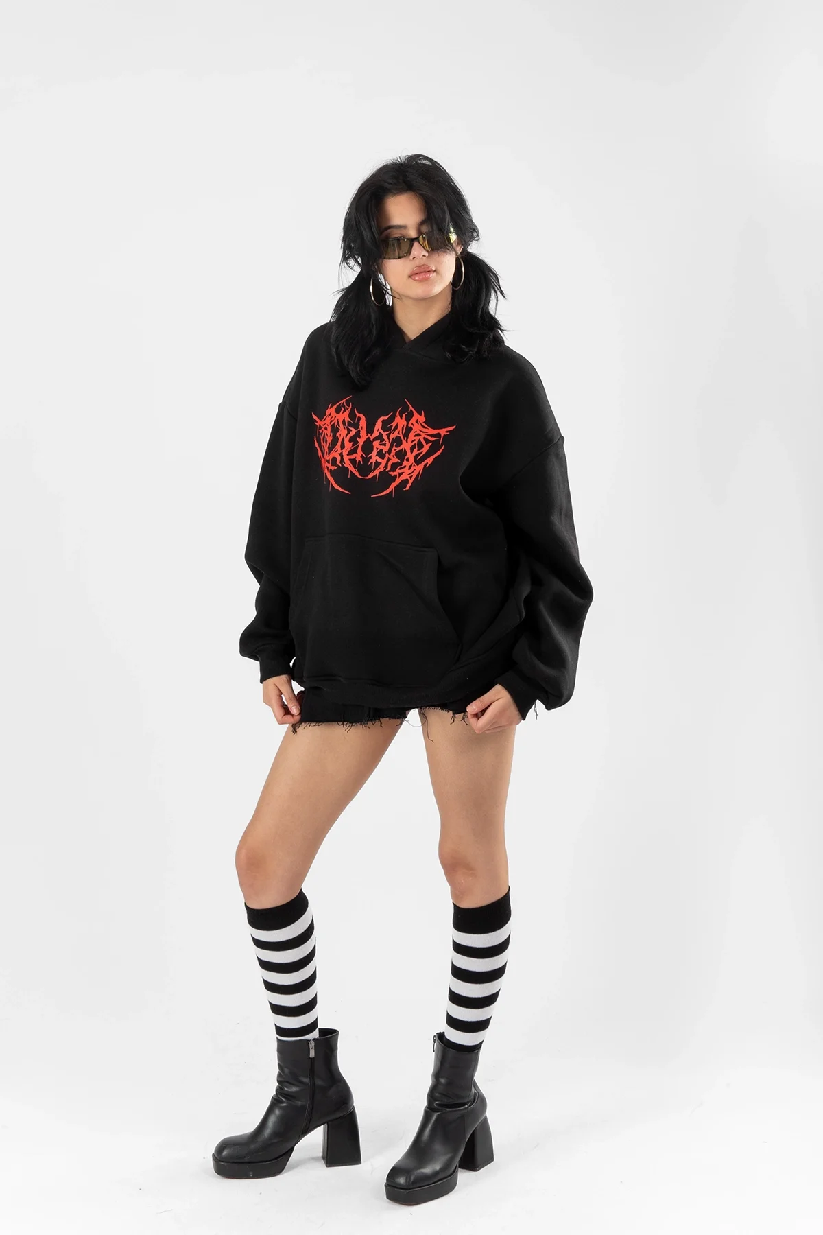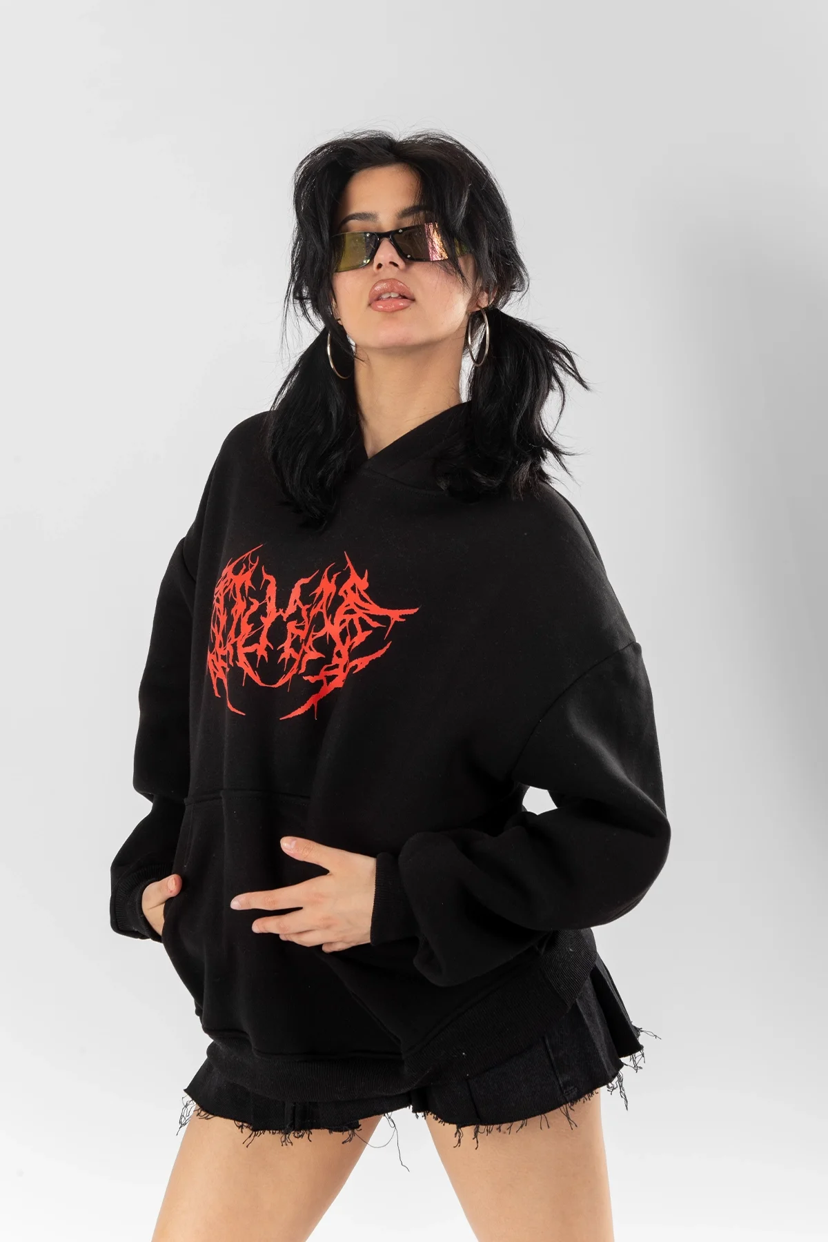 KIRMIZI DUSK BASKILI OVERSİZE UNİSEX SİYAH HOODİE