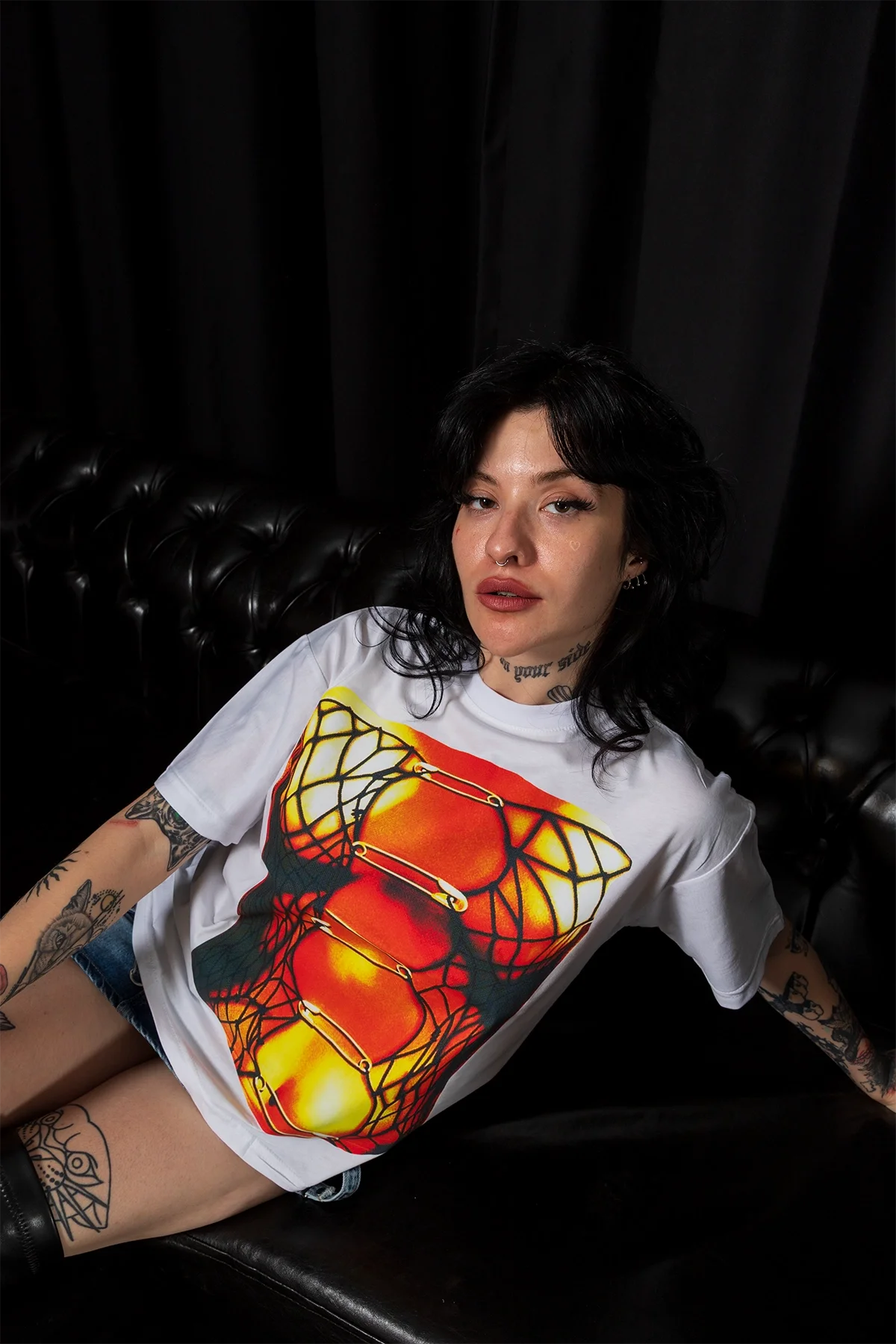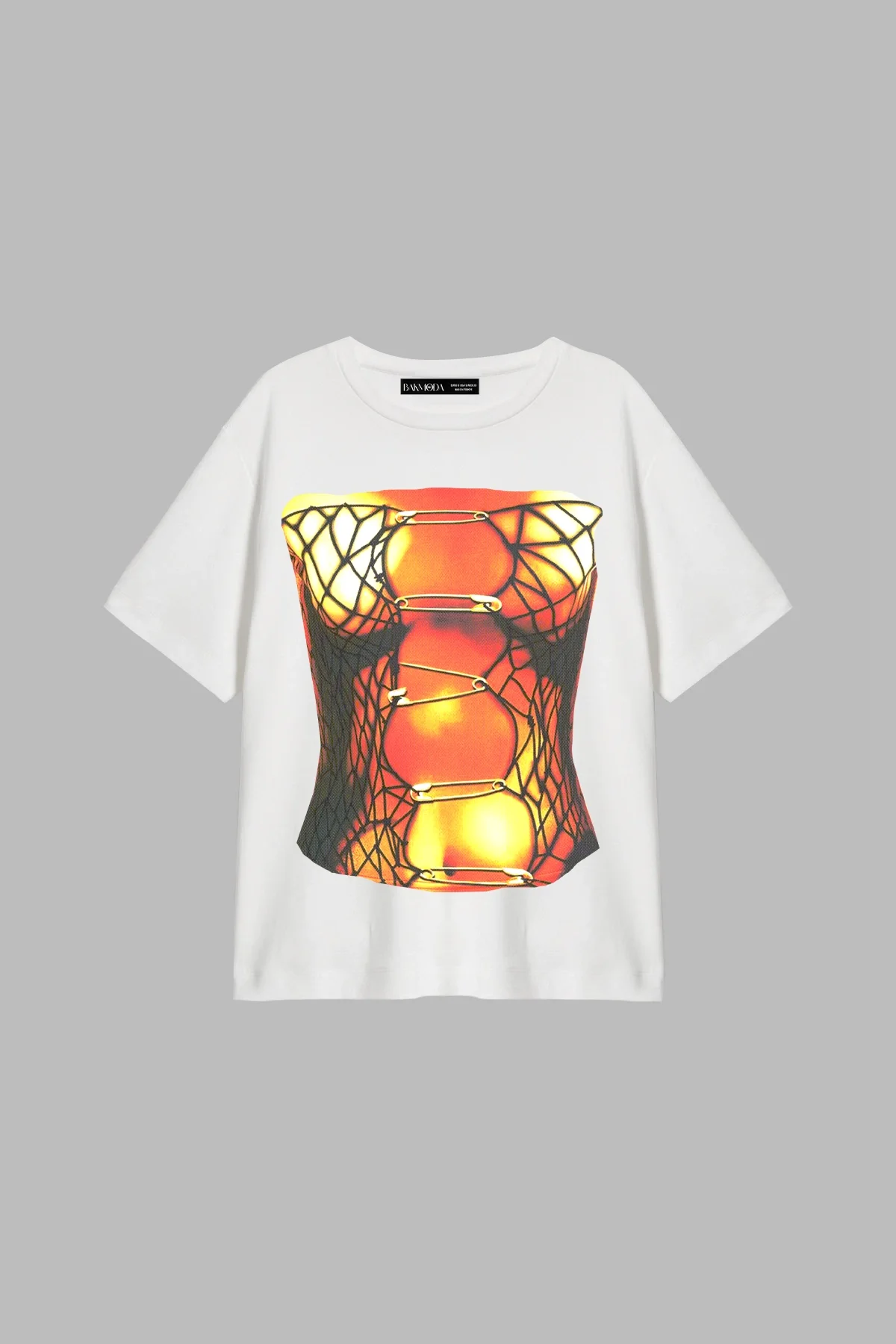 Knot Boobs Baskılı Relaxed Fit Beyaz Kadın Tshirt, Bak Moda'nın kendine özgü tasarımı ile stilinizi tamamlayacak mükemmel bir seçenektir.