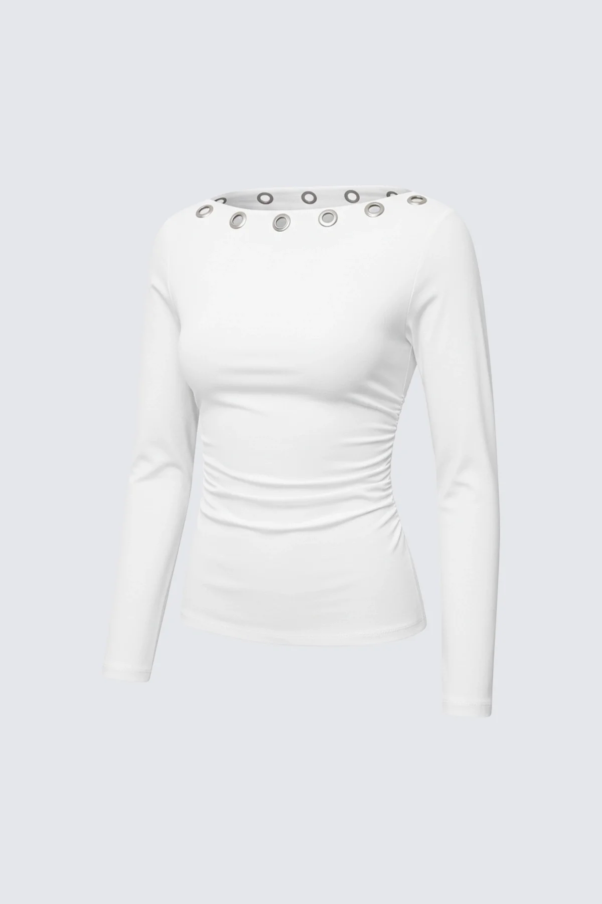 Minimal detaylarla tasarlanmış bu özel parça, adını omuz veya yaka kısmındaki kuş gözü (metal halka) aksesuar detaylarından alıyor. Hafif dökümlü yapısı ve modern kesimiyle hem günlük kombinlerinizde hem de özel davetlerde rahatlıkla tercih edebilirsiniz.
