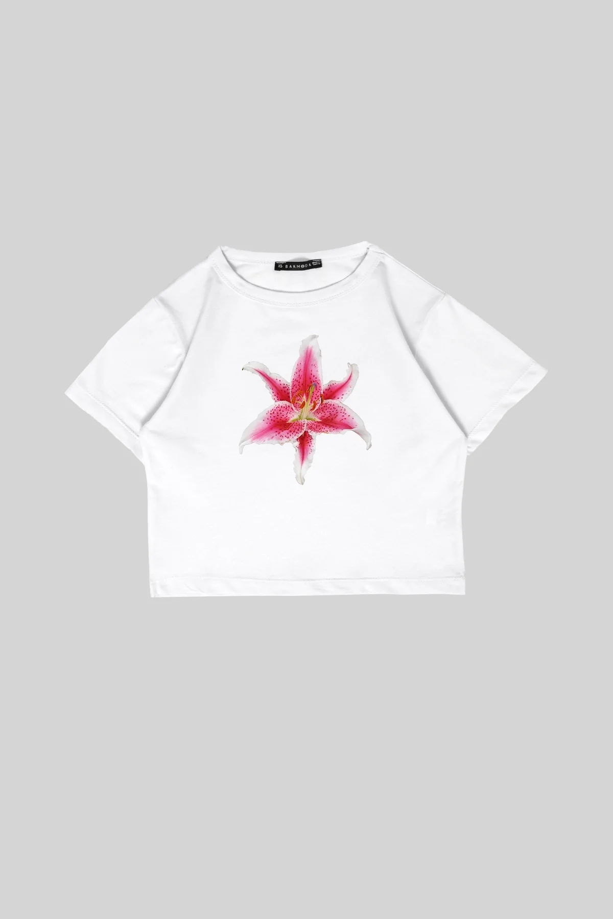 LİLİUM BASKILI BEYAZ CROP TOP