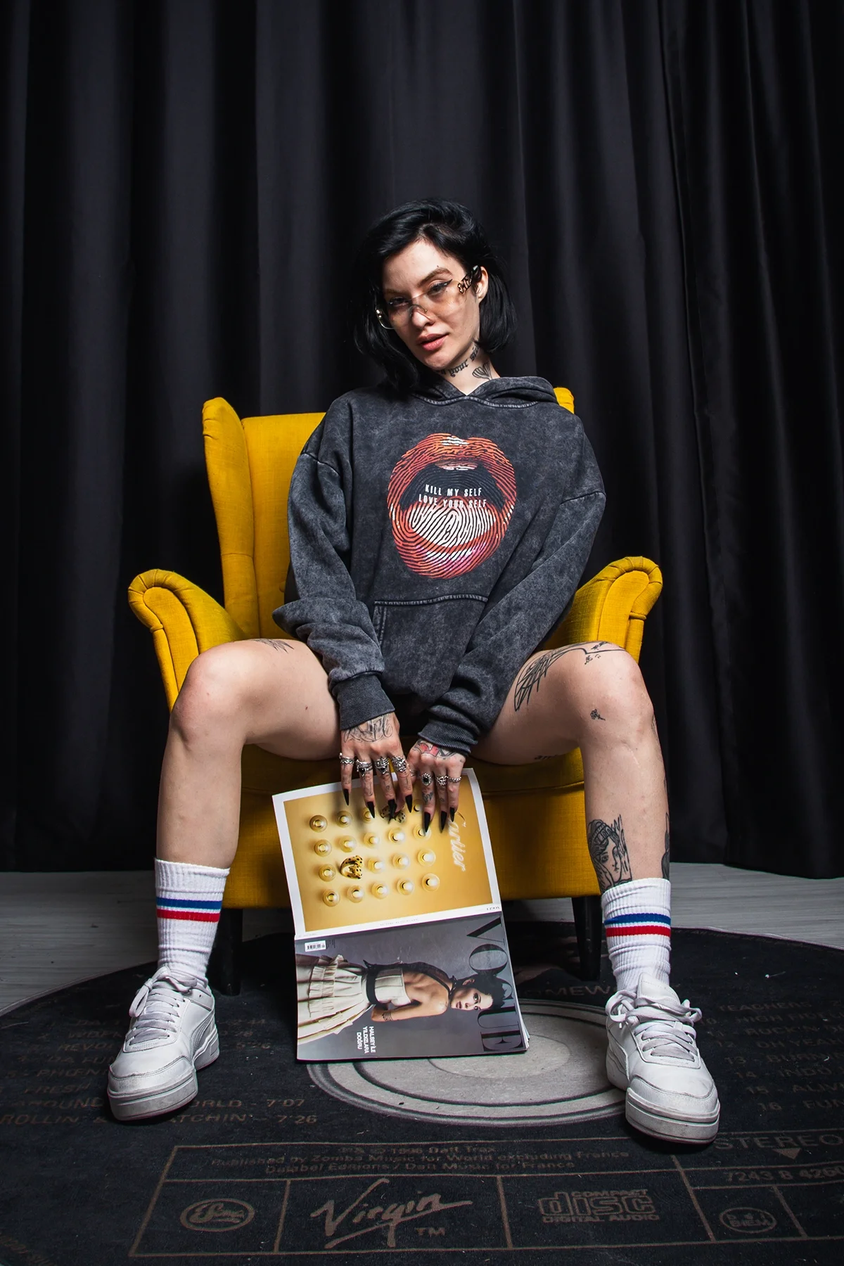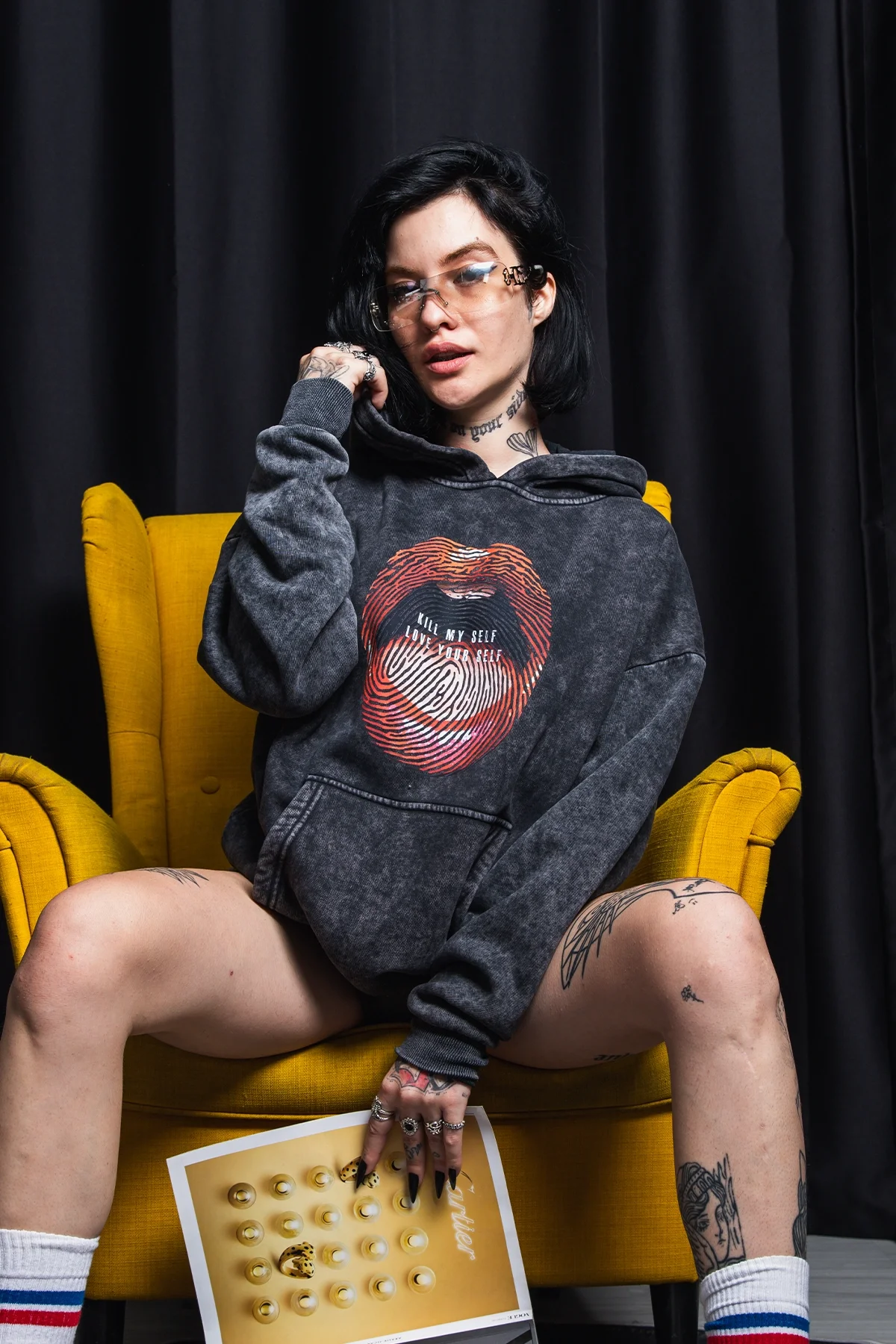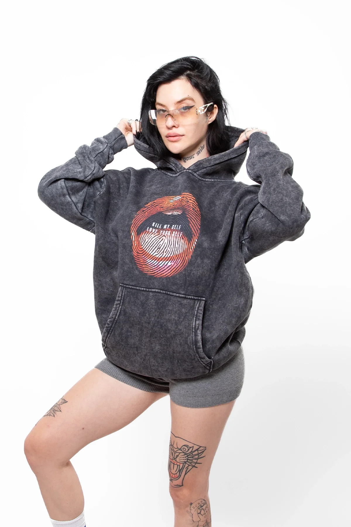 Love Your Self Baskılı Kadın Yıkamalı Siyah Hoodie