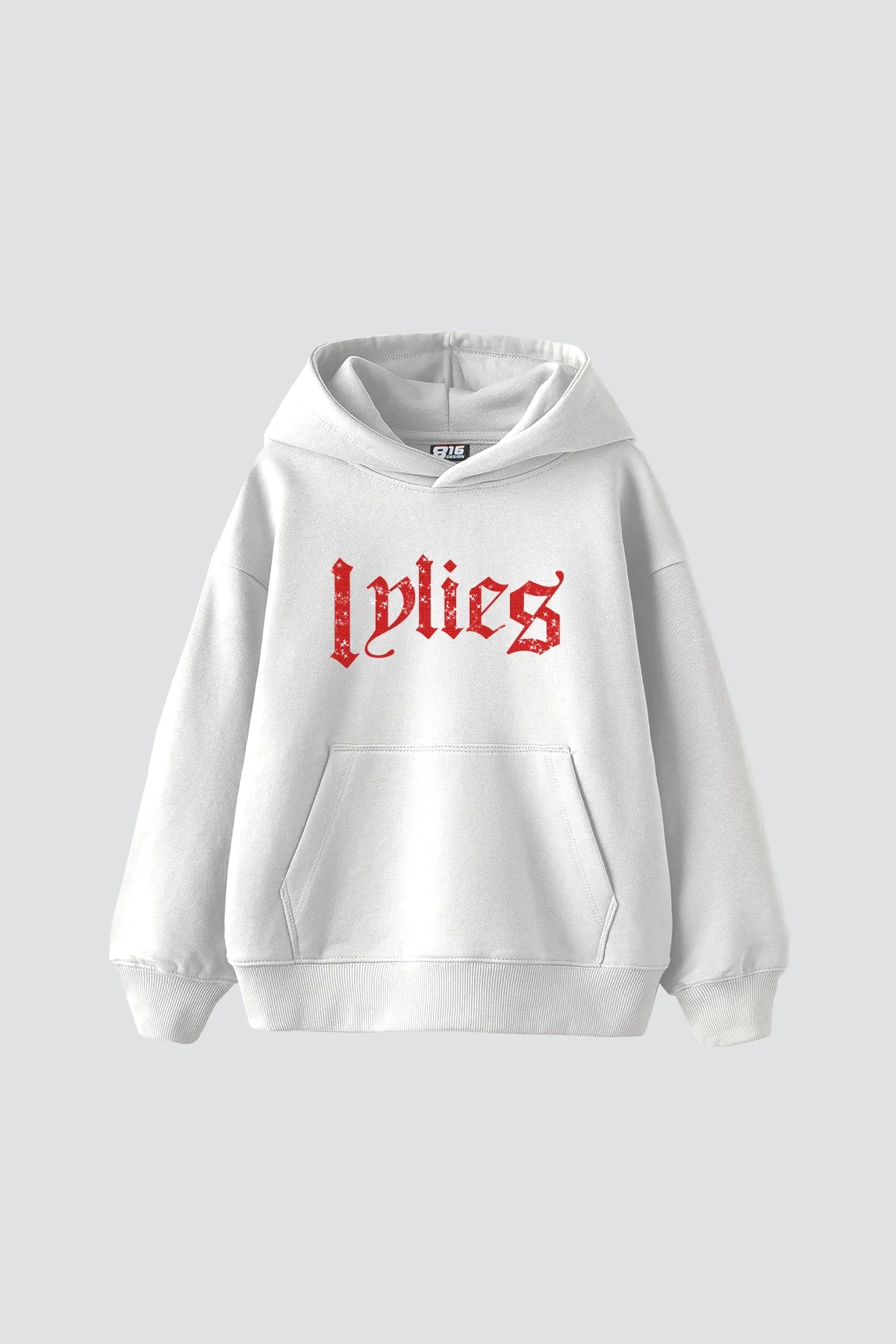 LYLİES KIRMIZI TAŞ BASKILI OVERSİZE UNİSEX BEYAZ HOODİE