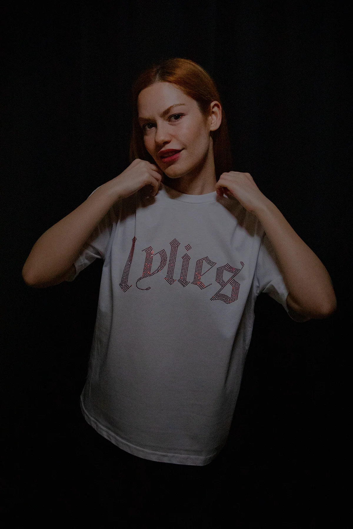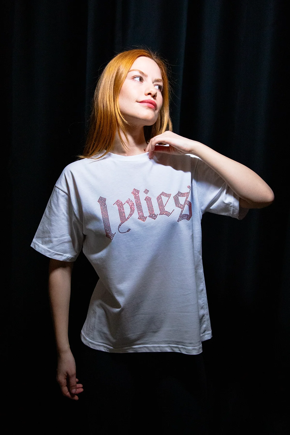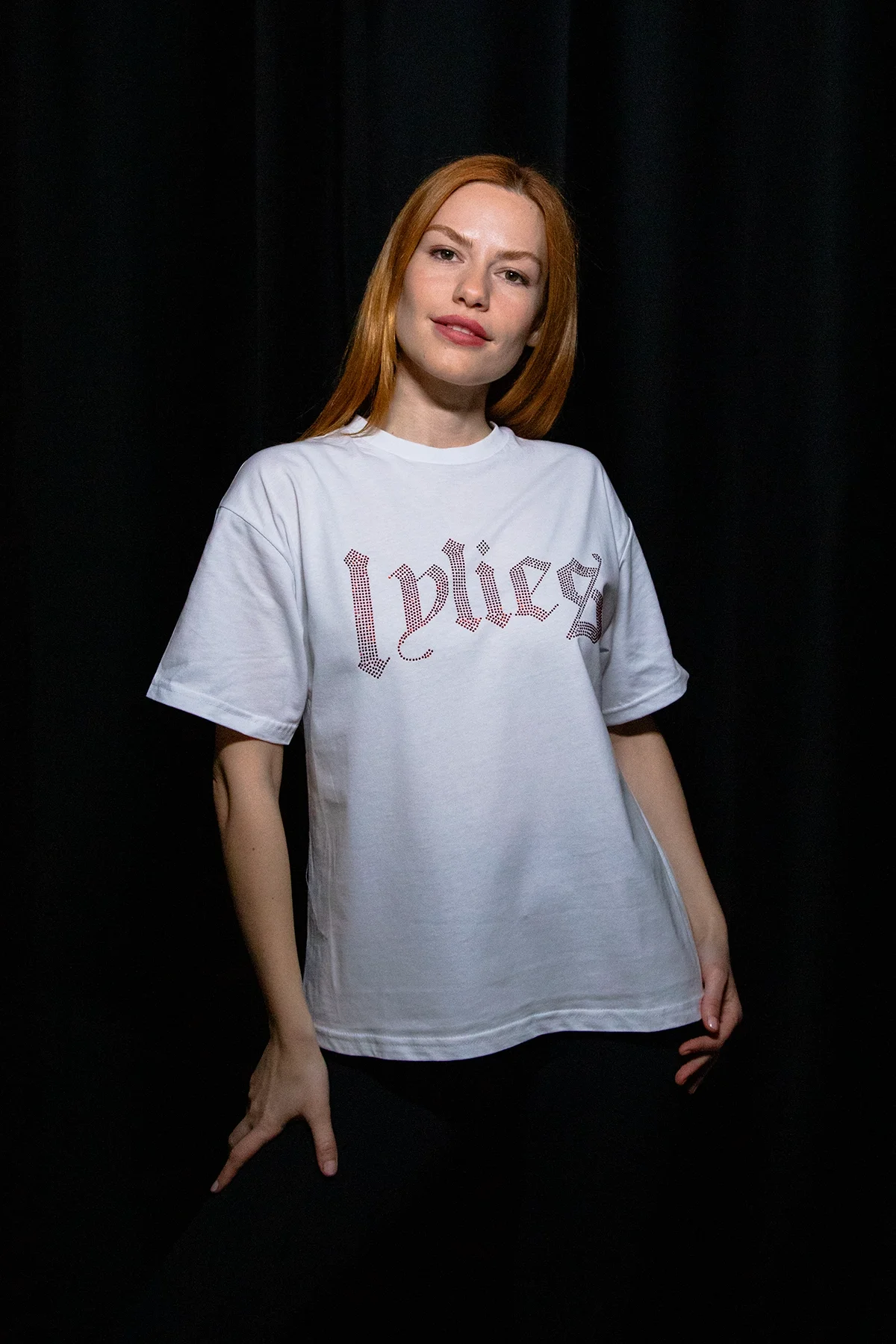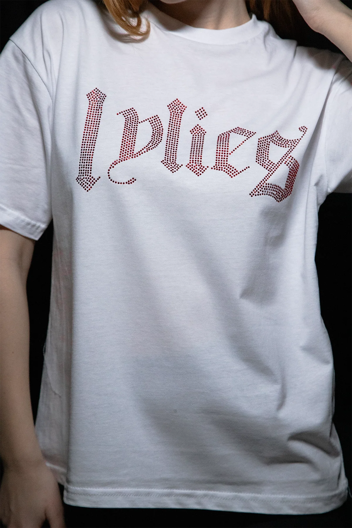LYLİES KIRMIZI TAŞ BASKILI RELAXED FİT BEYAZ KADIN TSHİRT