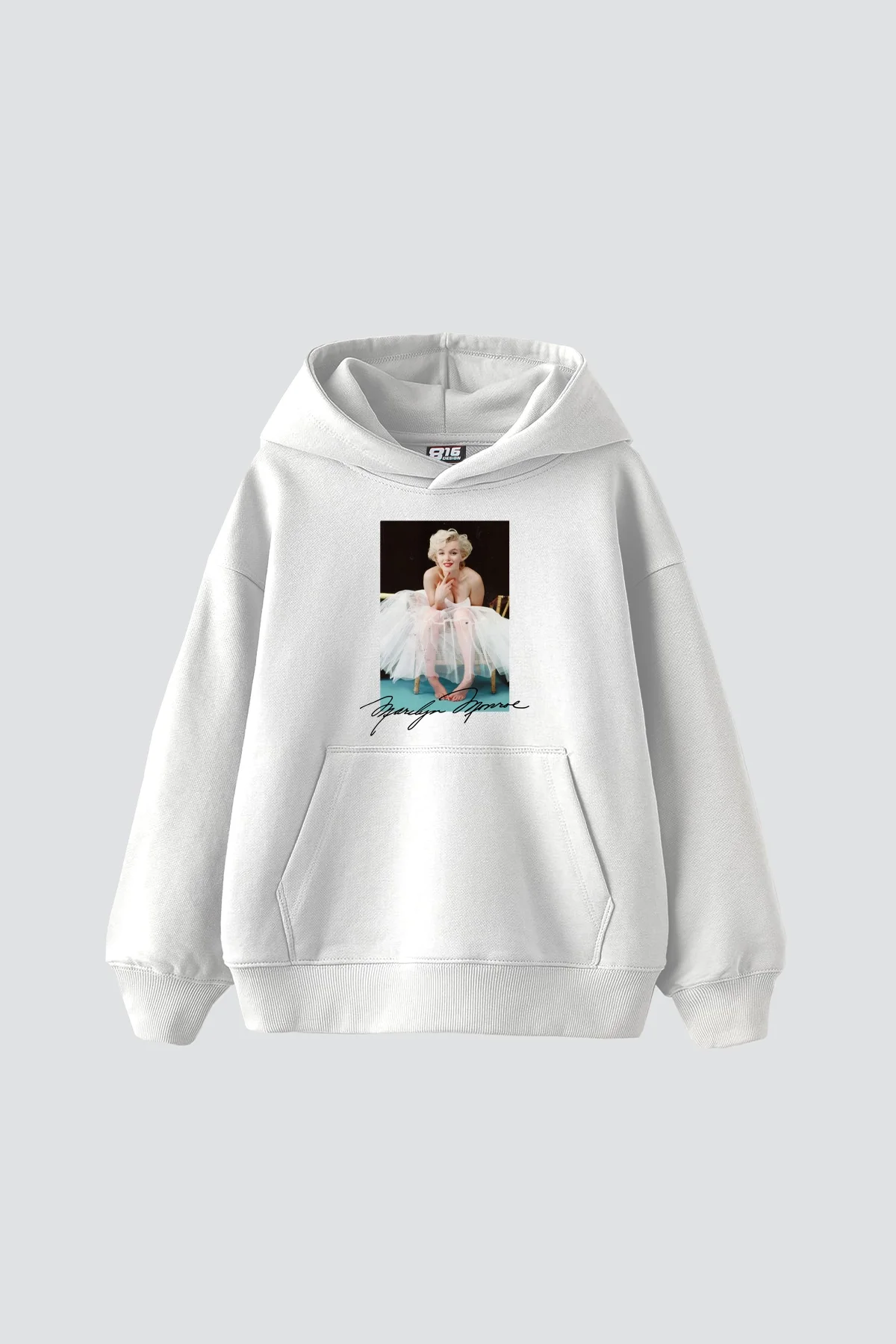 Marilyn Monroe's Beauty Baskılı Oversize Kadın Beyaz Hoodie