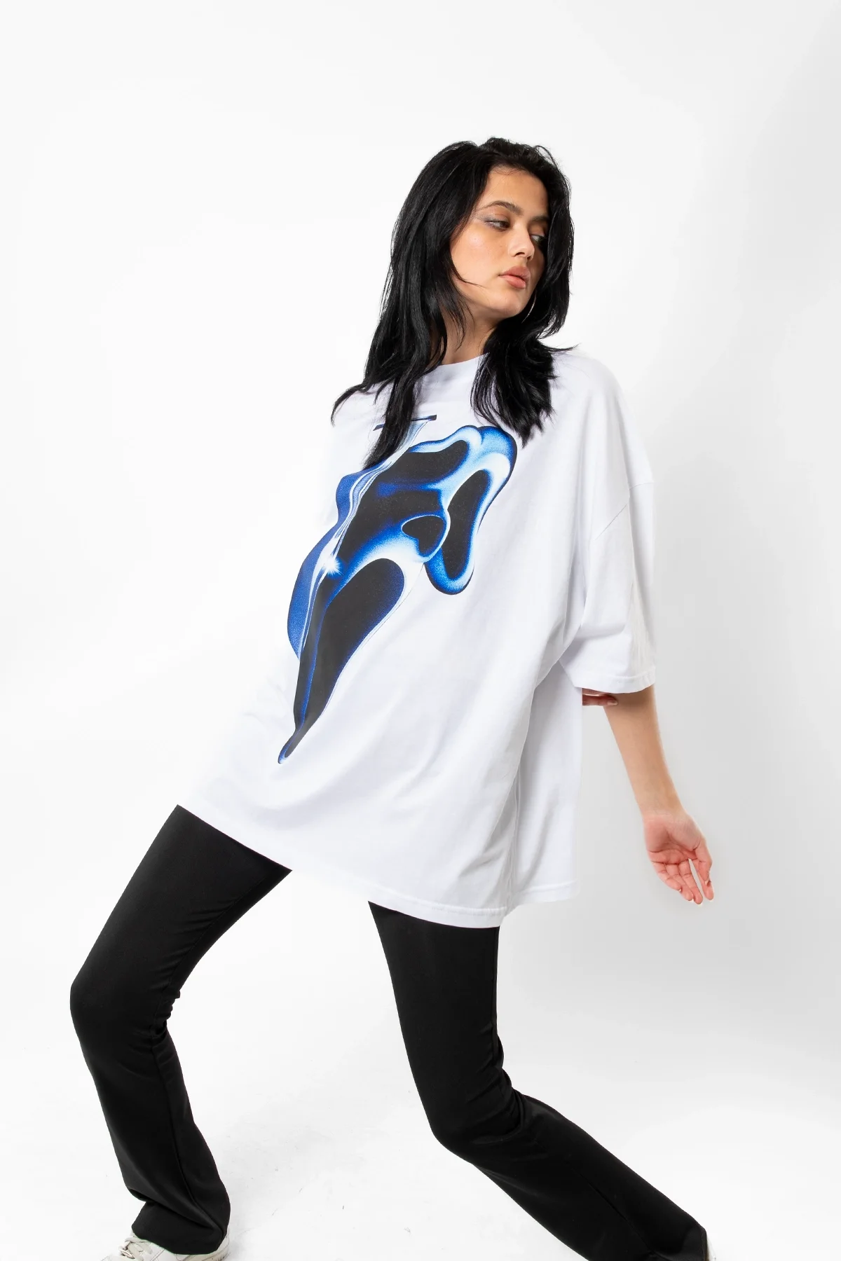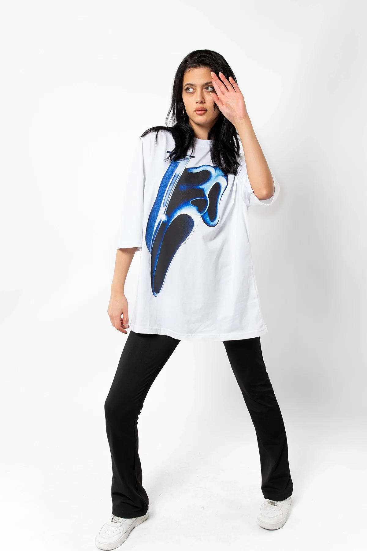 MASK BASKILI BEYAZ UNİSEX OVERSİZE TSHİRT