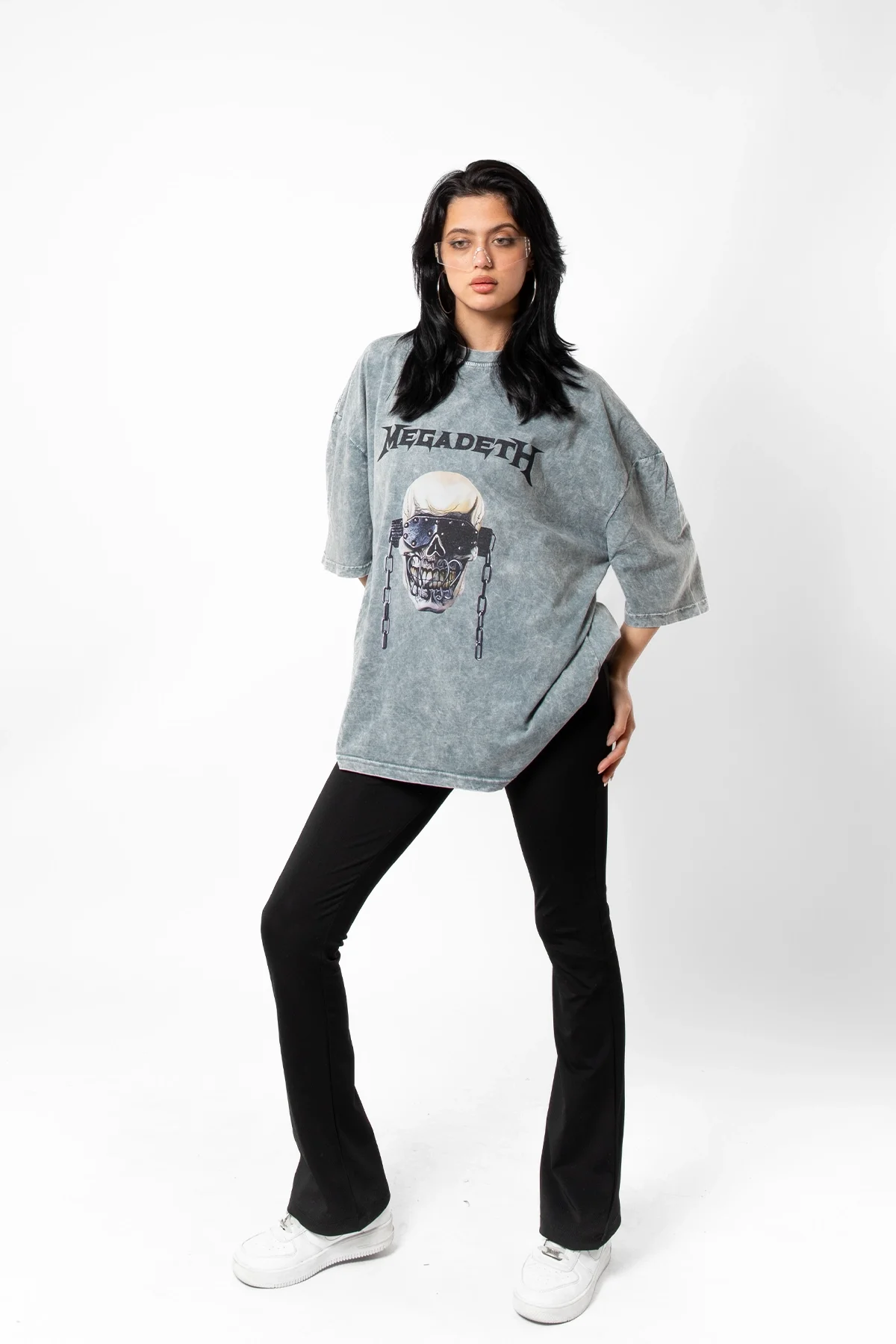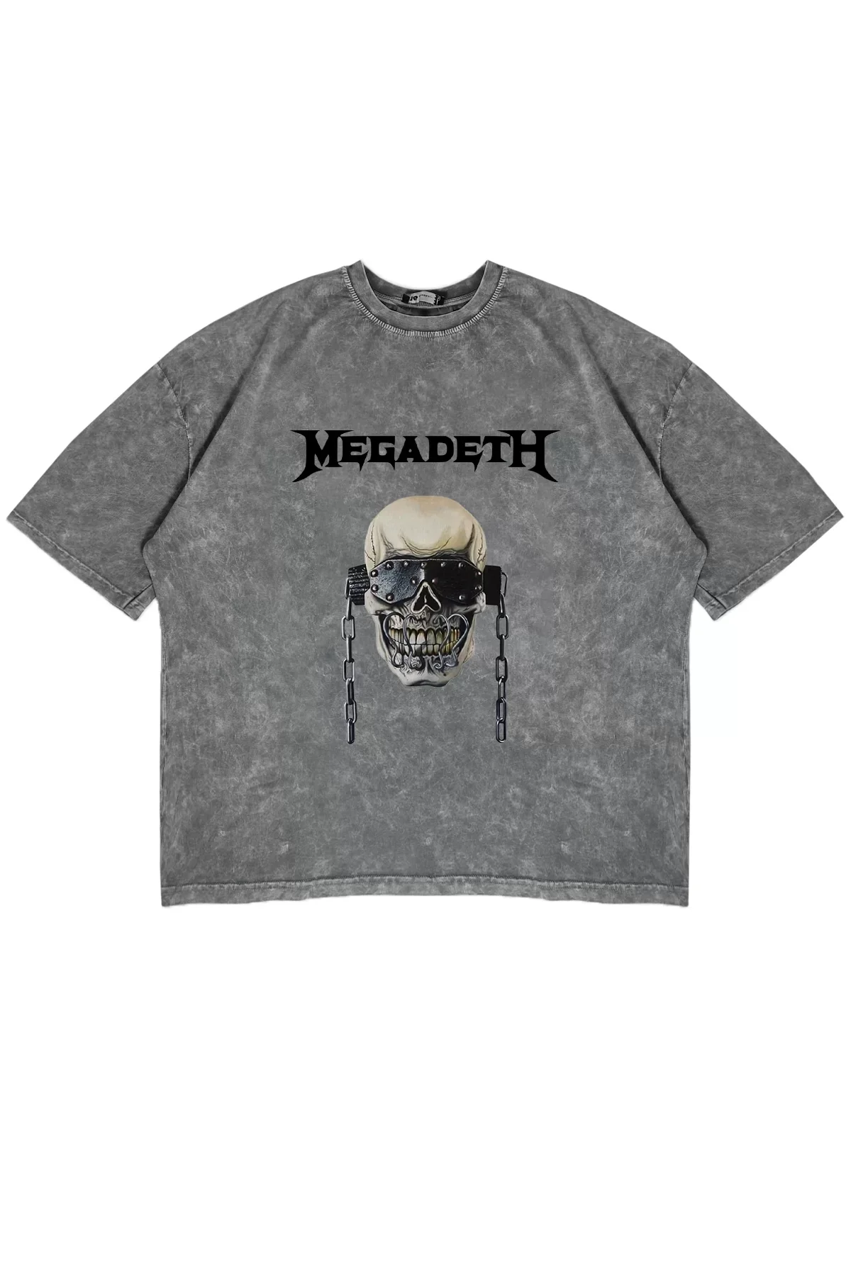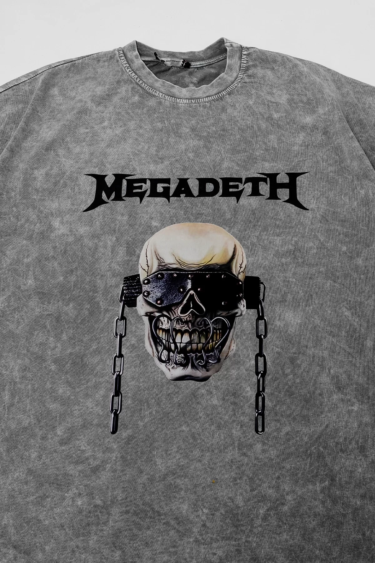 MEGADETH BASKILI BEYAZ YIKAMALI UNİSEX OVERSİZE TSHİRT