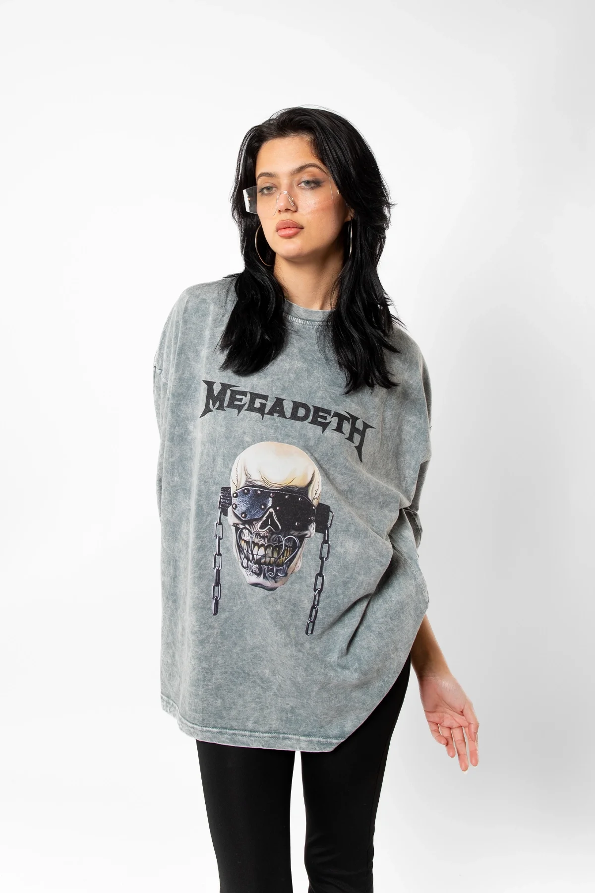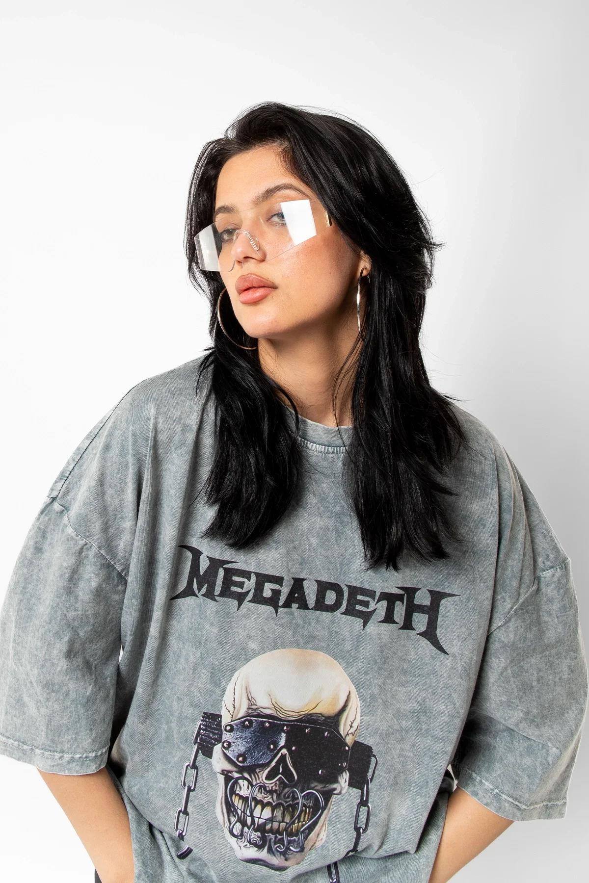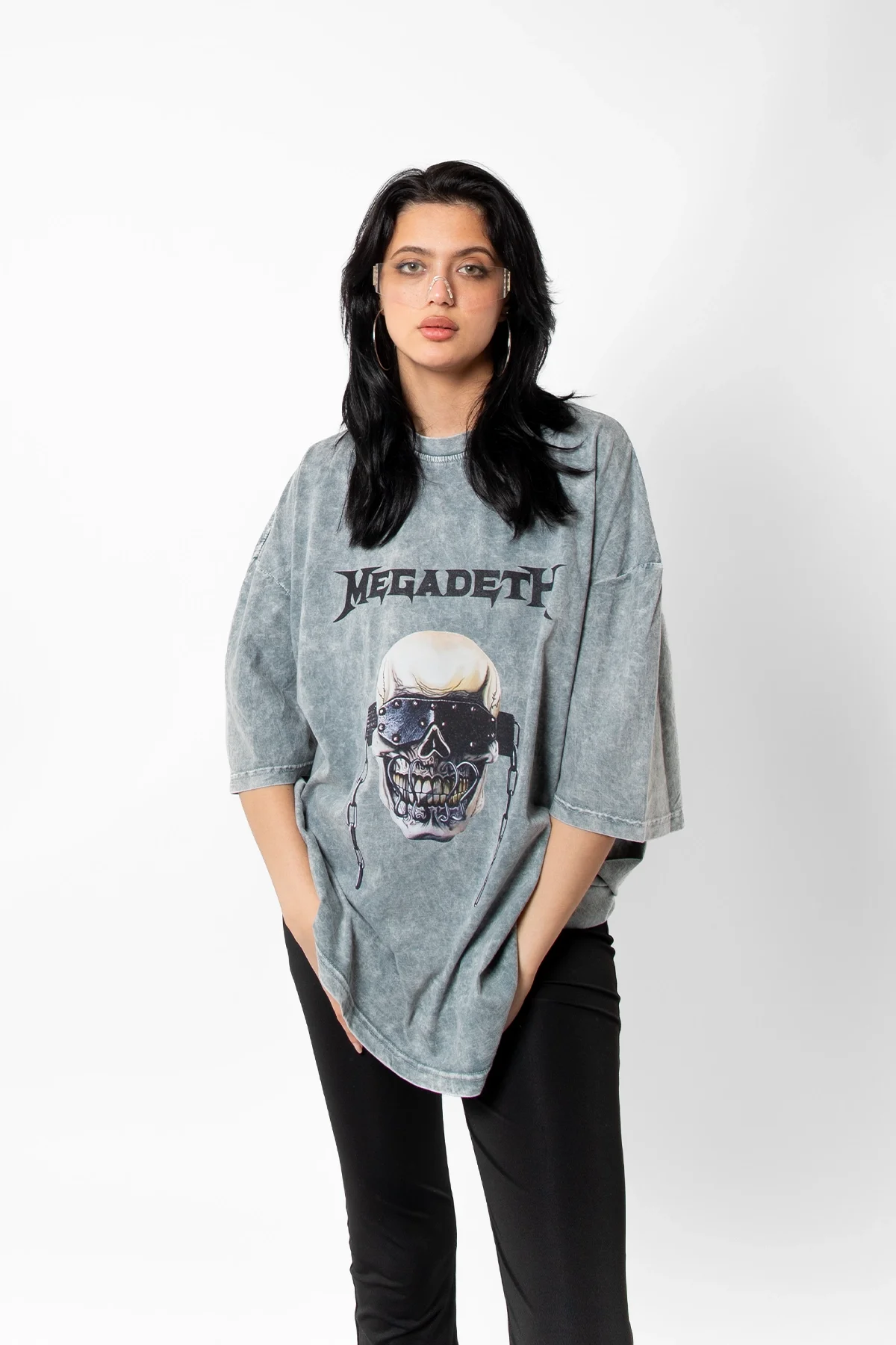 MEGADETH BASKILI BEYAZ YIKAMALI UNİSEX OVERSİZE TSHİRT