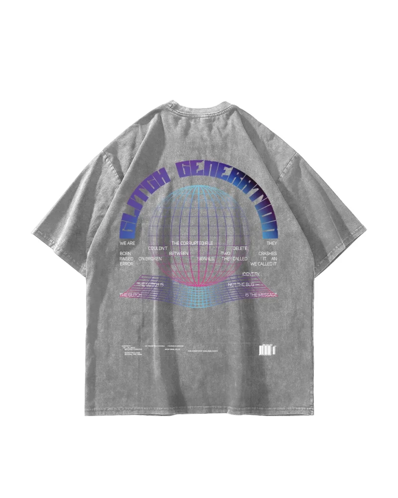 Glitch Baskılı Oversize Unisex Yıkamalı Beyaz Tshirt