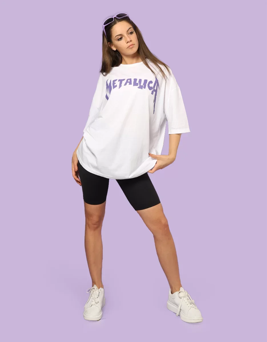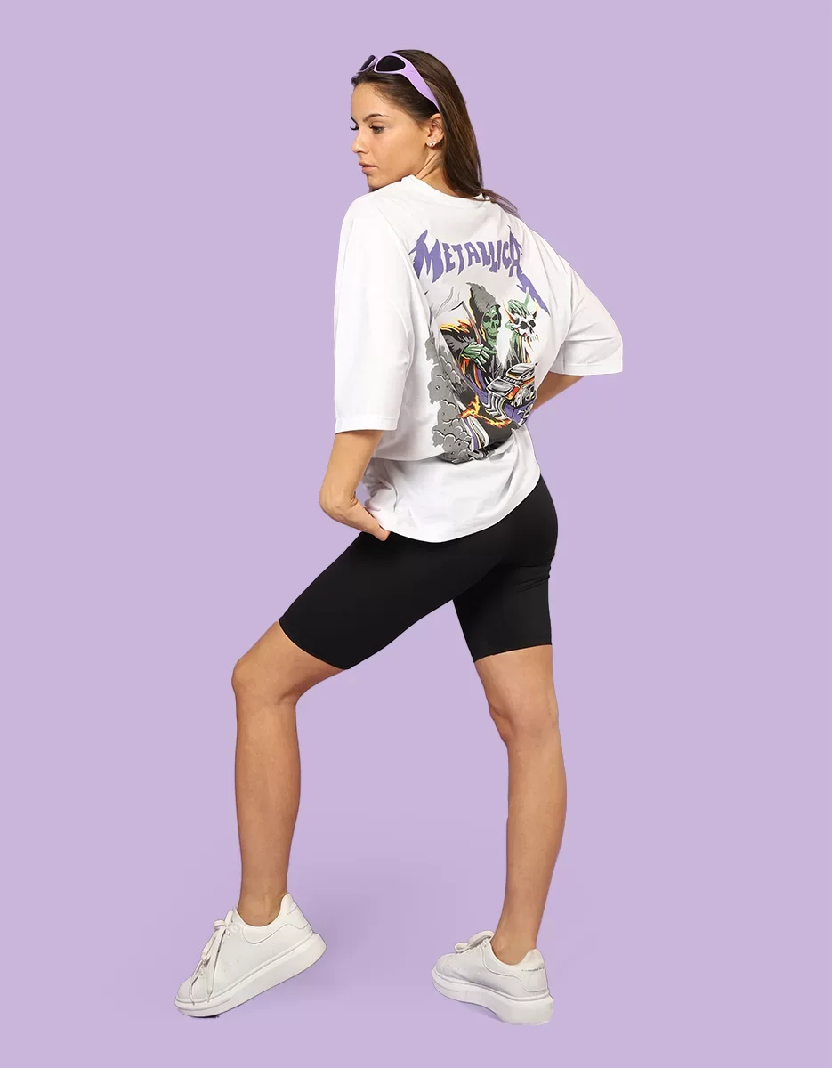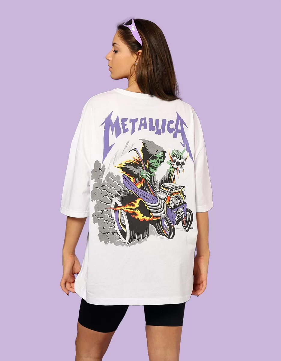 METALLİCA MOR SIRT BASKILI UNİSEX OVERSİZE BEYAZ TSHİRT