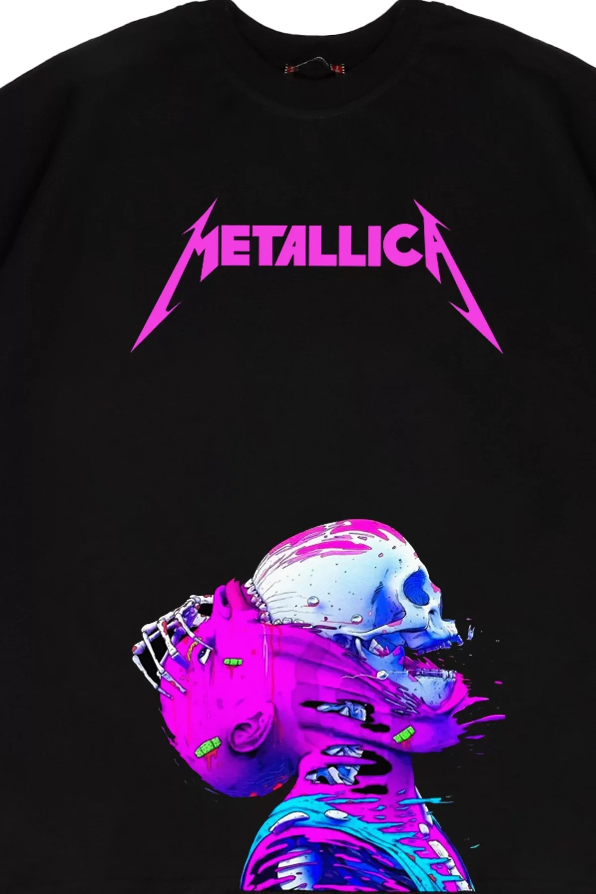 METALLİCA NEON PEMBE BASKILI SİYAH UNİSEX OVERSİZE TSHİRT