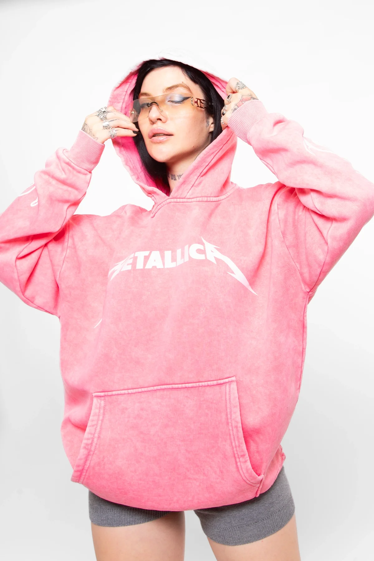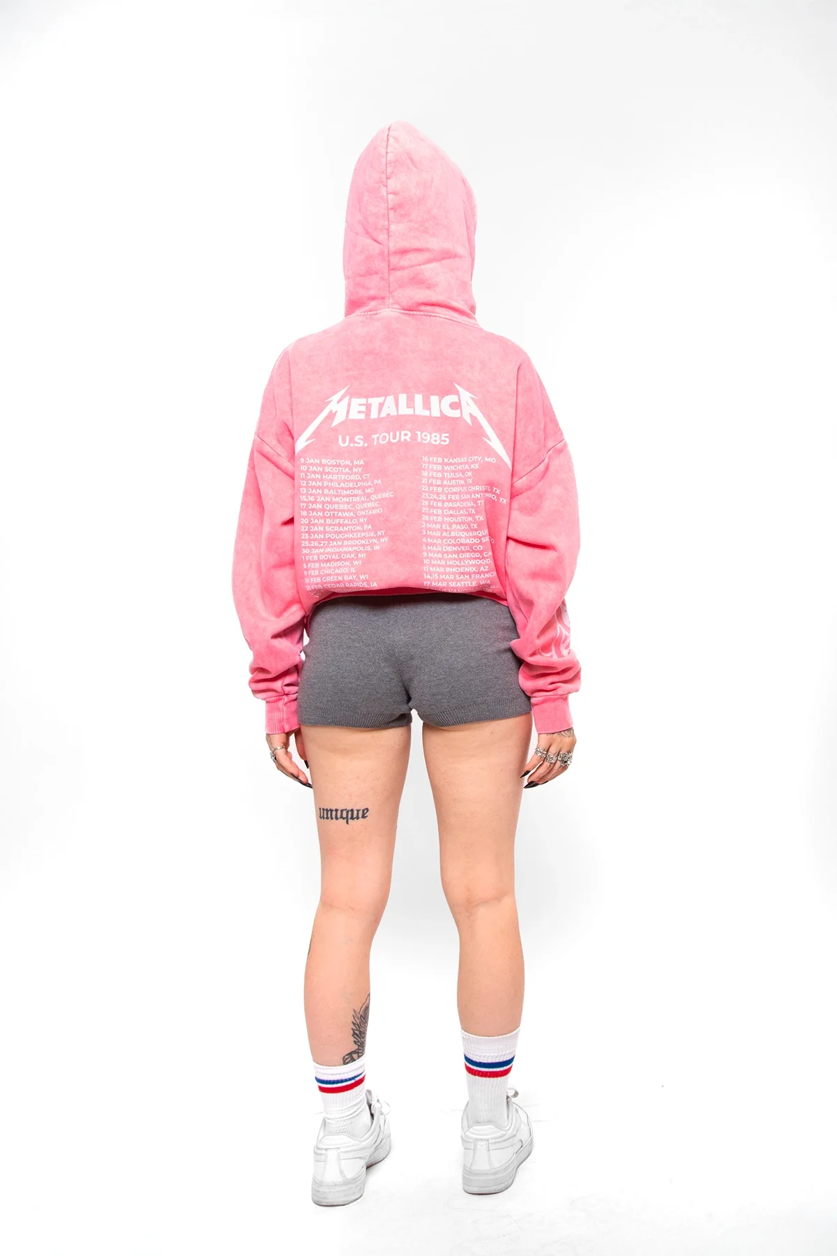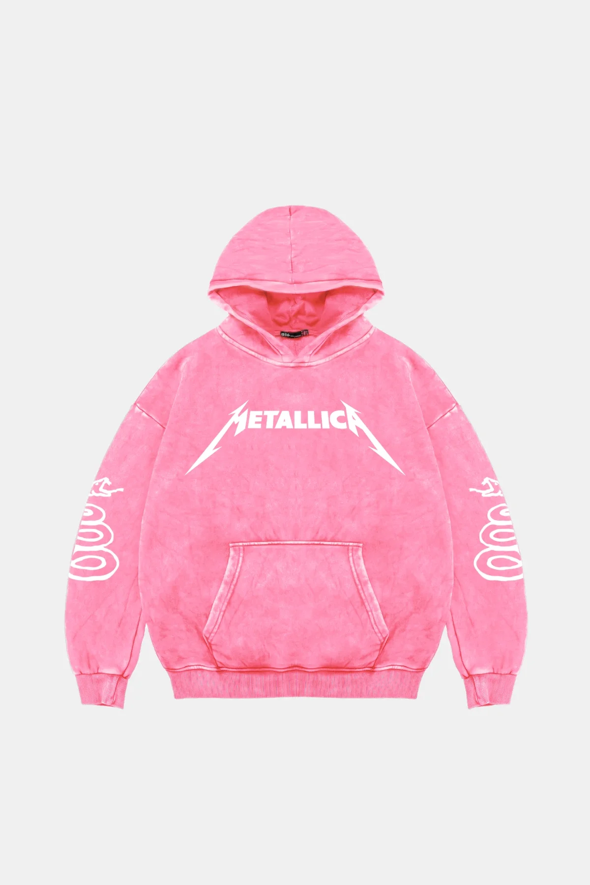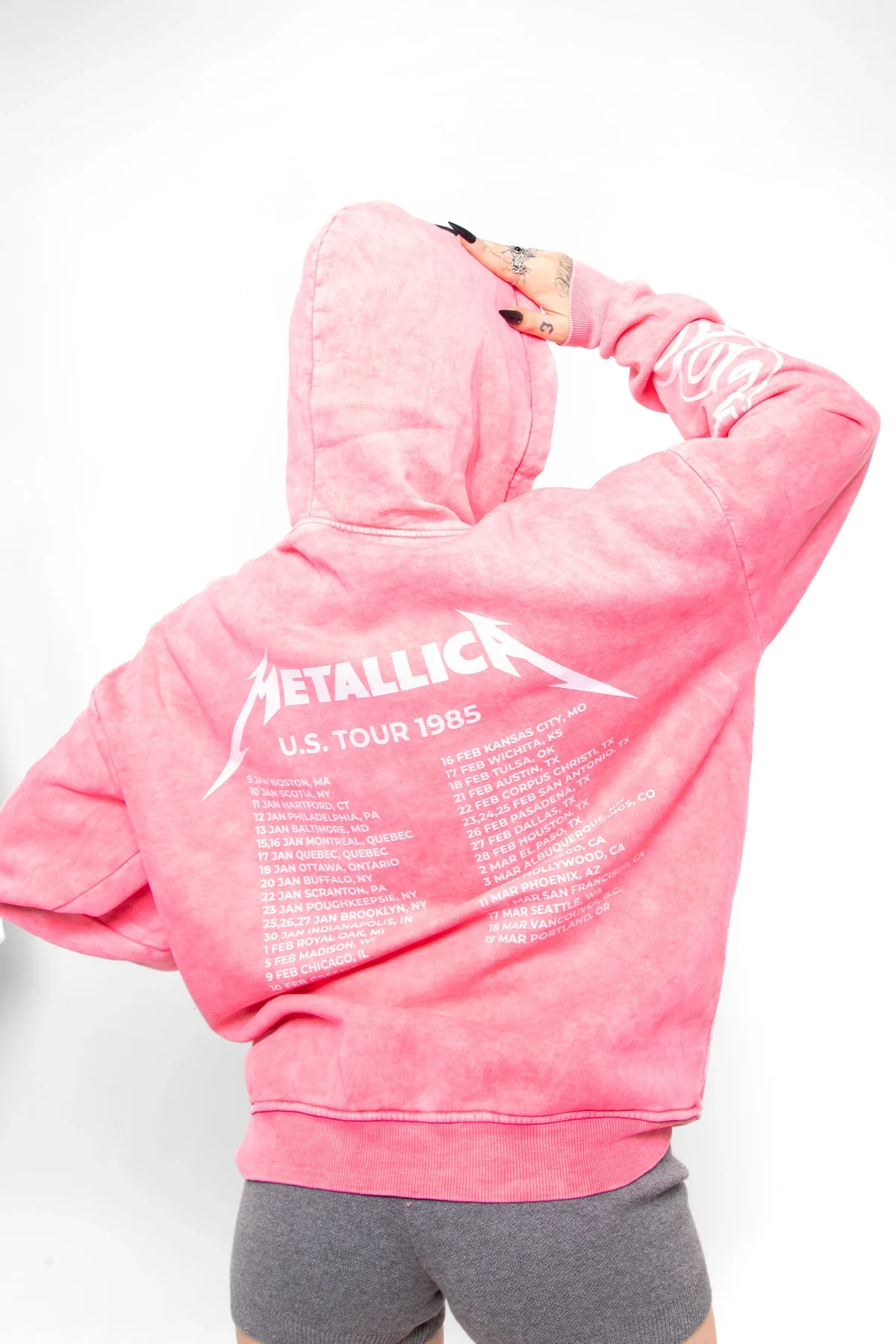 Metallica Tour 1985 Baskılı Kadın Yıkamalı Pembe Hoodie