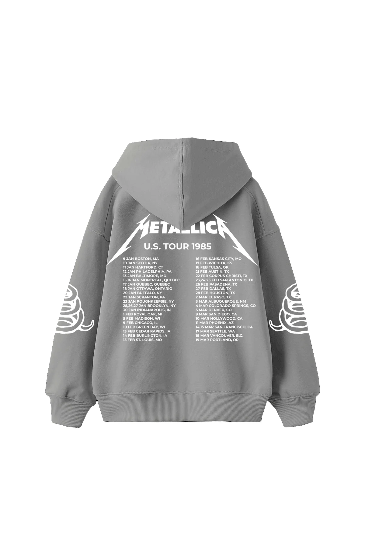Metallica Tour 1985 Baskılı Oversize Kadın Gri Hoodie