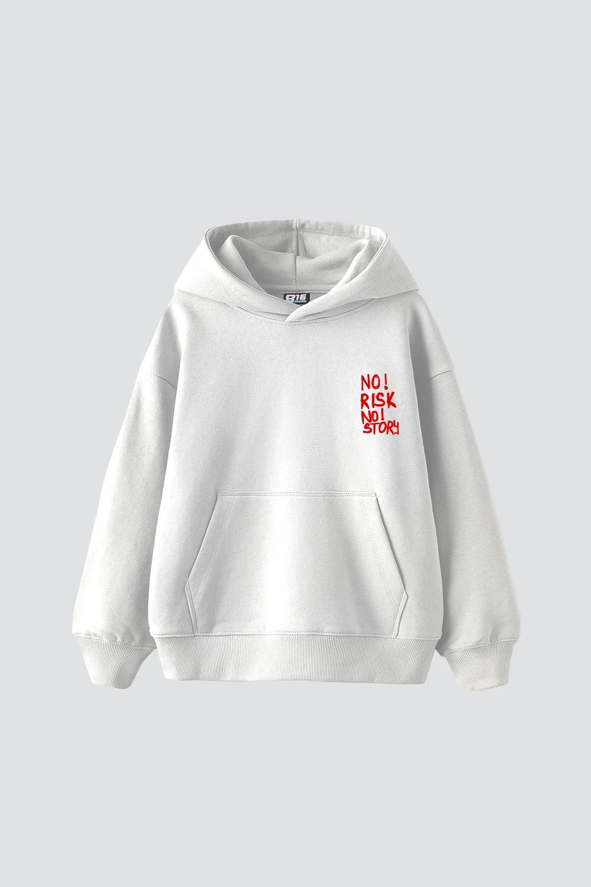 No Risk No Story Baskılı Oversize Kadın Beyaz Hoodie