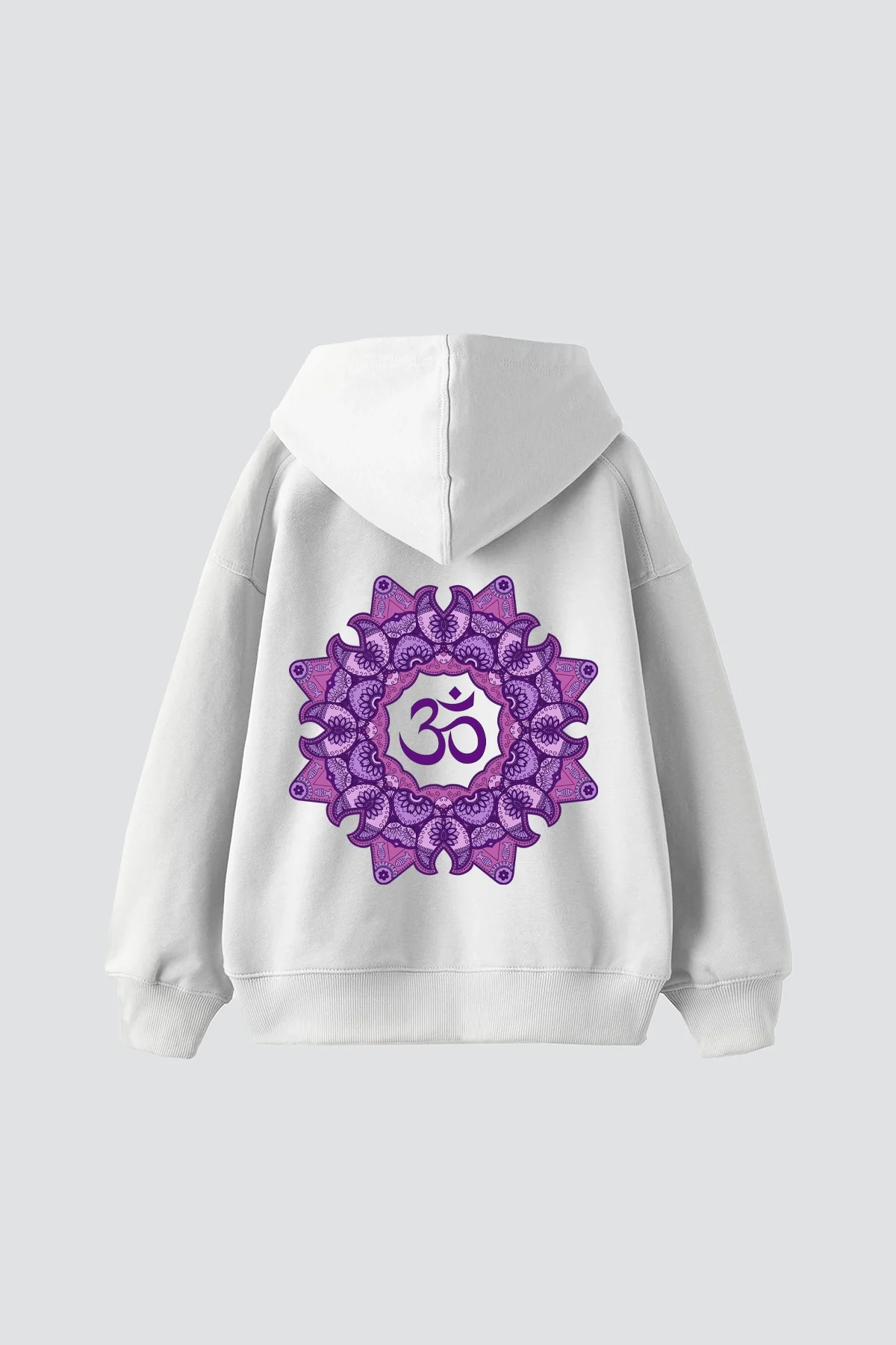 OM BASKILI UNİSEX OVERSİZE BEYAZ HOODİE