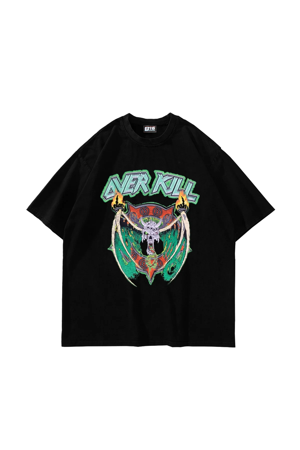 OVER KİLL BASKILI OVERSİZE UNİSEX SİYAH TSHİRT