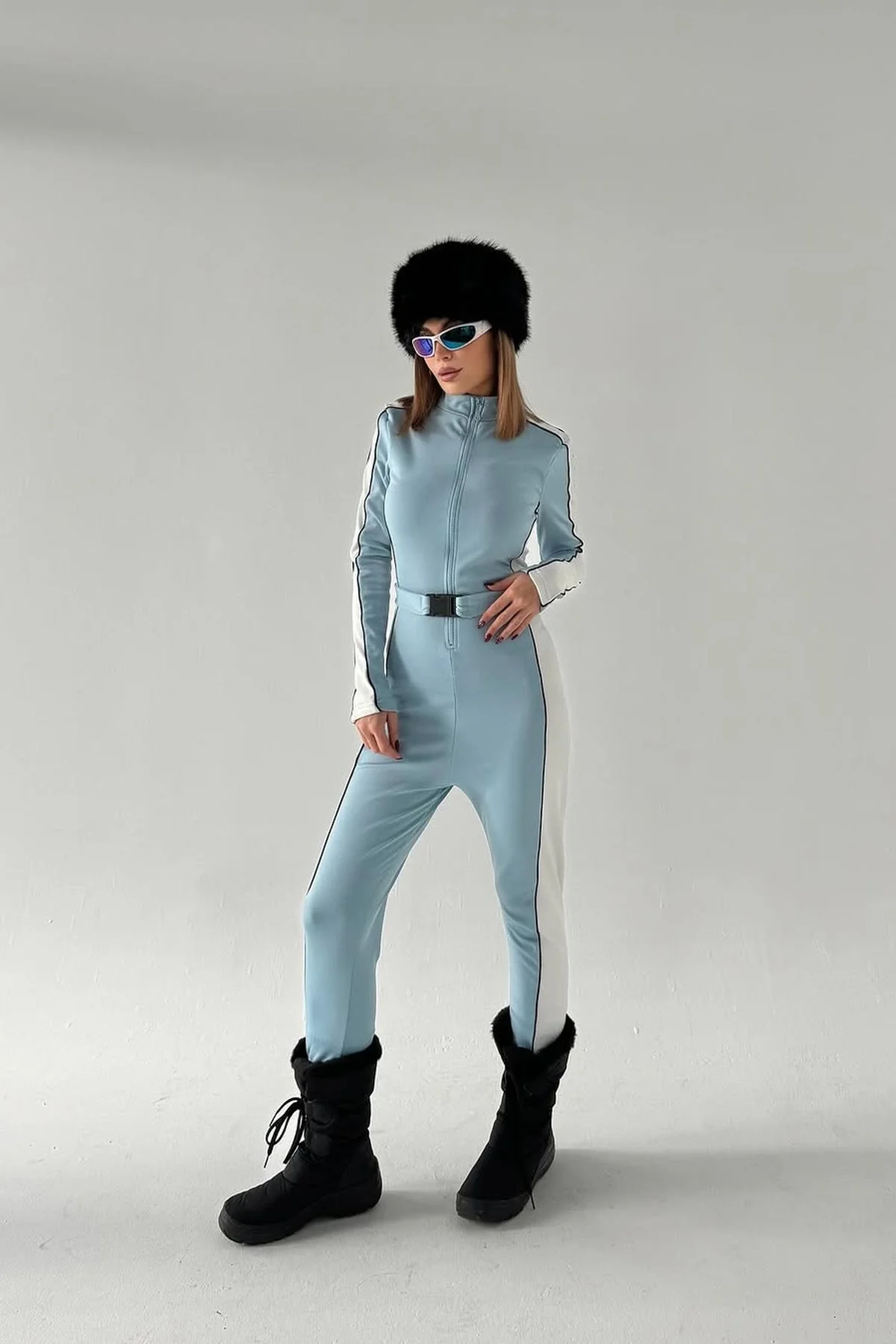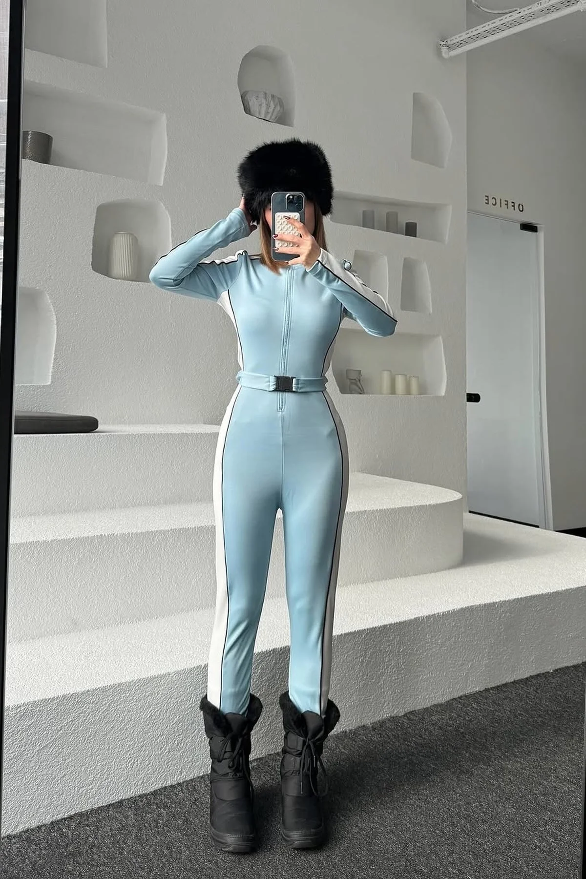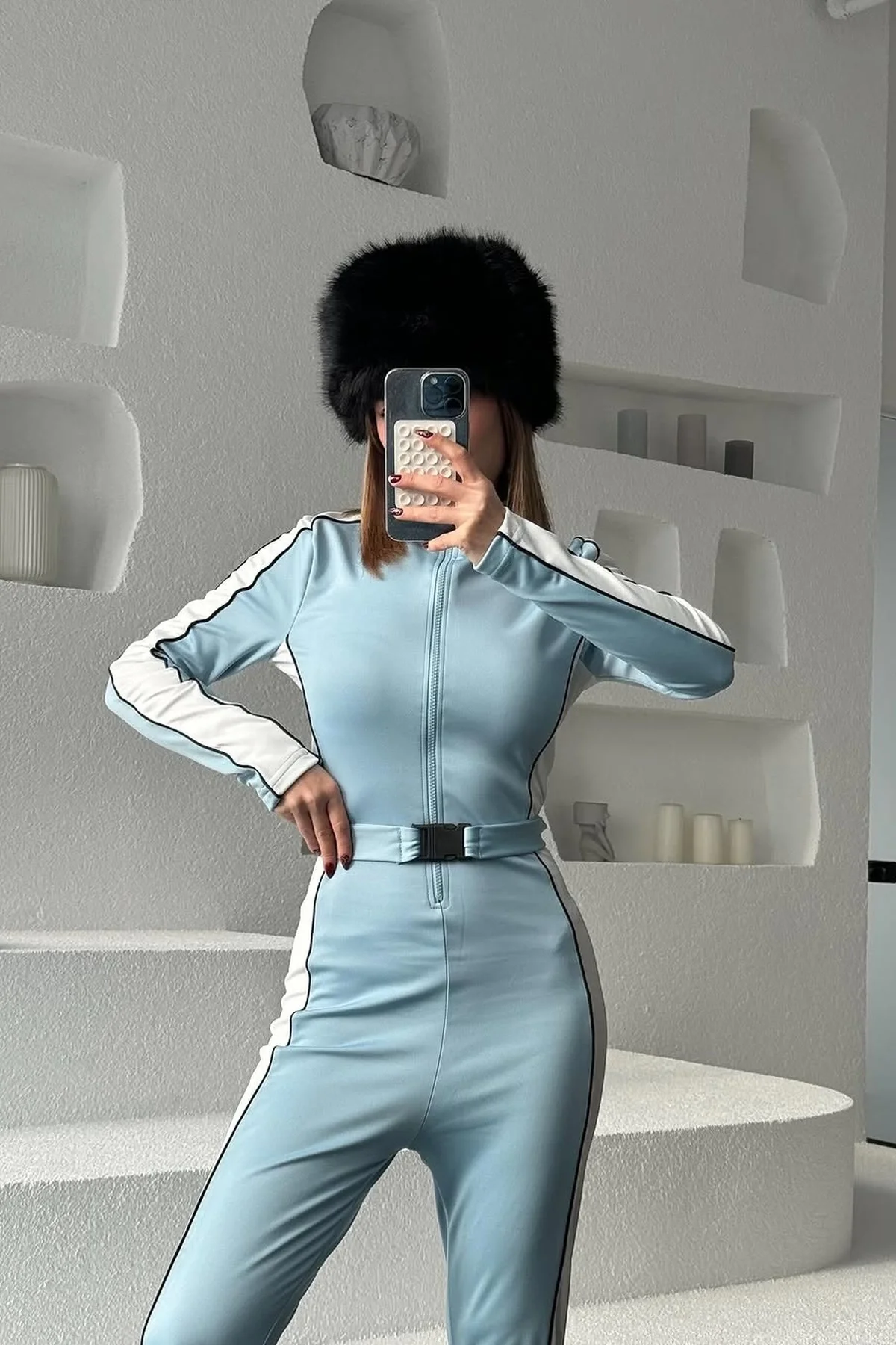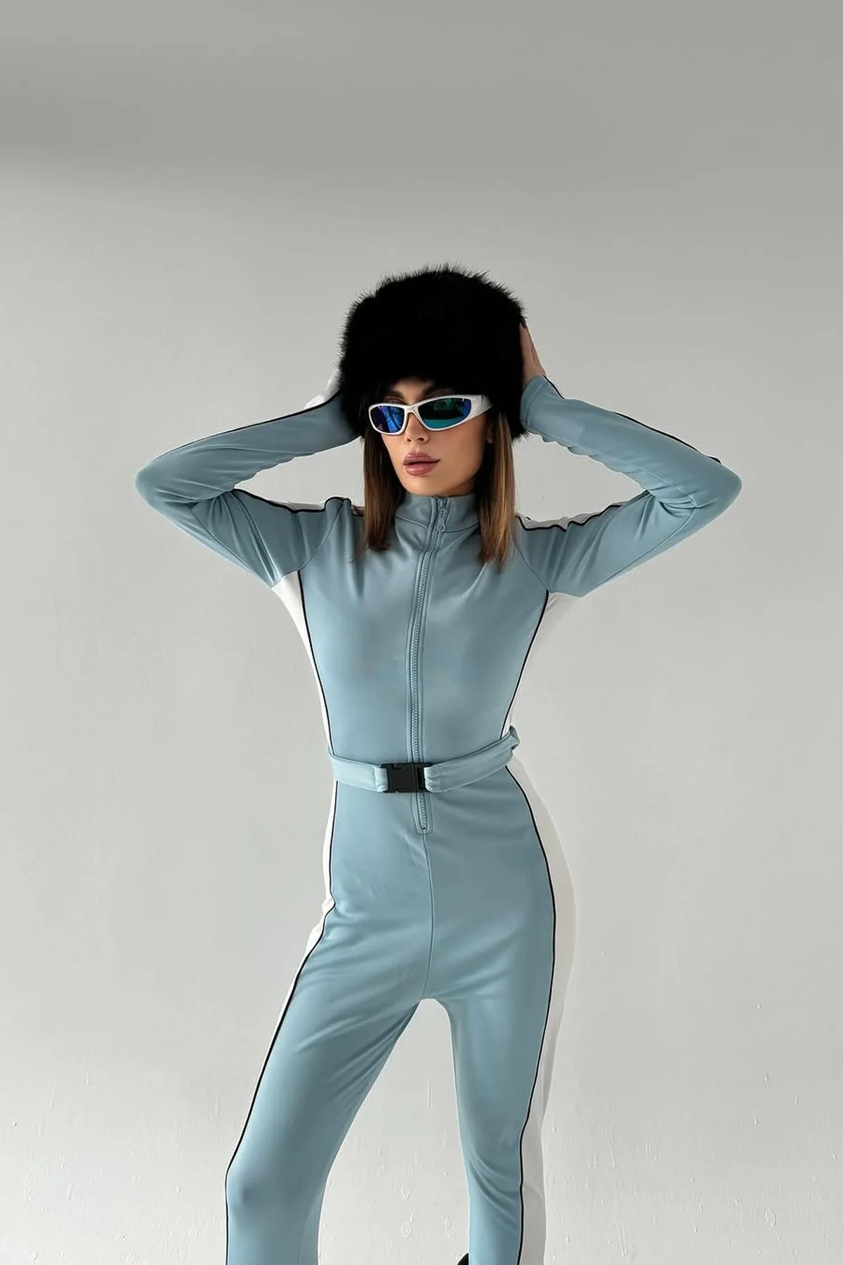 PARÇALI KEMER DETAYLI PREMİUM MAVİ TULUM
