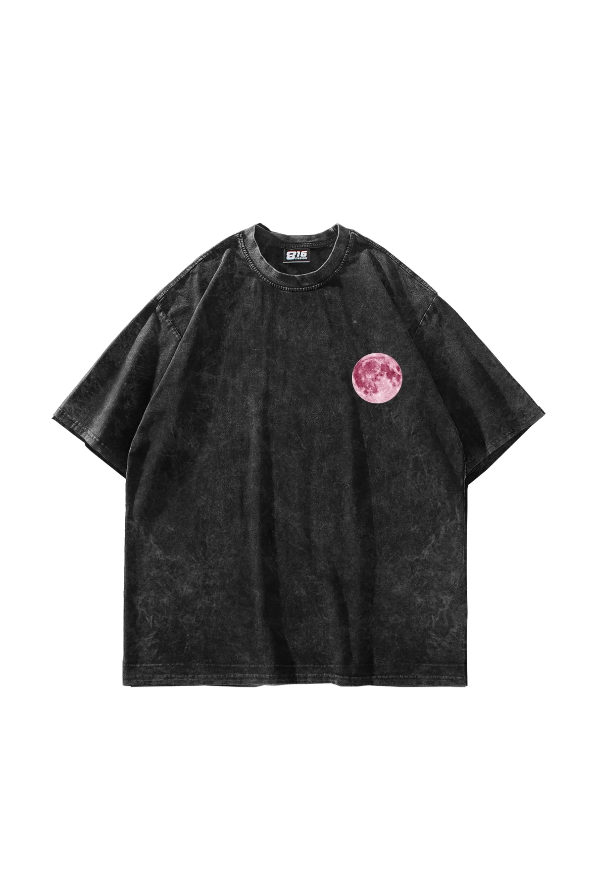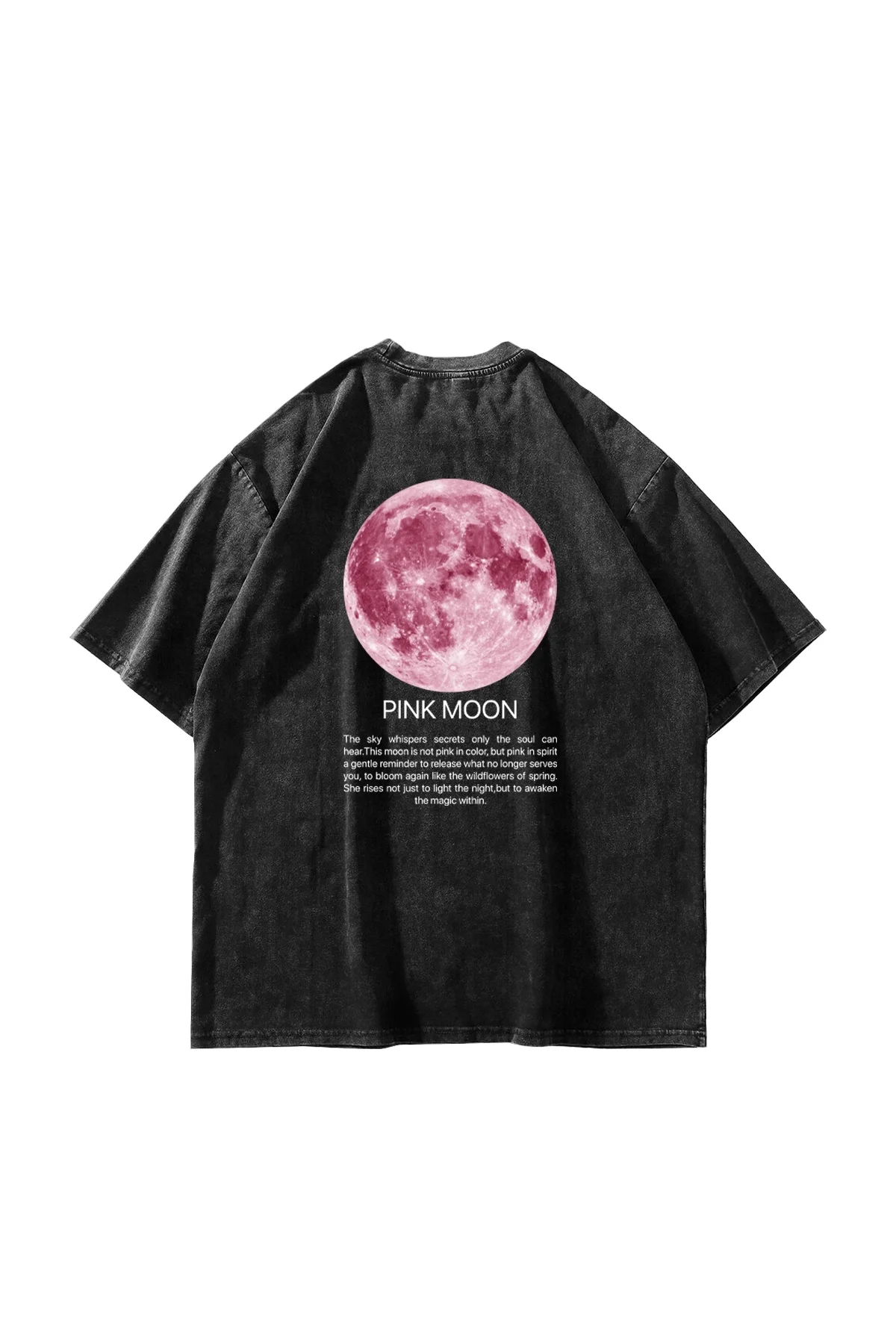 Pink Moon baskılı oversize unisex yıkanmış siyah tshirt ile sokak modasına uyum sağlayın, Bak Moda kalitesiyle şıklığı keşfedin!